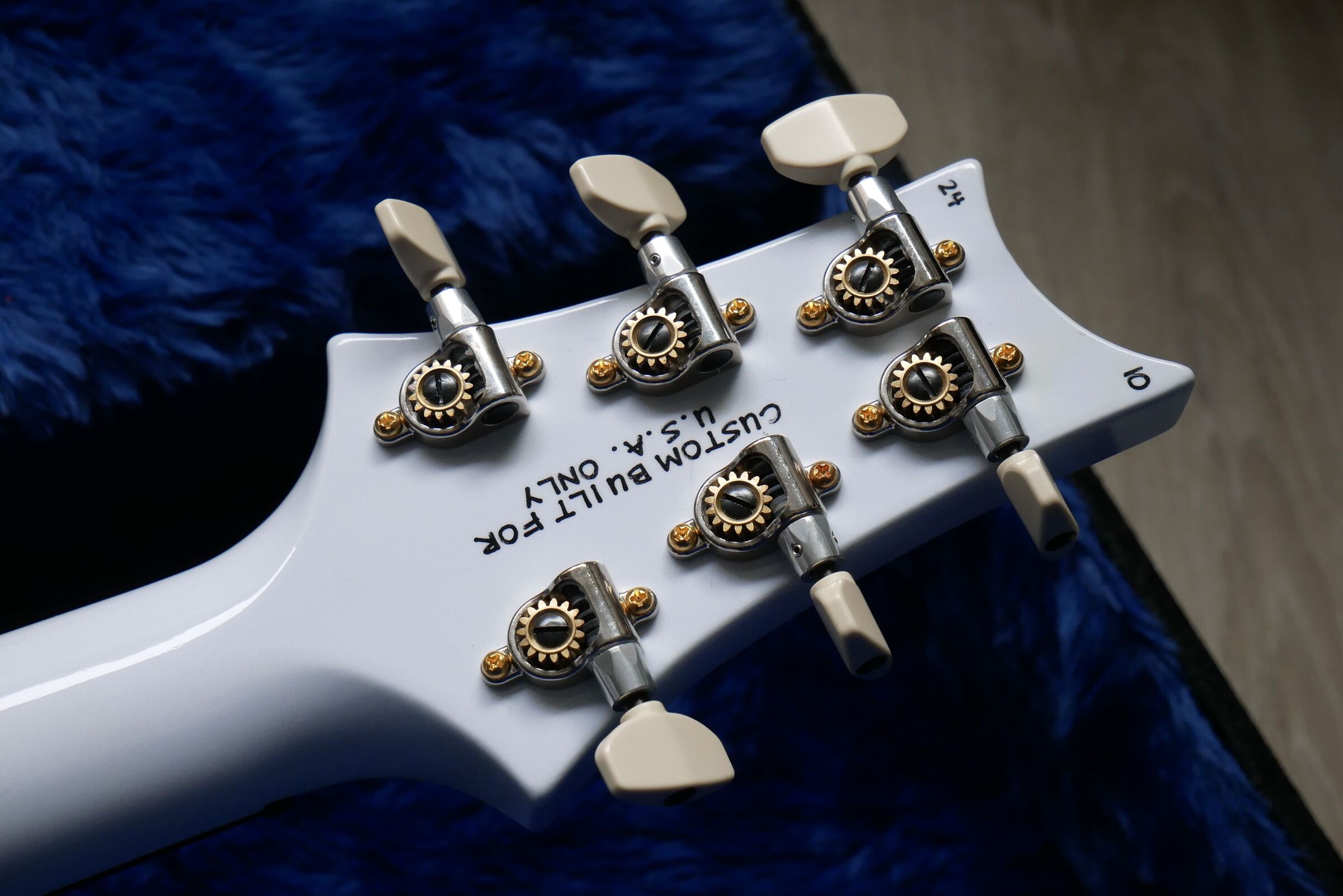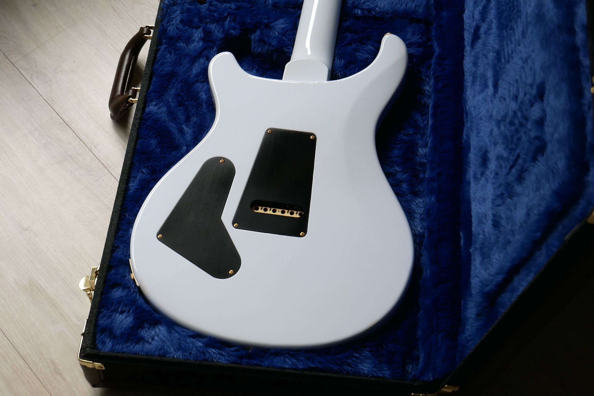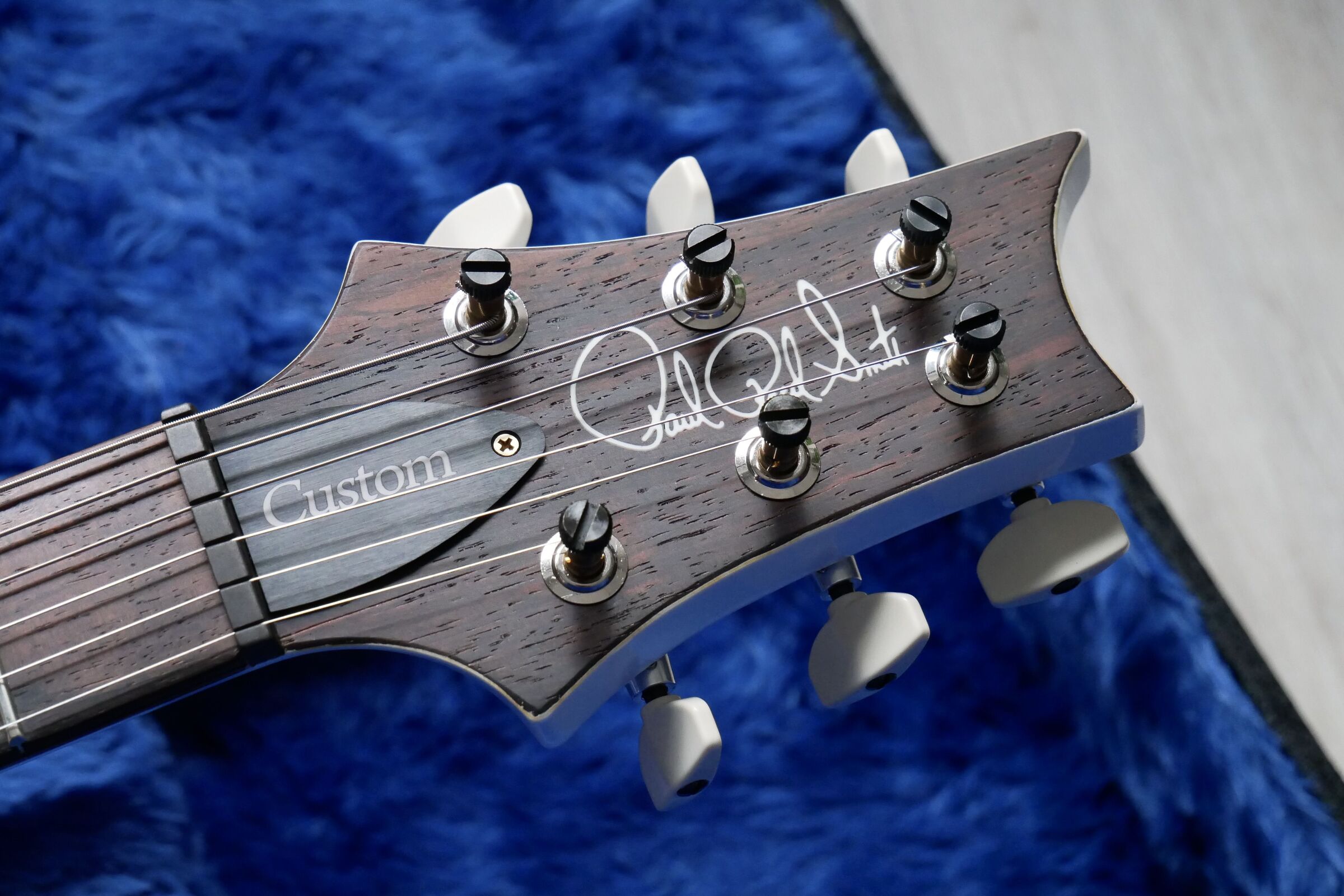 Custom24是PRS一直以來最受歡迎的系列,不只音色上出眾,外觀也相當華麗,配色為市場上稀有的Violet,搭配少見的雲狀楓木,琴身背後選配全白色烤漆,相當特別。琴身為桃花心木,指板為巴西玫瑰木,琴頸規格為Pattern Thin Neck。原廠配置一組擁有全新TCI技術的PRS 85/15 Pickups拾音器,TCI系統能使高低頻各自擁有非常均衡、線性統一的出力,不會有傳統拾音器低頻混濁、高頻過尖的問題,也解決了傳統拾音器雙單線圈切換時造成瞬間輸出率落差問題,共五段音色,清甜顆粒感十足的單線圈音色到出力突出的雙線圈破音都能勝任,音色相當全面的一款PRS。