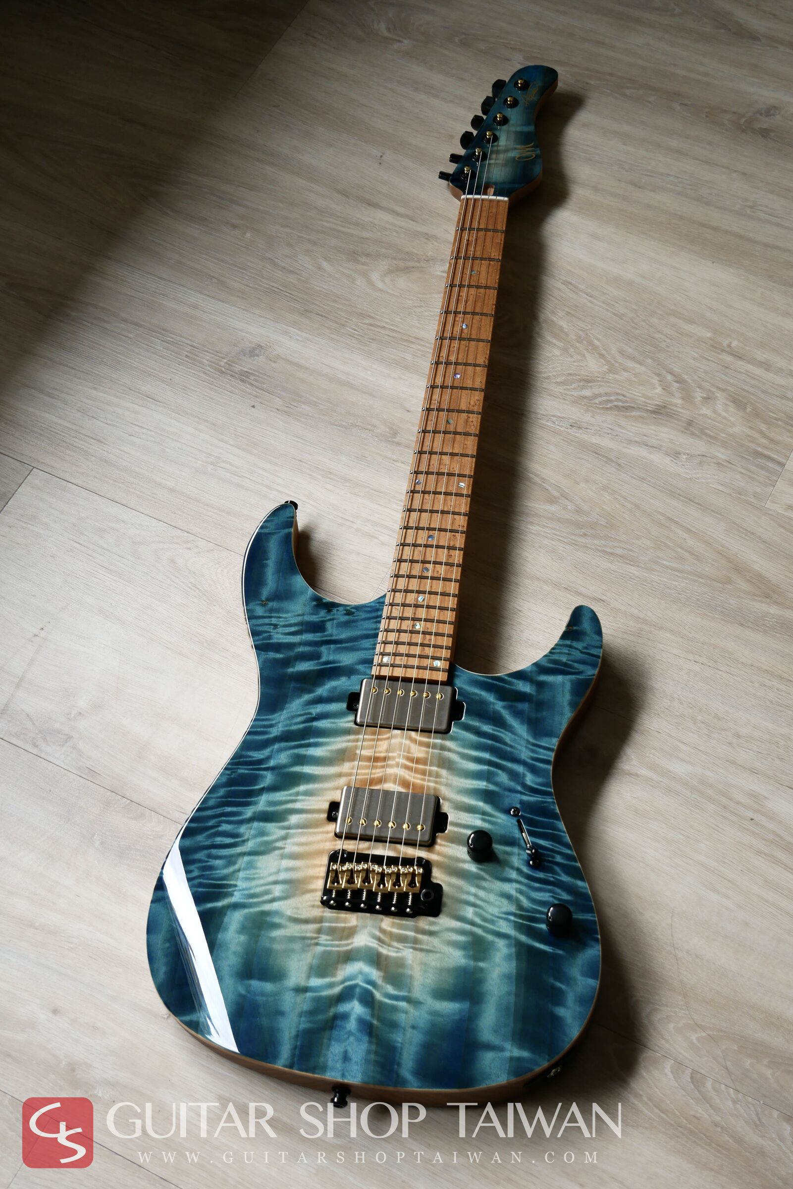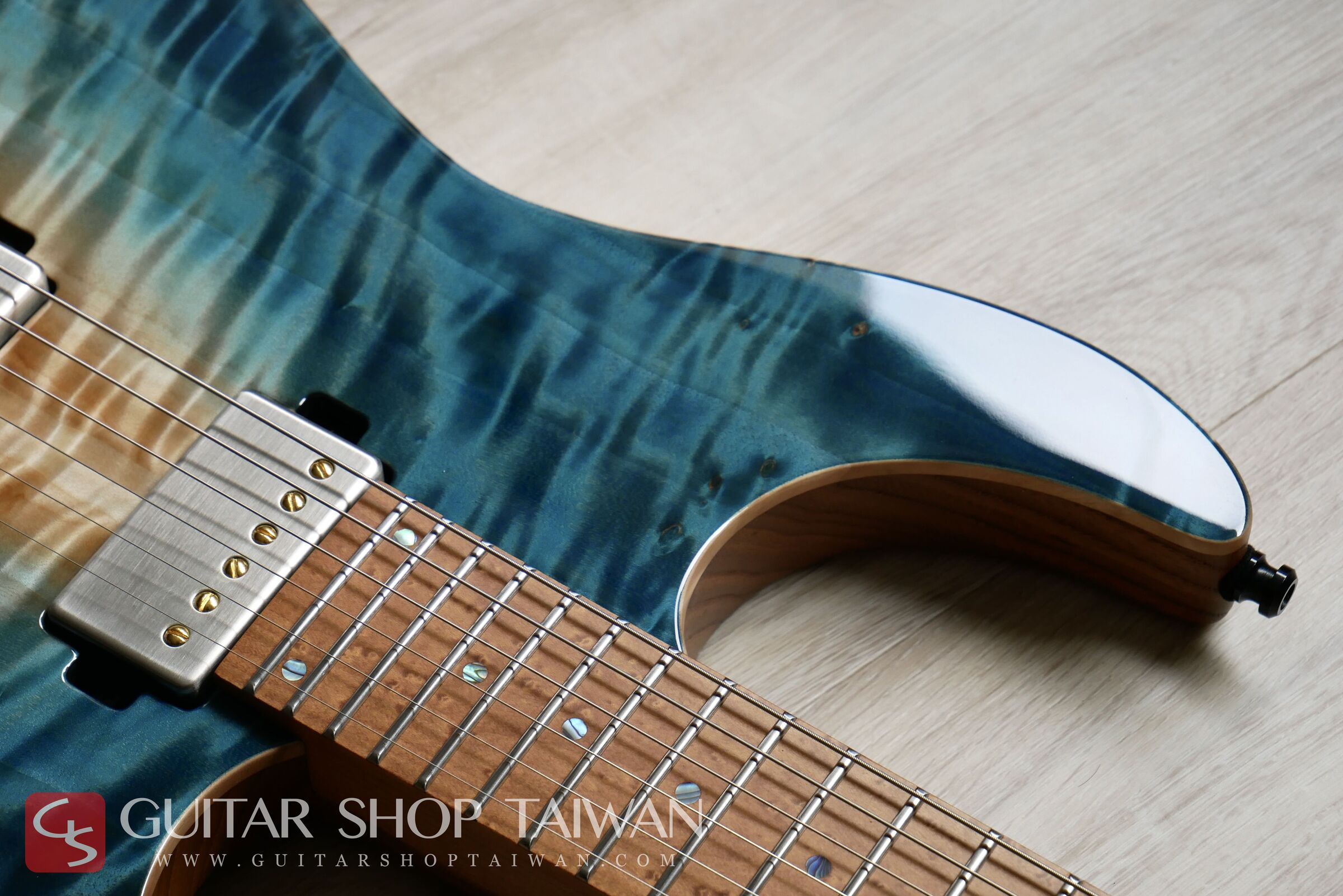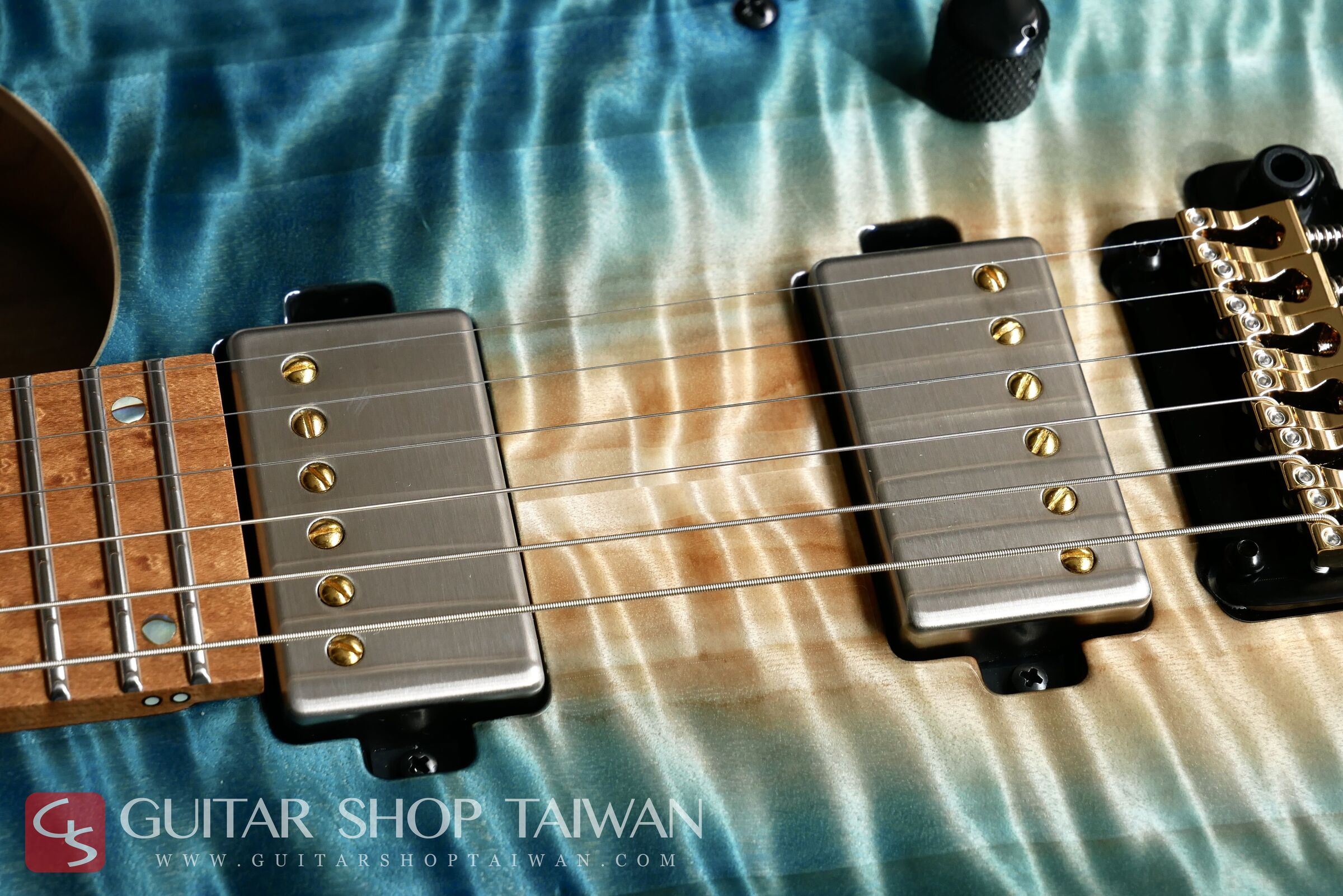 全新 Mayones Aquila Elite V24 S 6-Natural Fade Turquoise Burst Out 4A Curly Poplar Top