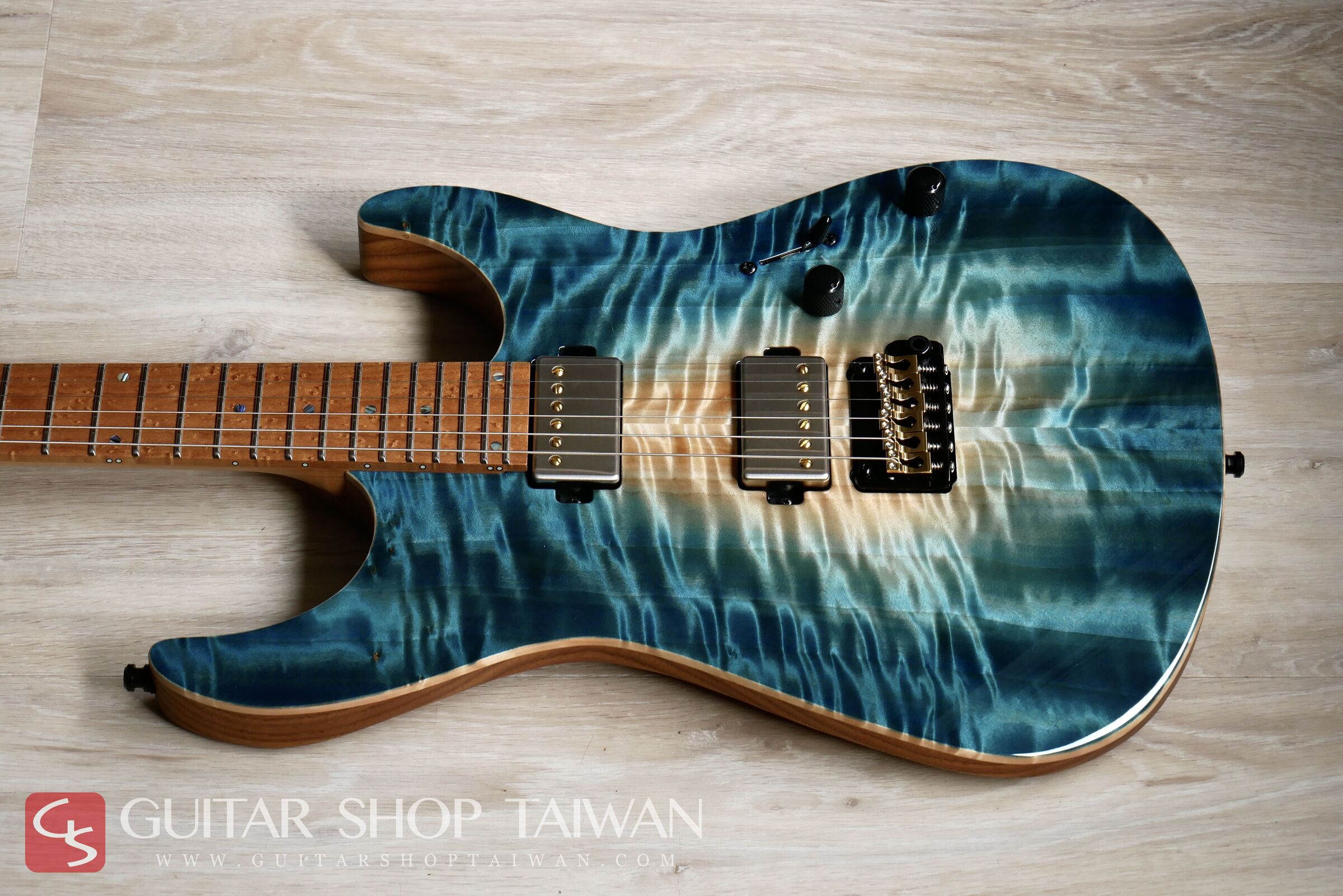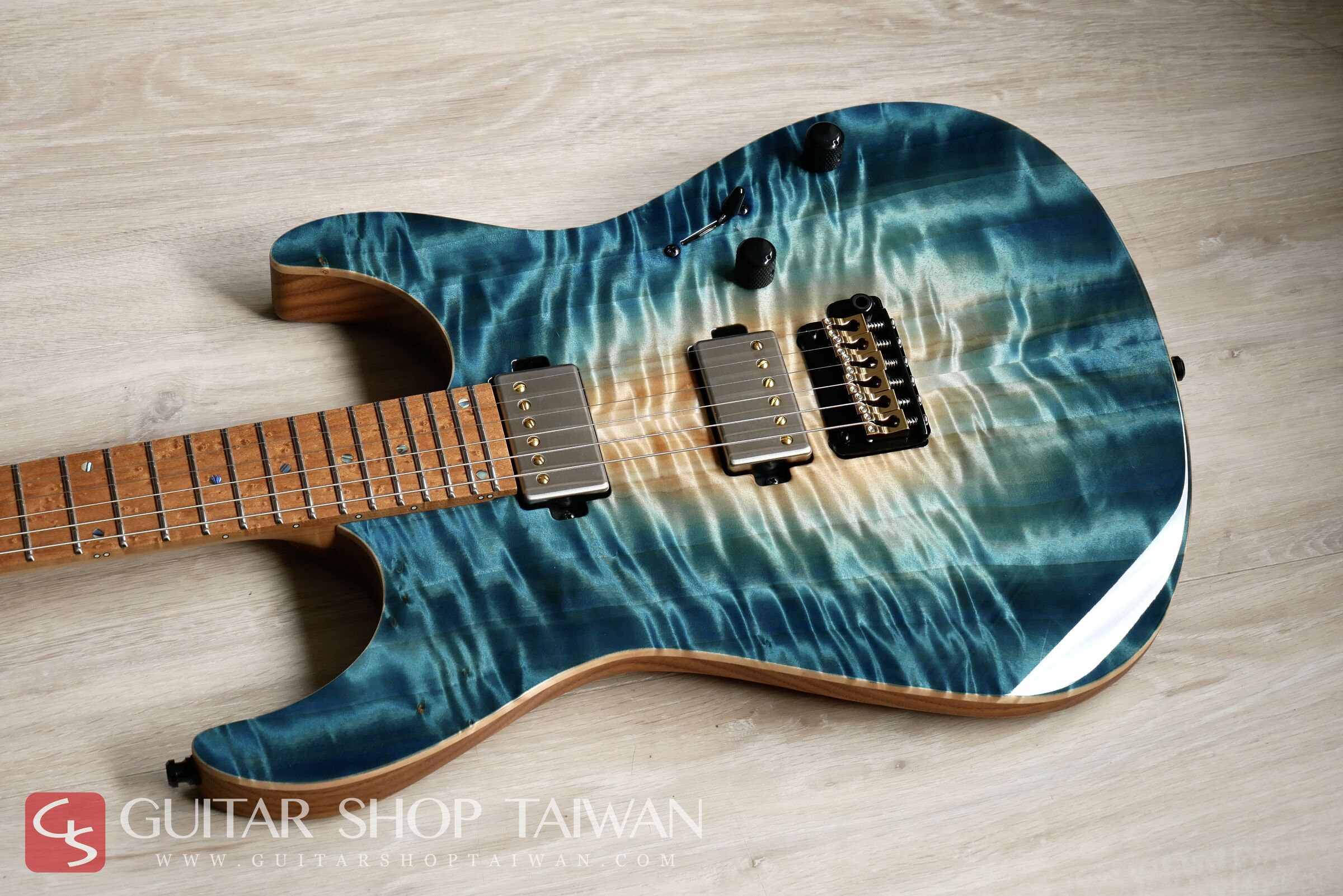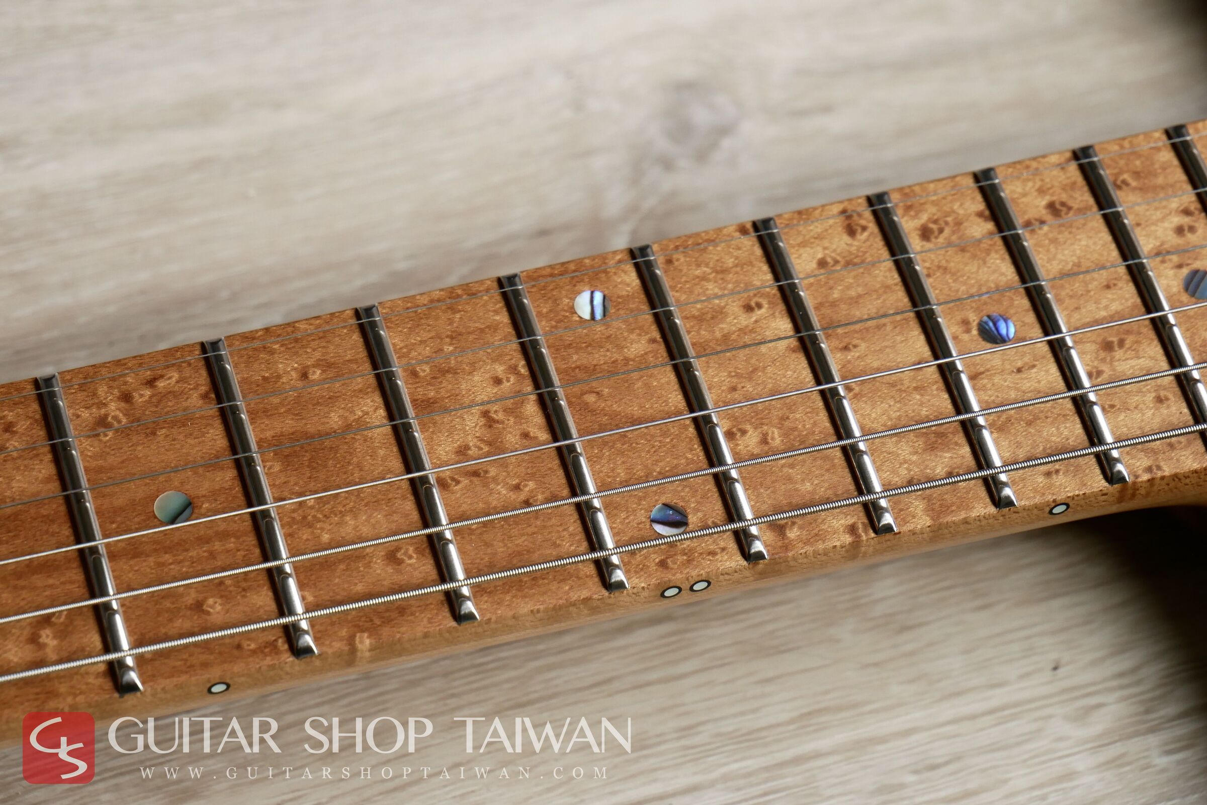 琴面採用嚴選4A級Curly Poplar Top,搭配烘烤乾燥處理的Swamp Ash TEW琴身、Maple TEW琴頸、3A級Birdseye Maple TEW指板。烘烤處理能降低木材含水量,使整體結構更加穩定,並展現更出色的延音與解析度、更溫暖緊實的低頻。琴頸與琴背皆採用Matt Finish無上漆處理,觸感溫順自然。
