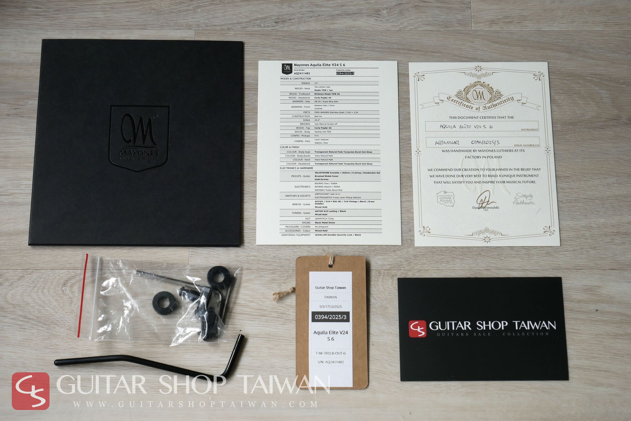 售價NT$179,000,附原廠Mayones Hybrid Softcase、證書、搖桿配件與Guitar Shop Taiwan專屬保固卡。本公司商品都經過嚴格檢驗與專業調整,一年保固、免費保養與完整的售後服務,安全有保障。歡迎刷卡、分期付款 (刷卡與分期服務僅限線上)。
