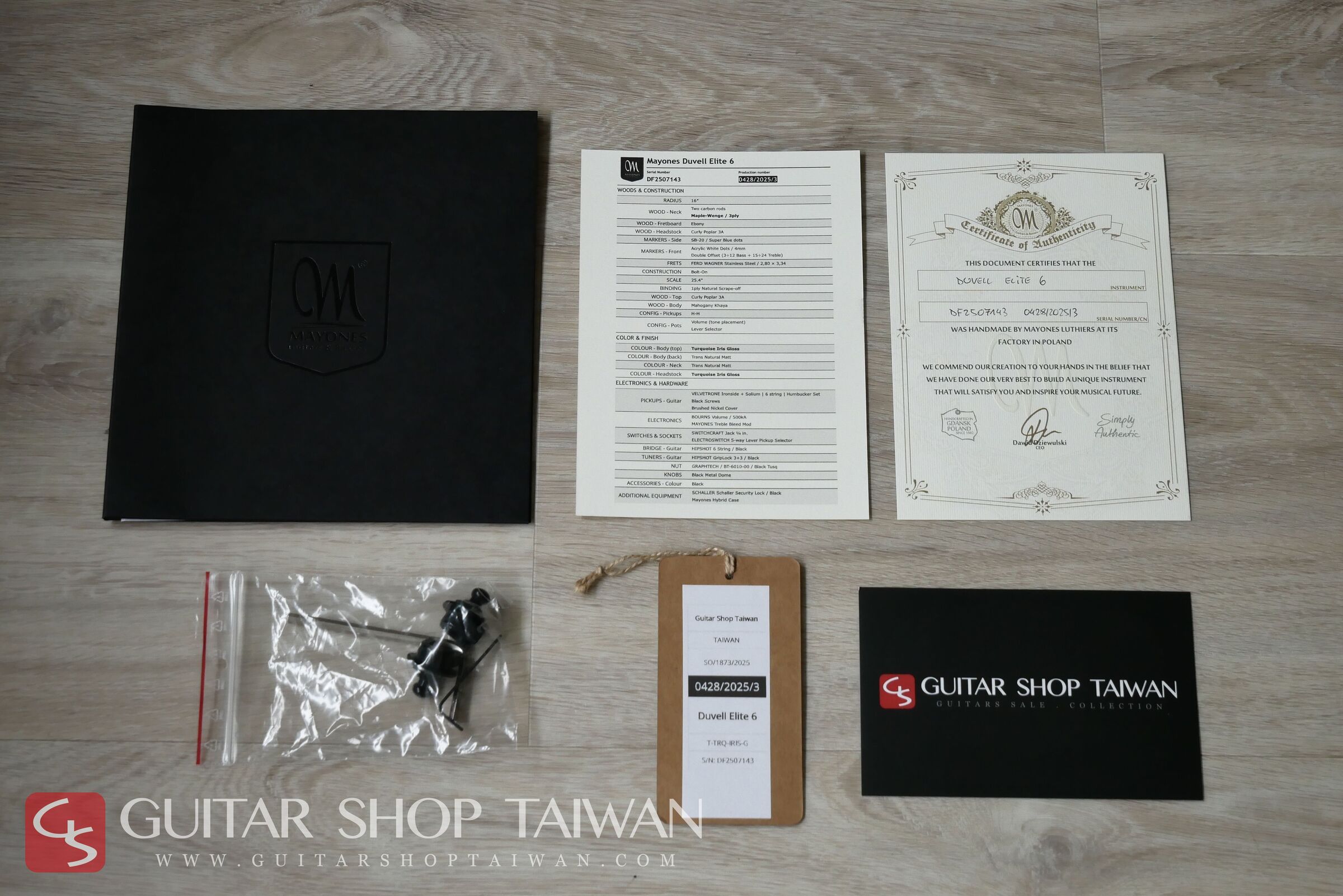 售價NT$145,000,附原廠Mayones Hybrid Softcase、證書、搖桿配件與Guitar Shop Taiwan專屬保固卡。本公司商品都經過嚴格檢驗與專業調整,一年保固、免費保養與完整的售後服務,安全有保障。歡迎刷卡、分期付款 (刷卡與分期服務僅限線上)。