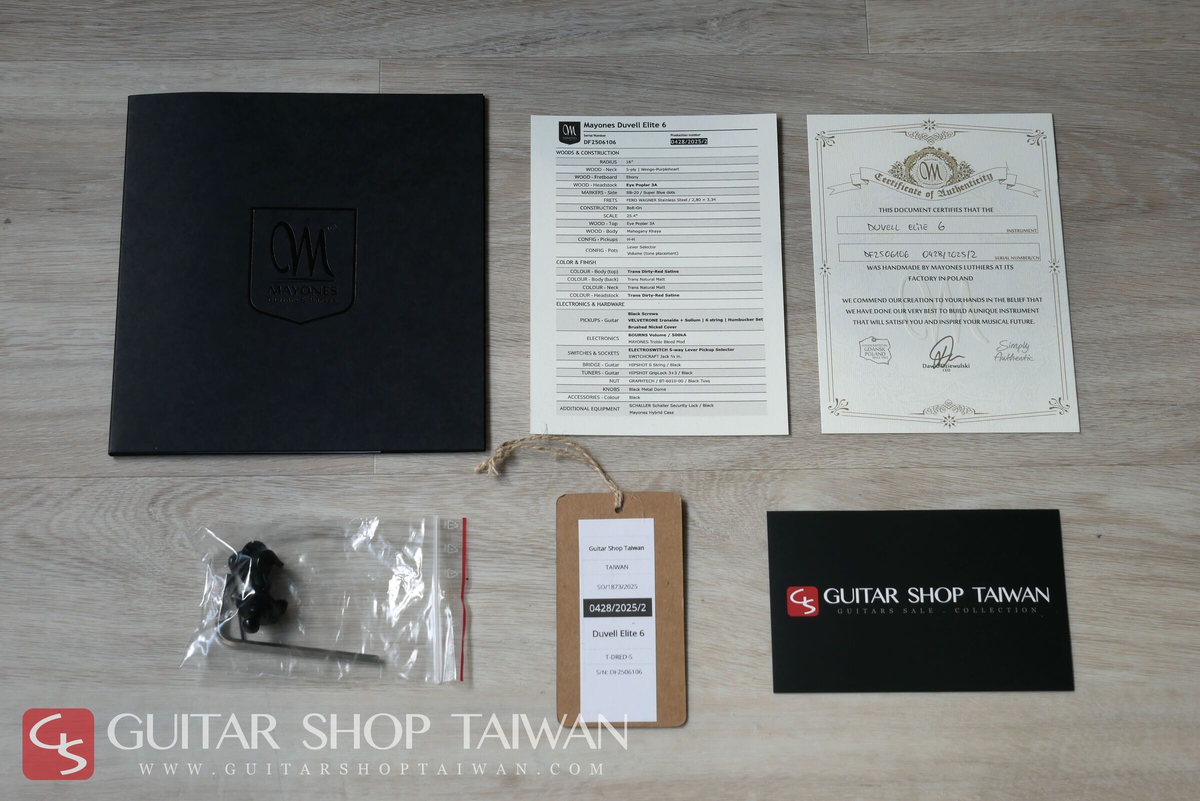 售價NT$132,000,附原廠Mayones Hybrid Softcase、證書、搖桿配件與Guitar Shop Taiwan專屬保固卡。本公司商品都經過嚴格檢驗與專業調整,一年保固、免費保養與完整的售後服務,安全有保障。歡迎刷卡、分期付款 (刷卡與分期服務僅限線上)。