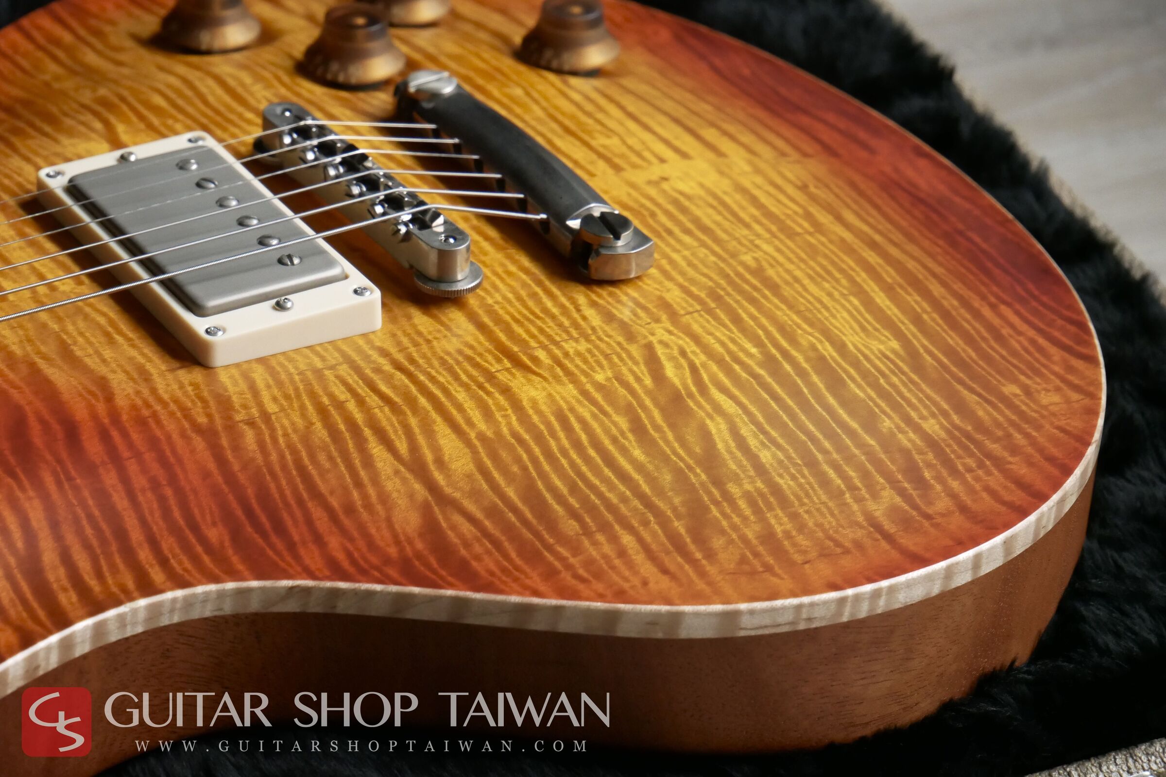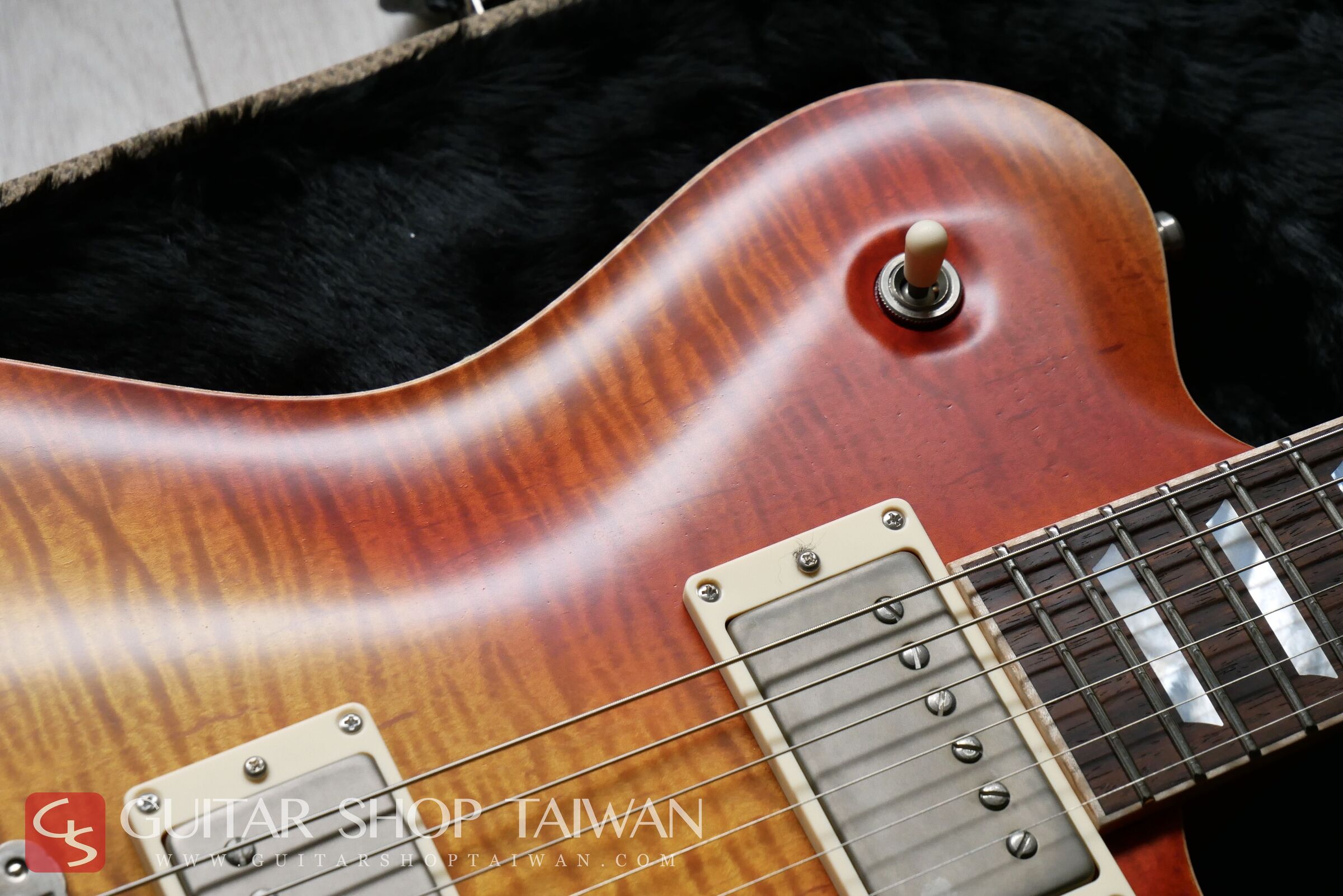 這是 Nik Huber 原廠首次嘗試的 Faded Cherry Sunburst 全新配色,細緻重現了 1959 年 Les Paul Burst 經典的櫻桃漸層色澤,並在琴面各處刻意呈現出真實 The Burst 常見的不均勻褪色感,整體視覺效果極為自然且富有層次。