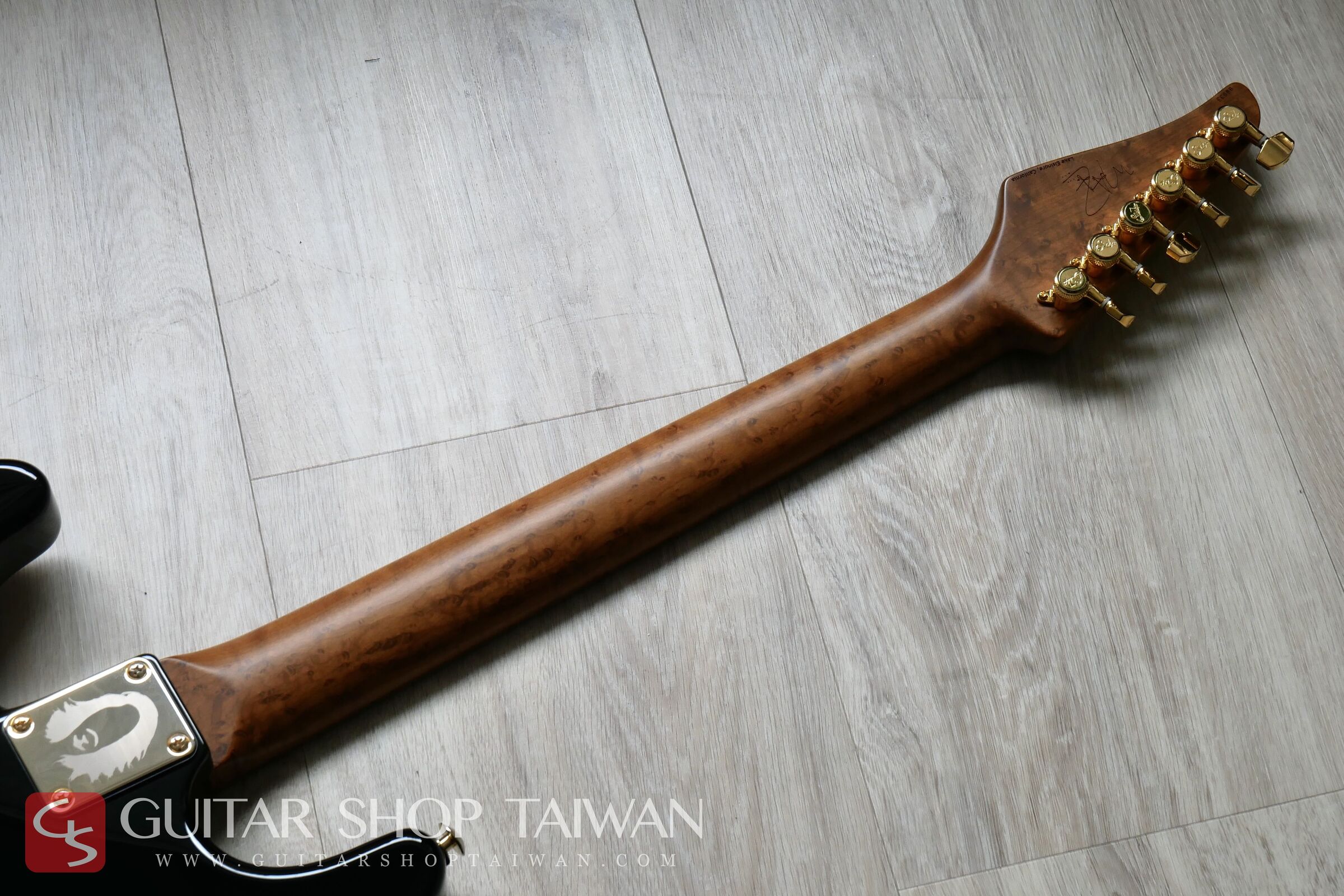 The body is made of carefully selected Alder, while the neck and fretboard are crafted from 3A roasted figured Maple. The roasting process enhances the stability of the wood, producing a tone that is both light and full. The C Medium neck, paired with a 9"–12" compound radius fretboard, offers smooth playability and comfort even during long sessions.