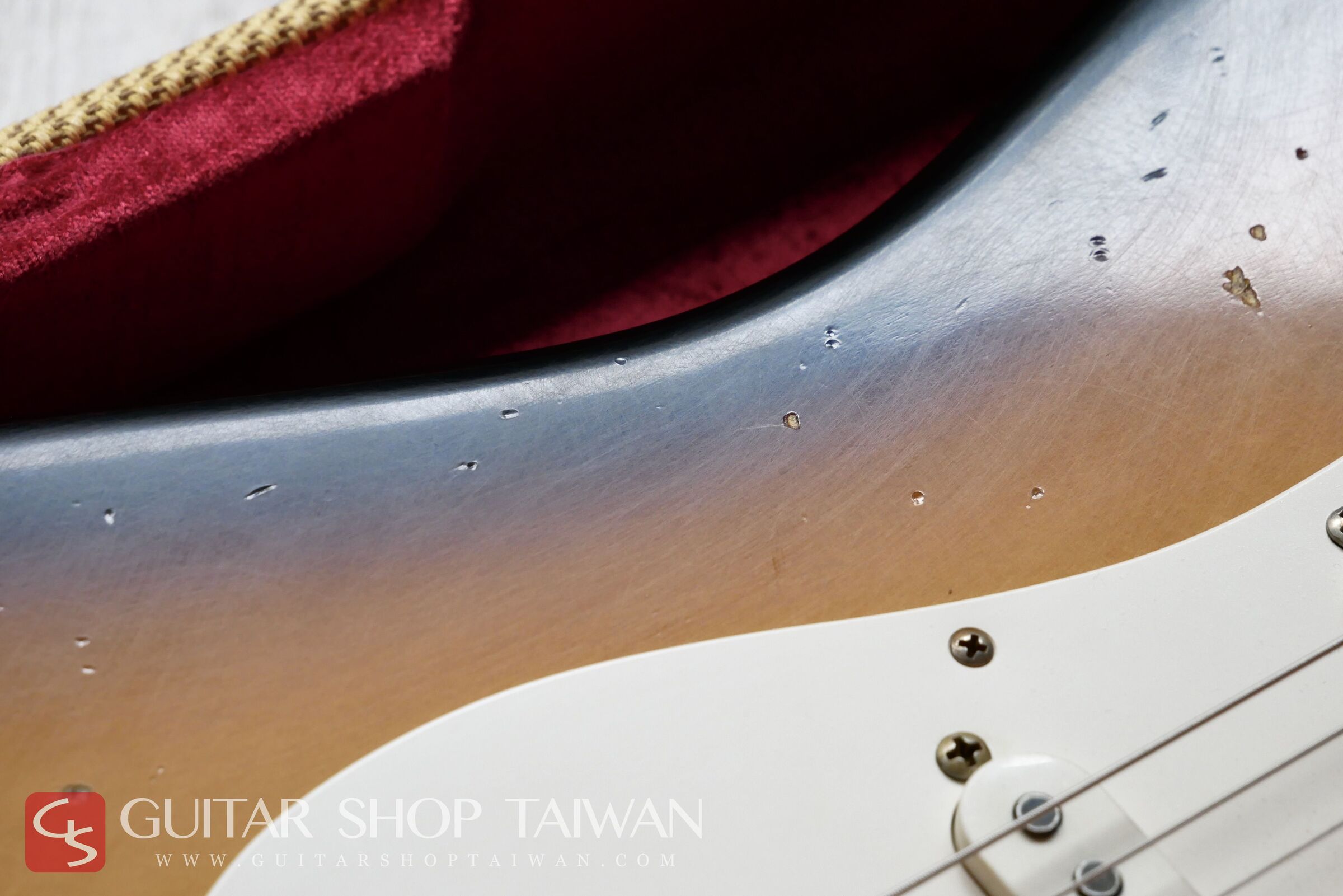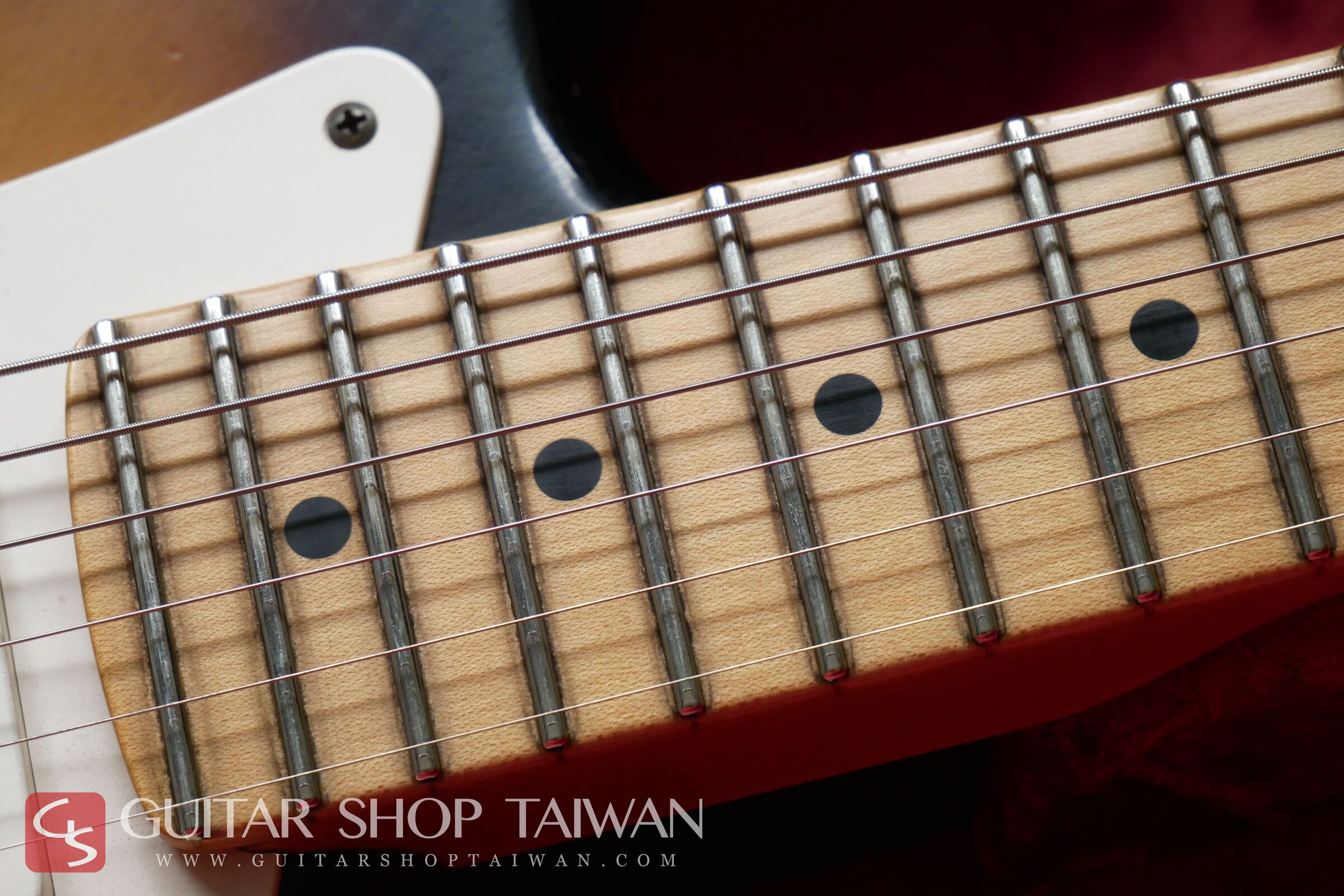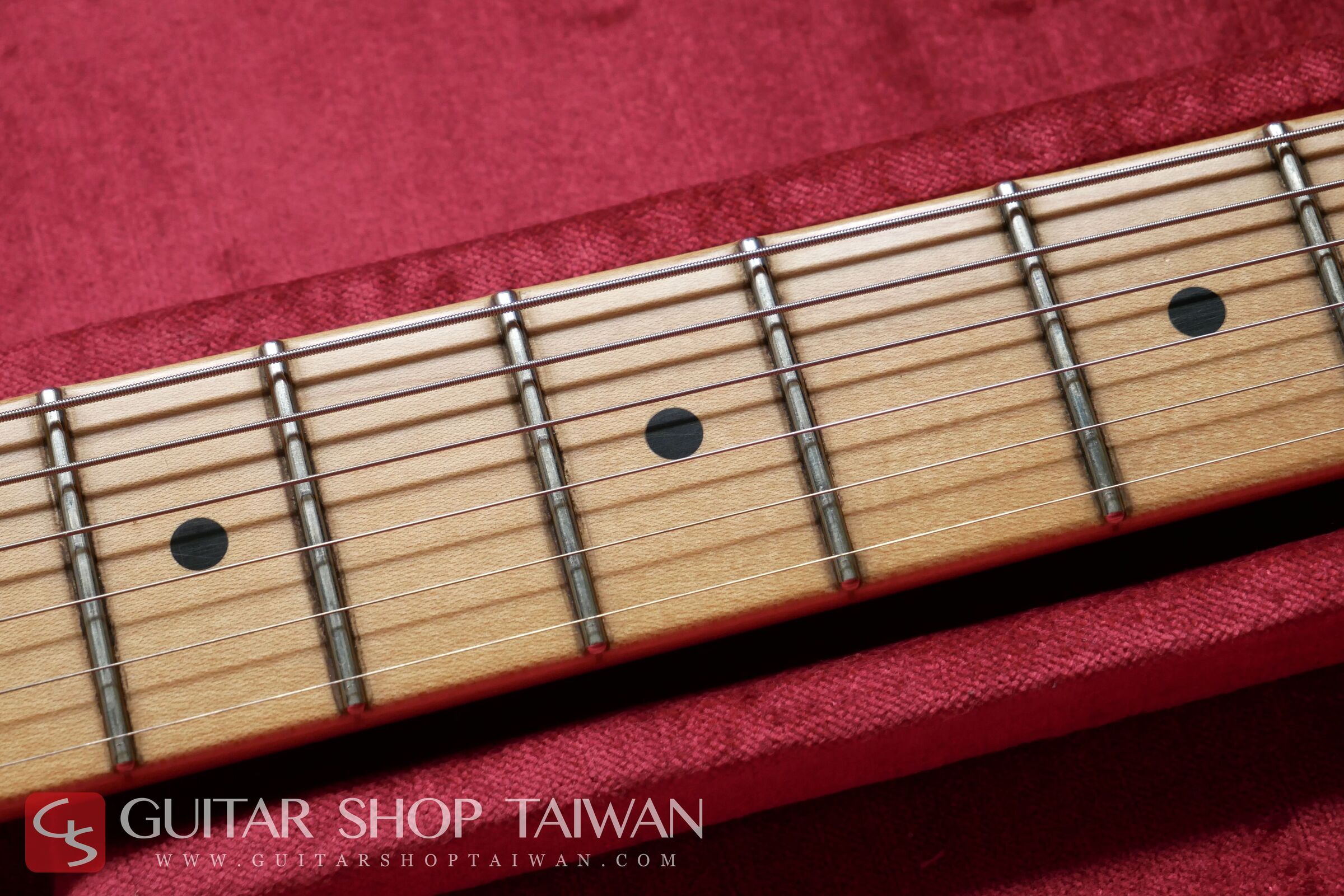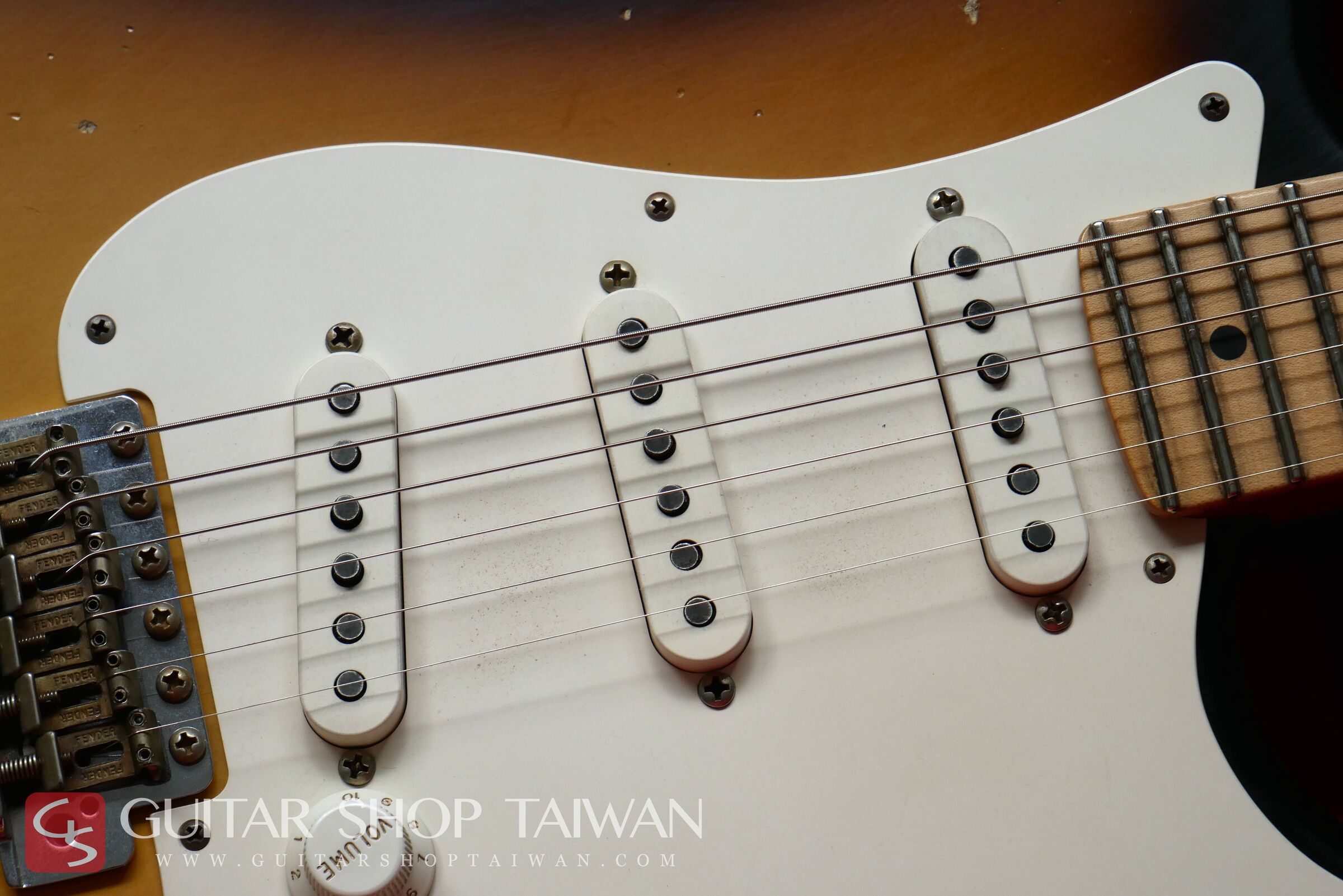 這是復刻Fender傳奇又經典的1957年Stratocaster。琴身為手選的Alder,搭配Two Tone Sunburst的經典配色,加上Kyle Mcmillin細膩Relic舊化,非常有質感。採用了’57 Solt V型楓木琴頸、9.5” to 14” Compound Radius複合弧度指板、Medium Jumbo Frets,拾音器搭配一組手繞的Hand Wound Fat 50’s Relic Strat Bridge/Neck與RWRP ’56 Relic Strat Middle Pickup,共五段音色切換。