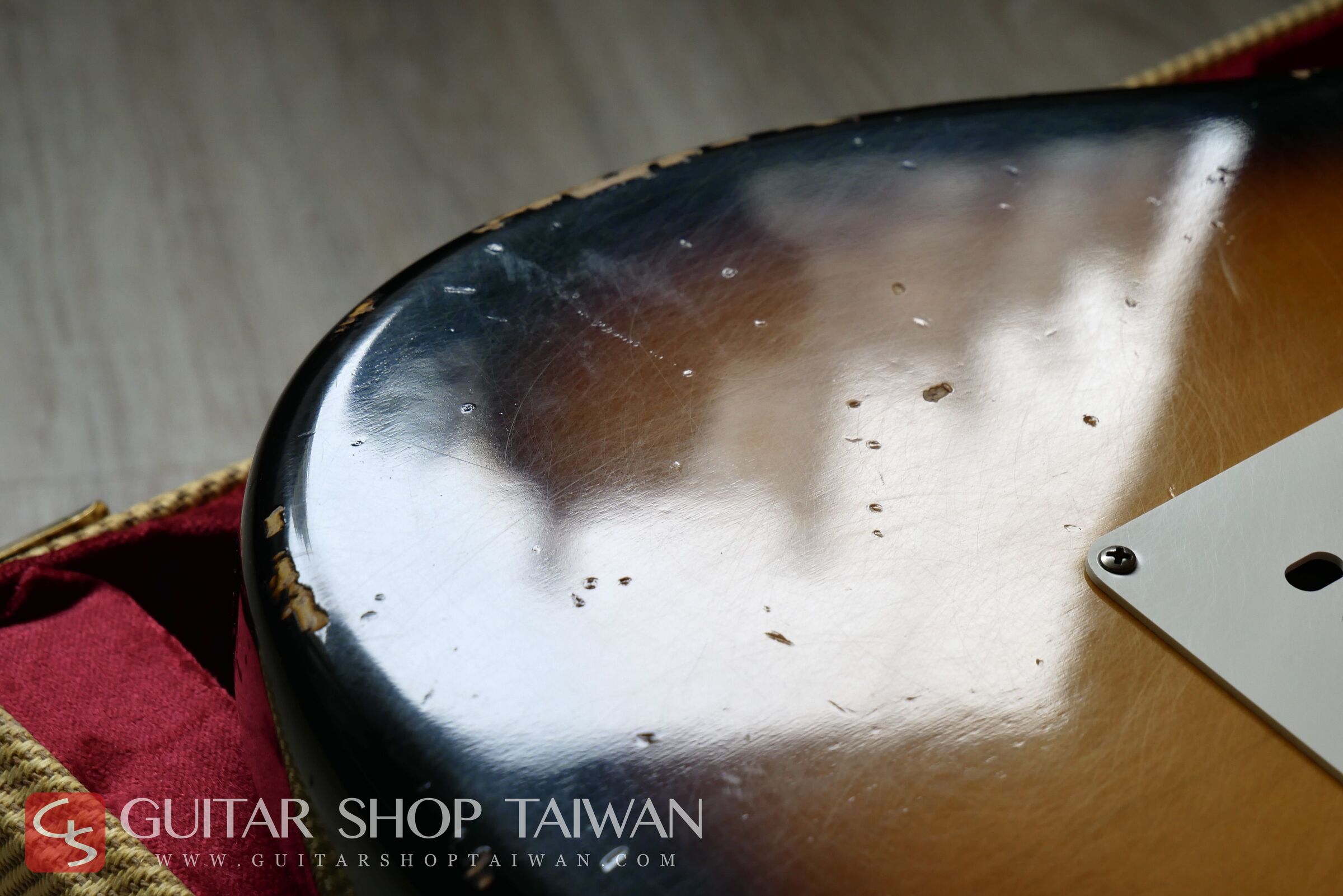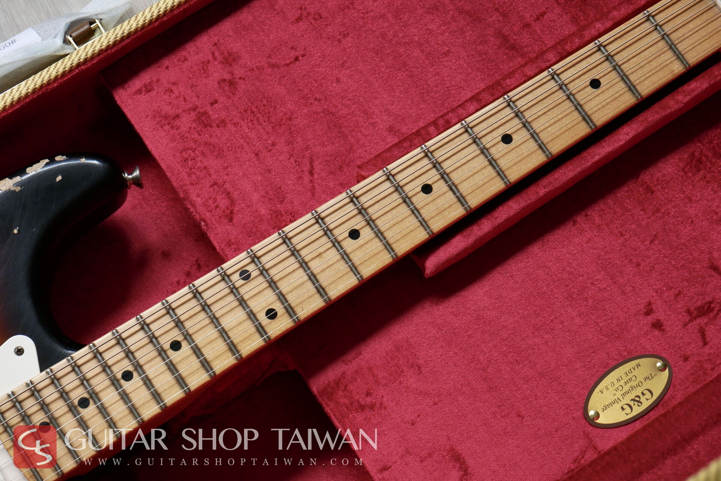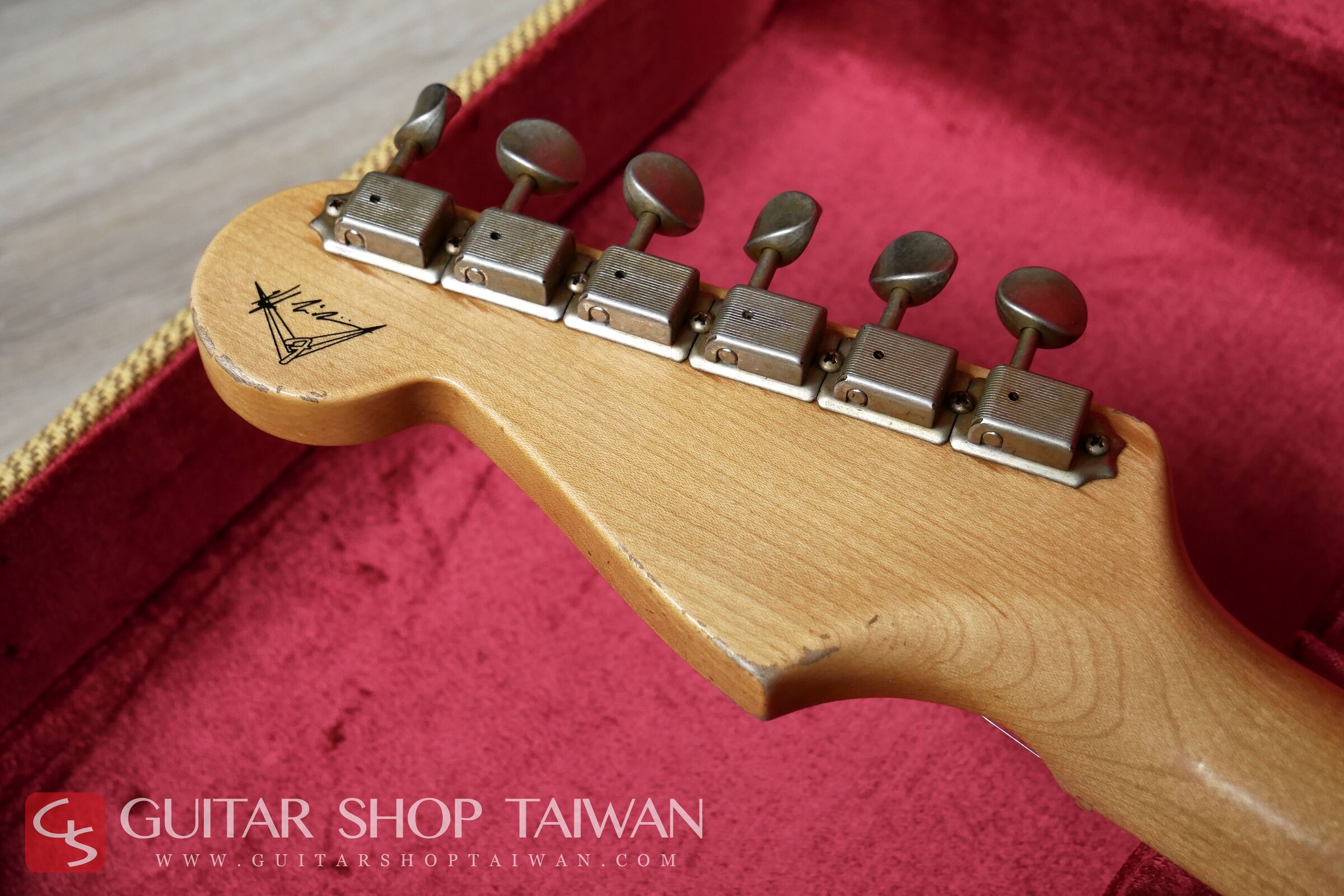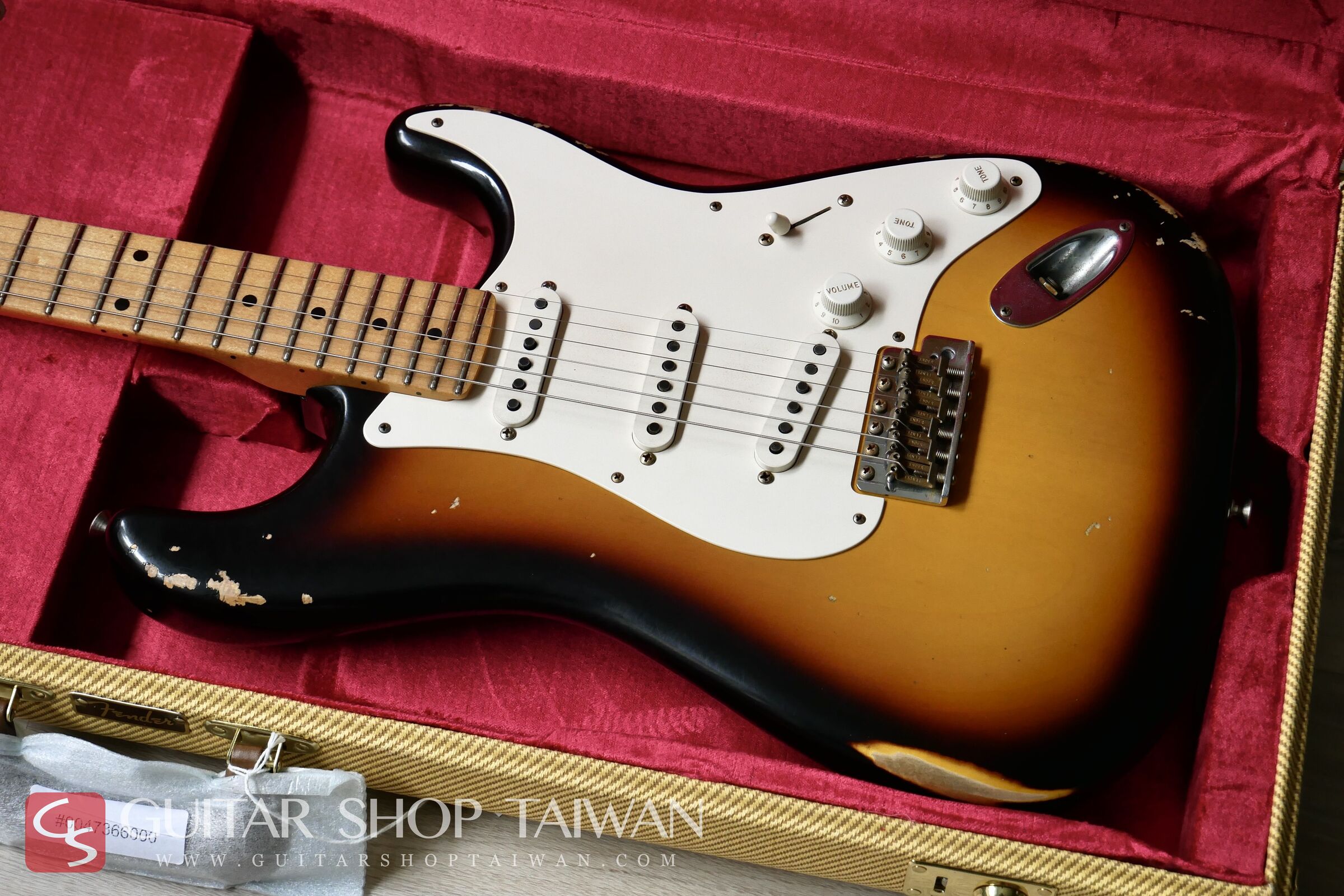 這是復刻Fender傳奇又經典的1957年Stratocaster。琴身為手選的Alder,搭配Two Tone Sunburst的經典配色,加上Kyle Mcmillin細膩Relic舊化,非常有質感。採用了’57 Solt V型楓木琴頸、9.5” to 14” Compound Radius複合弧度指板、Medium Jumbo Frets,拾音器搭配一組手繞的Hand Wound Fat 50’s Relic Strat Bridge/Neck與RWRP ’56 Relic Strat Middle Pickup,共五段音色切換。