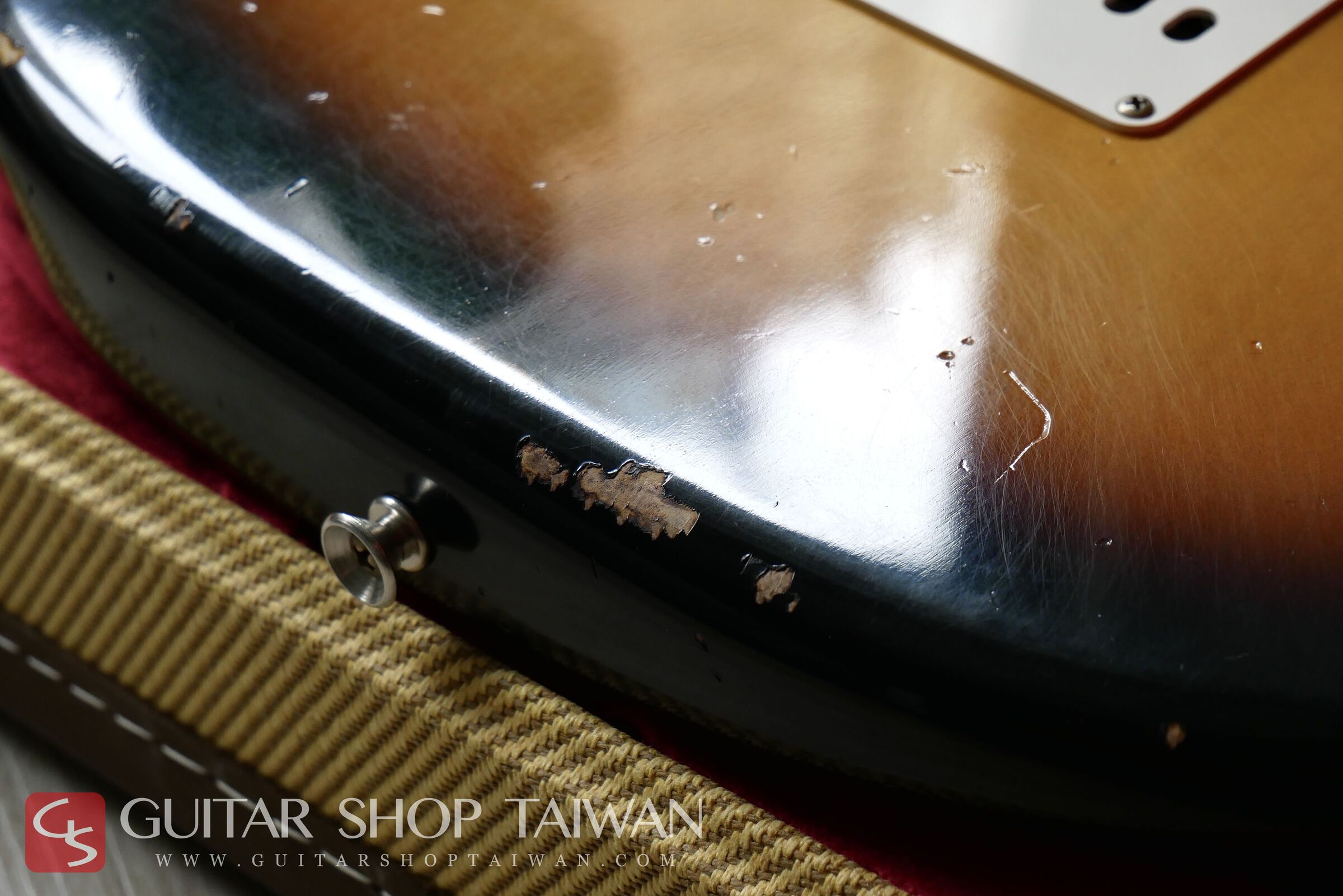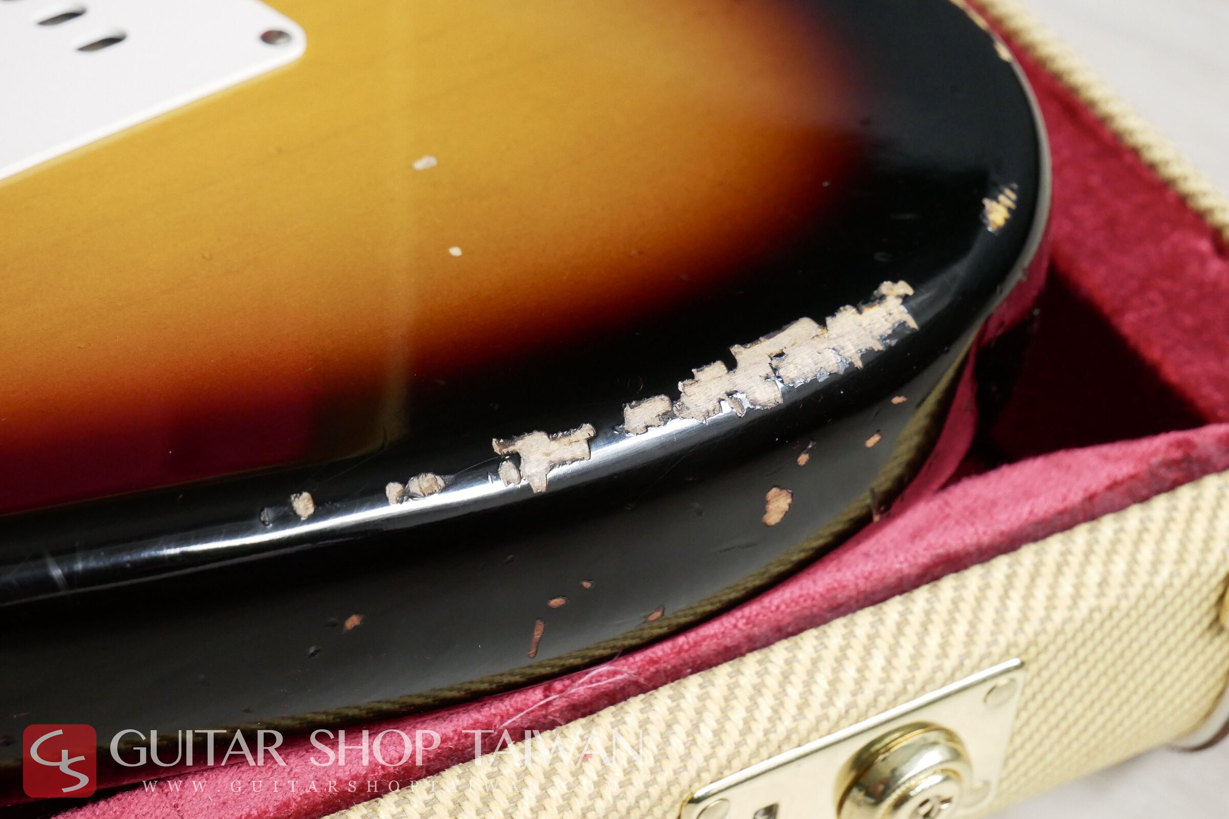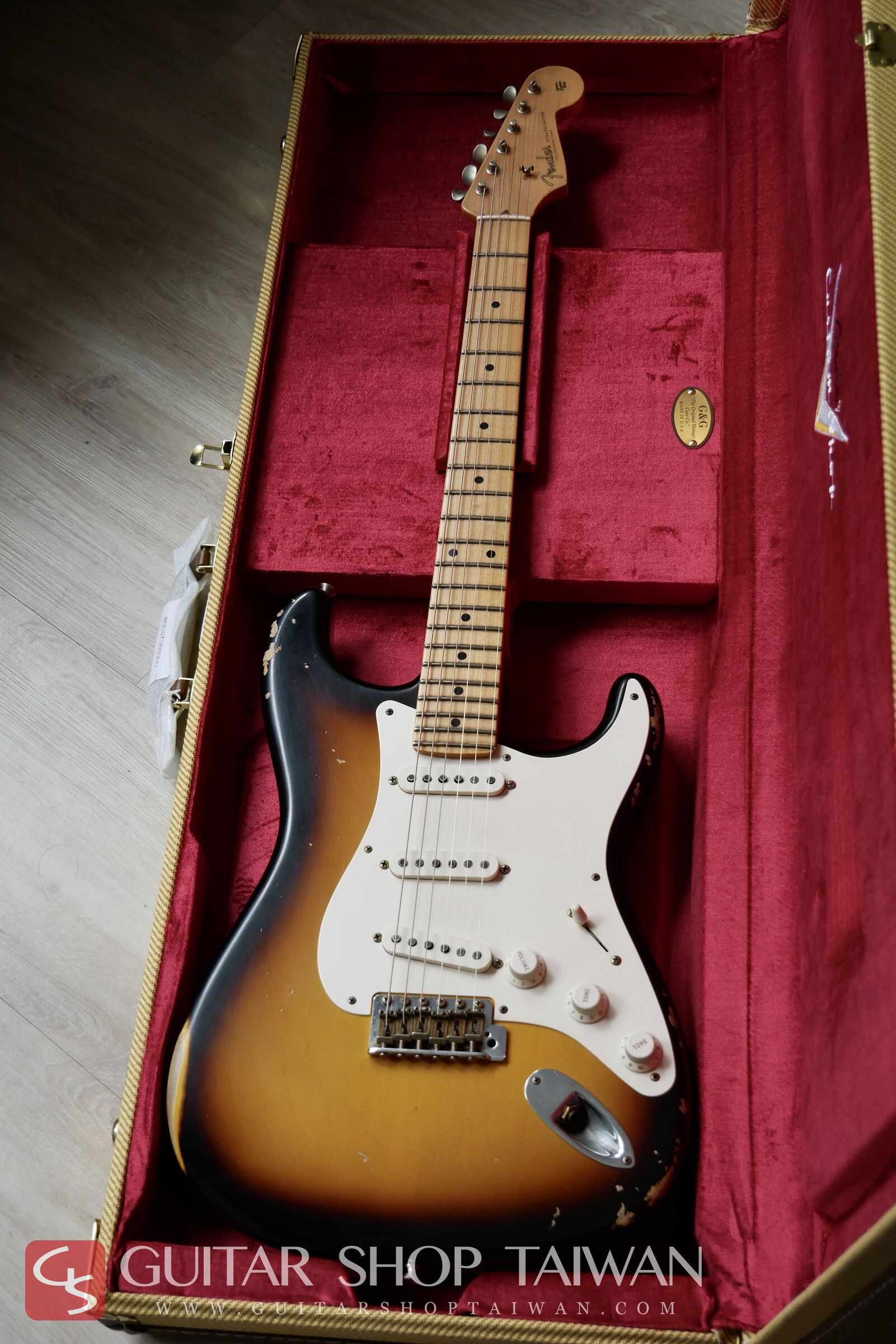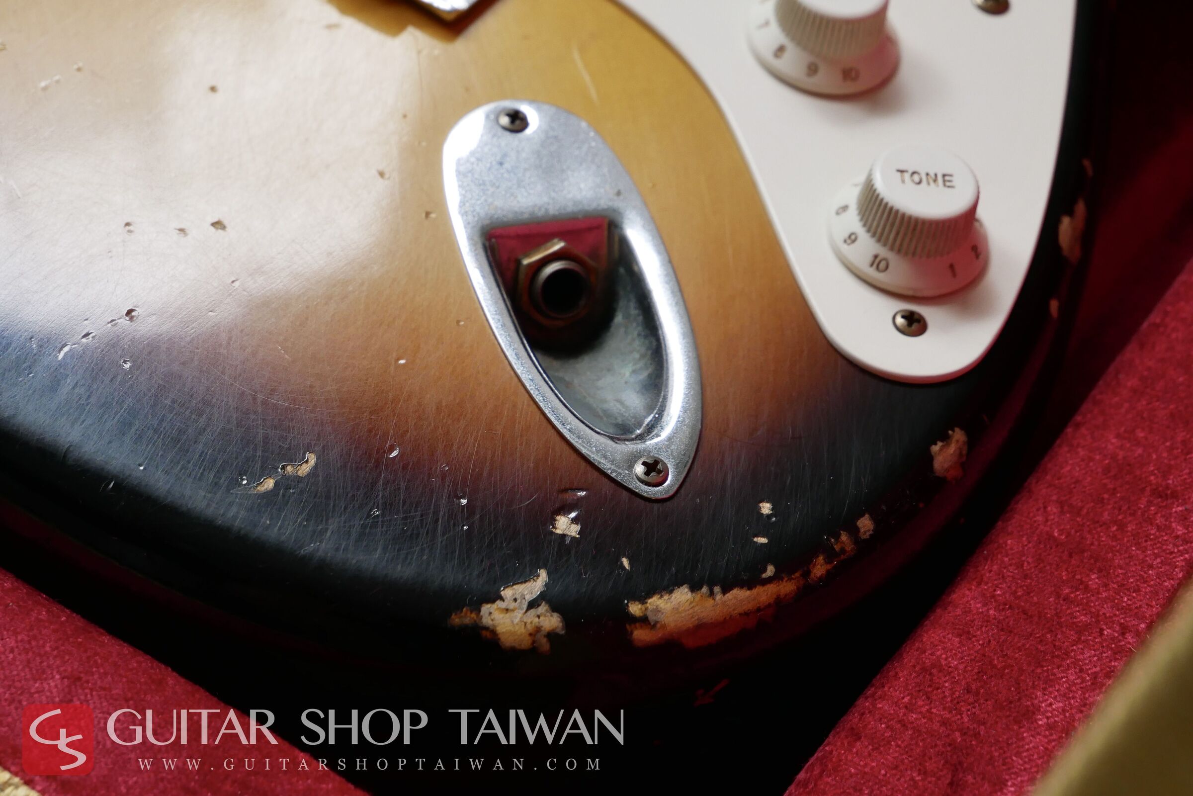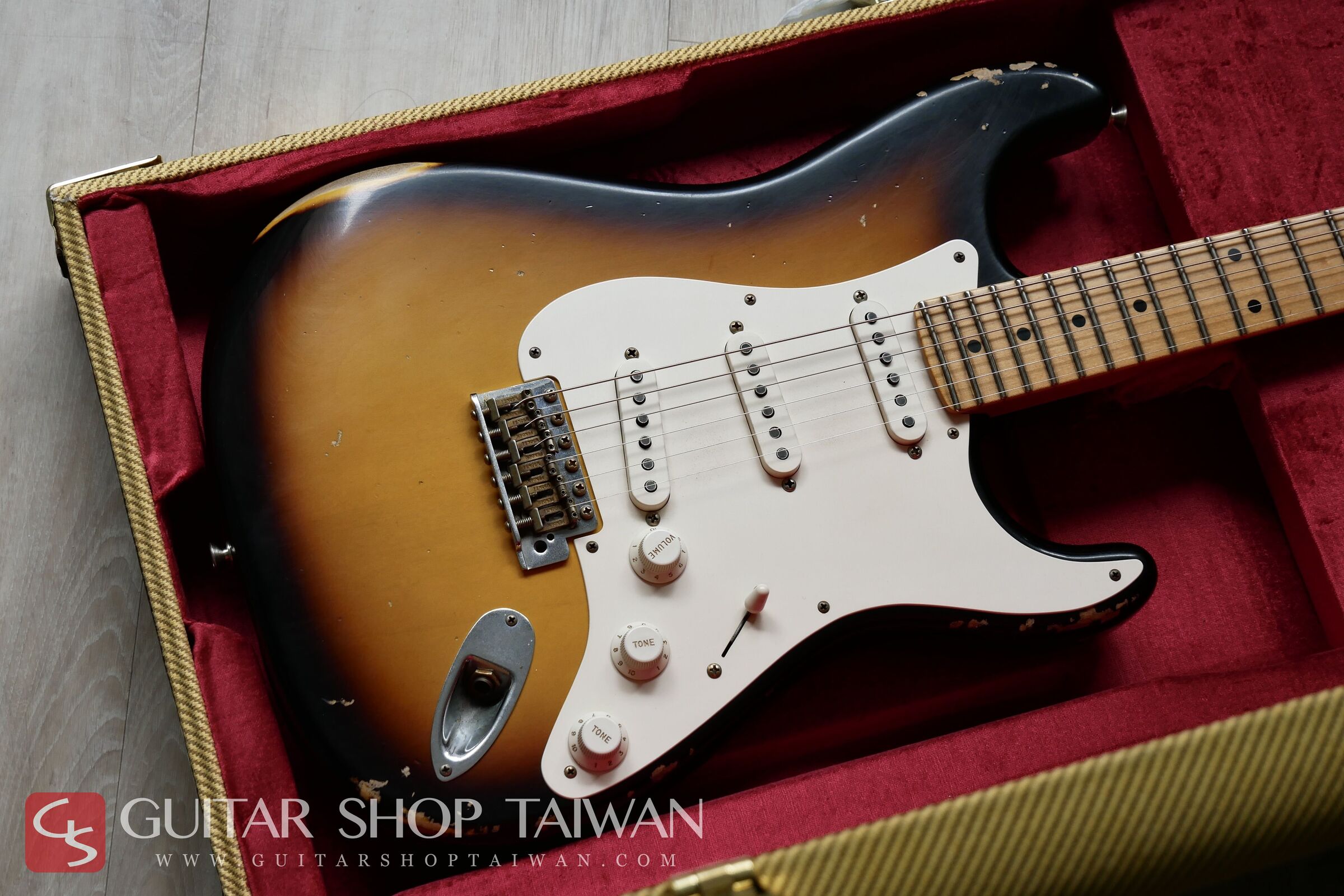 這是復刻Fender傳奇又經典的1957年Stratocaster。琴身為手選的Alder,搭配Two Tone Sunburst的經典配色,加上Kyle Mcmillin細膩Relic舊化,非常有質感。採用了’57 Solt V型楓木琴頸、9.5” to 14” Compound Radius複合弧度指板、Medium Jumbo Frets,拾音器搭配一組手繞的Hand Wound Fat 50’s Relic Strat Bridge/Neck與RWRP ’56 Relic Strat Middle Pickup,共五段音色切換。
