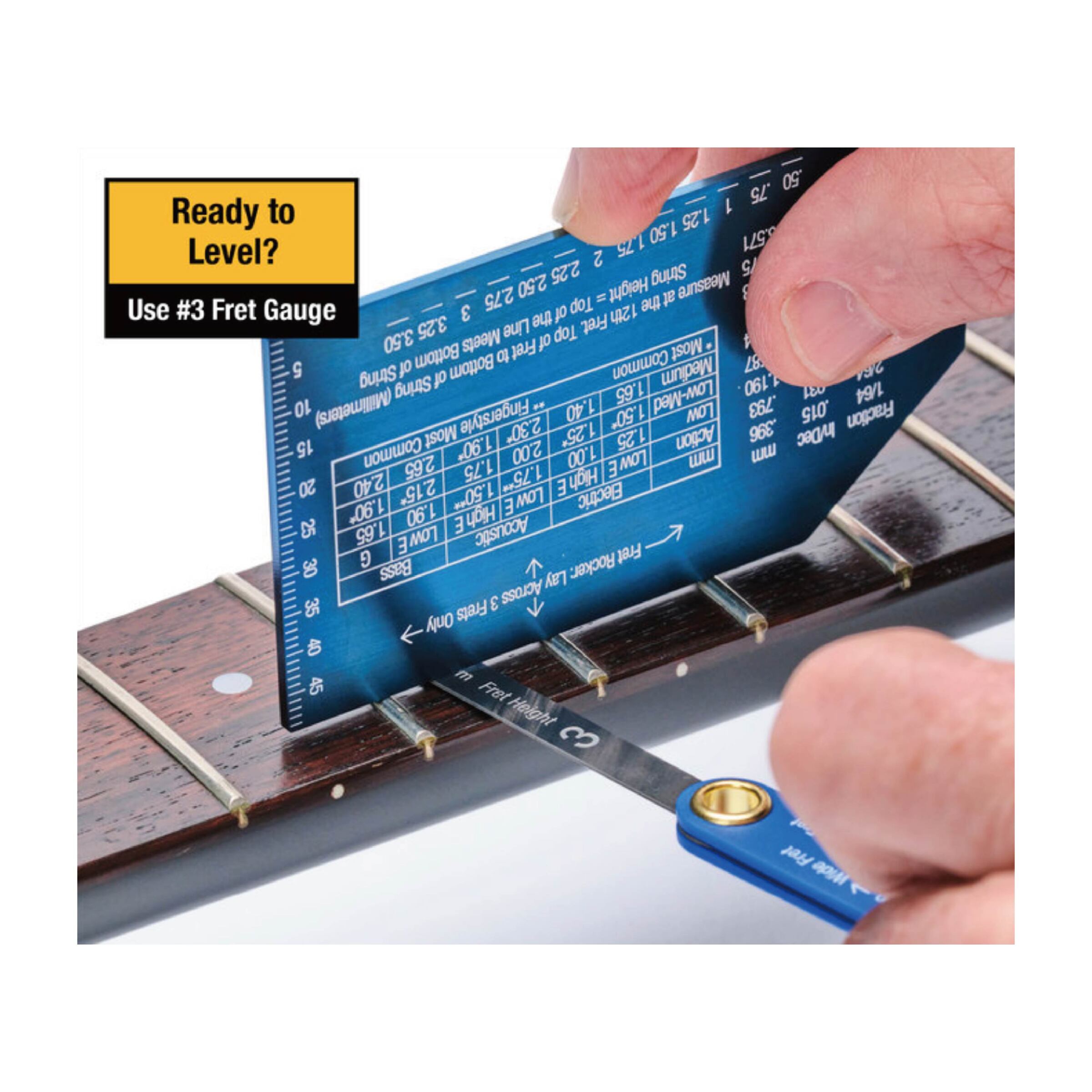 MusicNomad 的精密品絲測量尺是一款必備工具,能幫助您快速準確地完成這項工作。