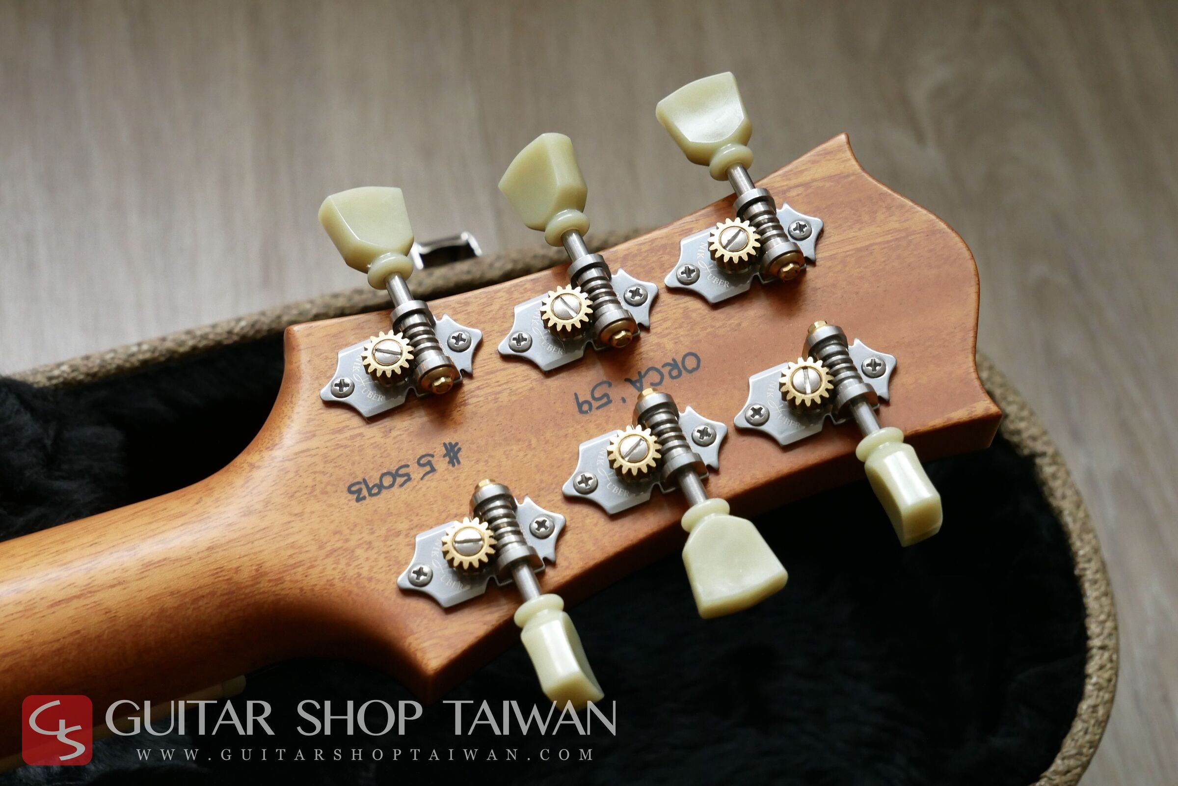 Orca '59 是一款致敬經典 Les Paul 59 開發的型號,以精湛工藝和高品質的音色而聞名,融合了經典的傳統設計和現代技術。嚴選的桃花心木琴身,琴面為Exceptional One-Piece Flame Maple (加價升級),嚴選一整片無切割的虎紋楓木,採用經典的 Faded Sunburst 配色,全琴以 Semi-gloss Finish 霧面處理,帶來更滑順細緻的手感,指板為印度玫瑰木,前後拾音器配置為Kloppmann 1959 Pickups。琴身與琴面的內部採用獨家的 Honeycomb Routing (加價升級),這是Nik Huber本人與團隊歷時多年研發、精密計算而成的蜂巢式中空結構,此特殊設計在蜂巢的切割方向、深度與木材共振頻率等方面皆經過精細調整,不僅大幅提升了共鳴表現,也減輕了因為高品質桃花心木重量較重的問題。