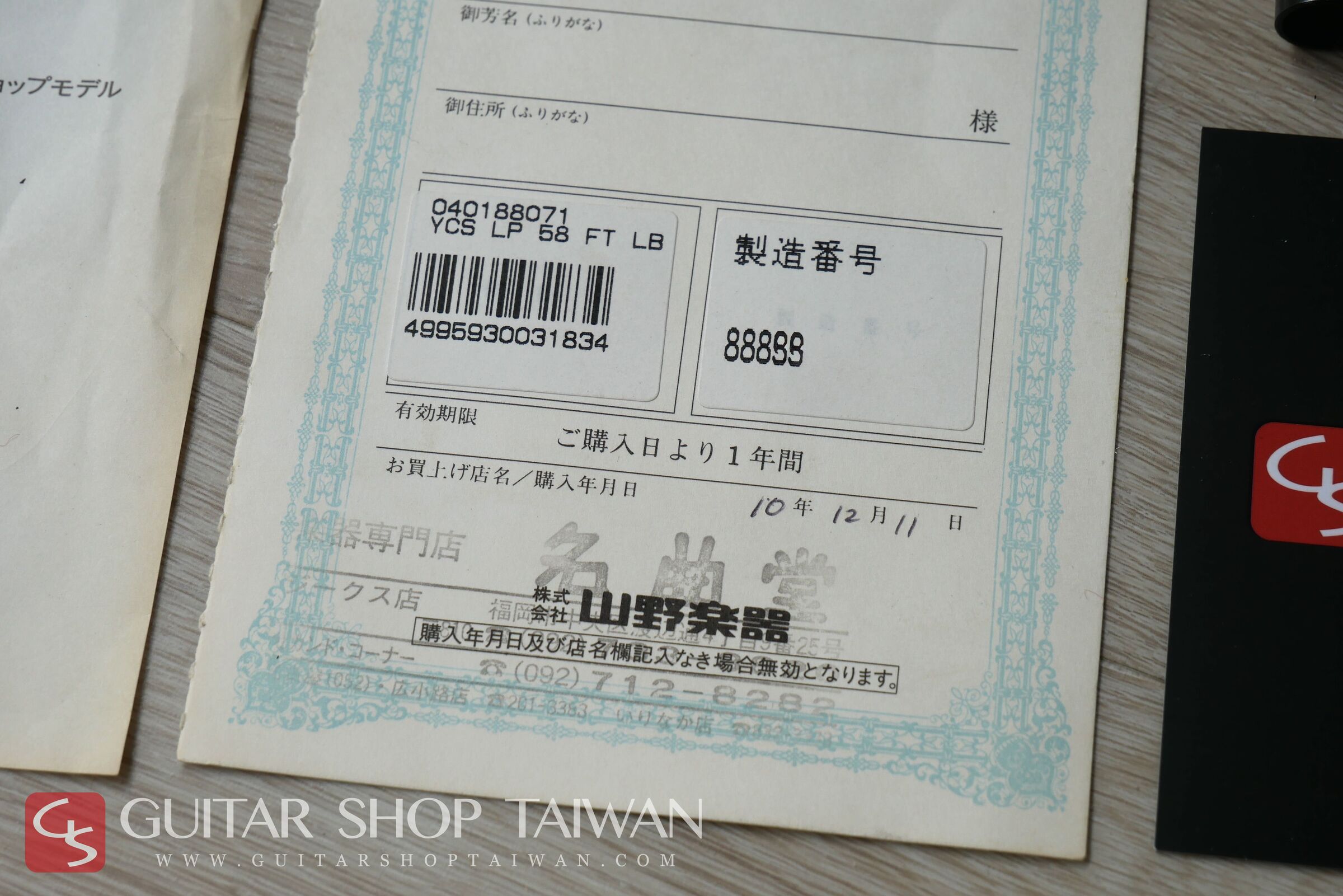 1998年製,這是來自Gibson "Good Wood Years"黃金90年代生產的1958 Les Paul Reissue,此版本為YCS (Japan Yamano Custom Shop)是Gibson在90年代為日本總代理「山野樂器」特別製作給日本的高品質版本,許多玩家認為,日本YCS限定版的用料與品質比起當年美國市售版來得更好,所以在歐美市場上更稀有、也更受歡迎。