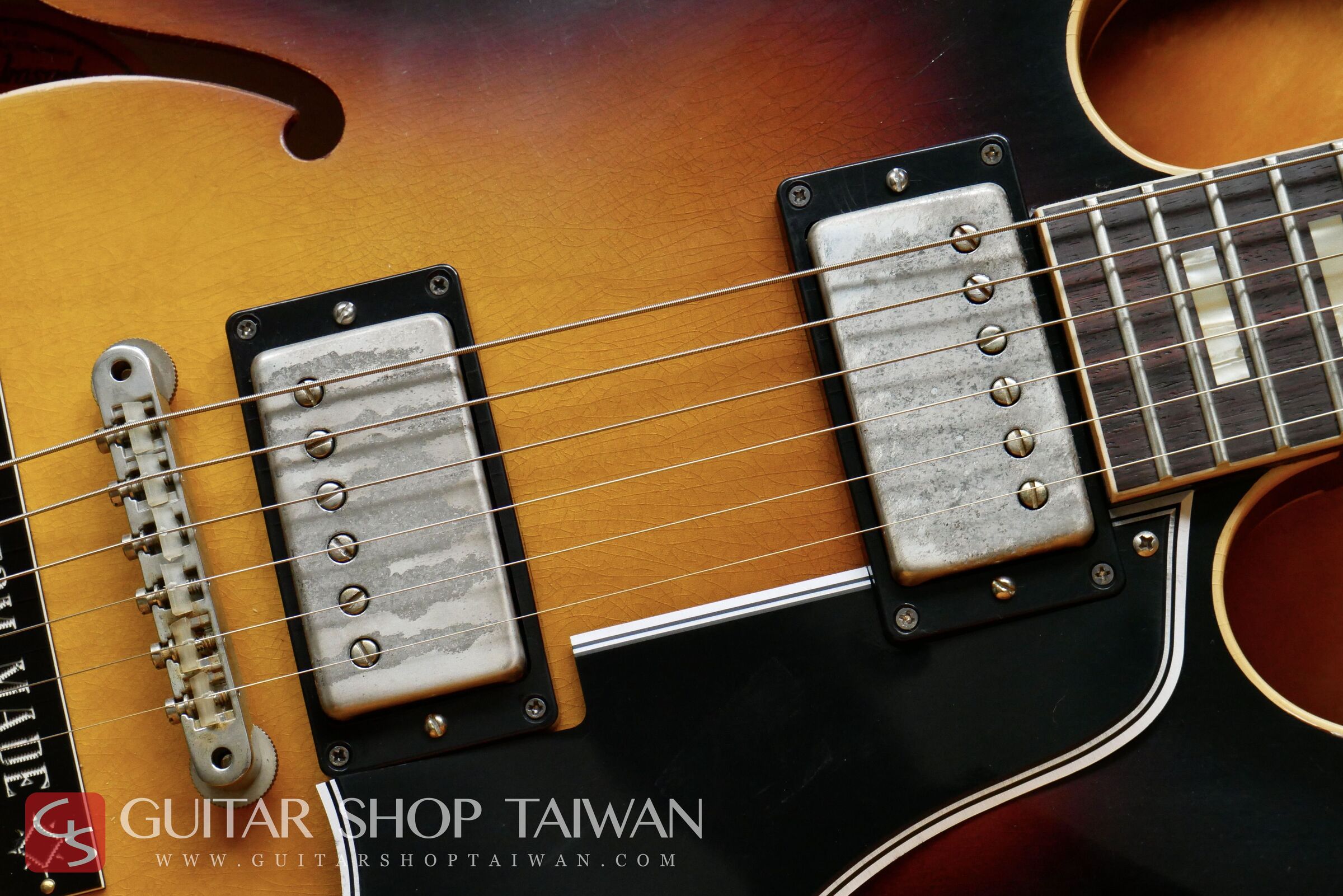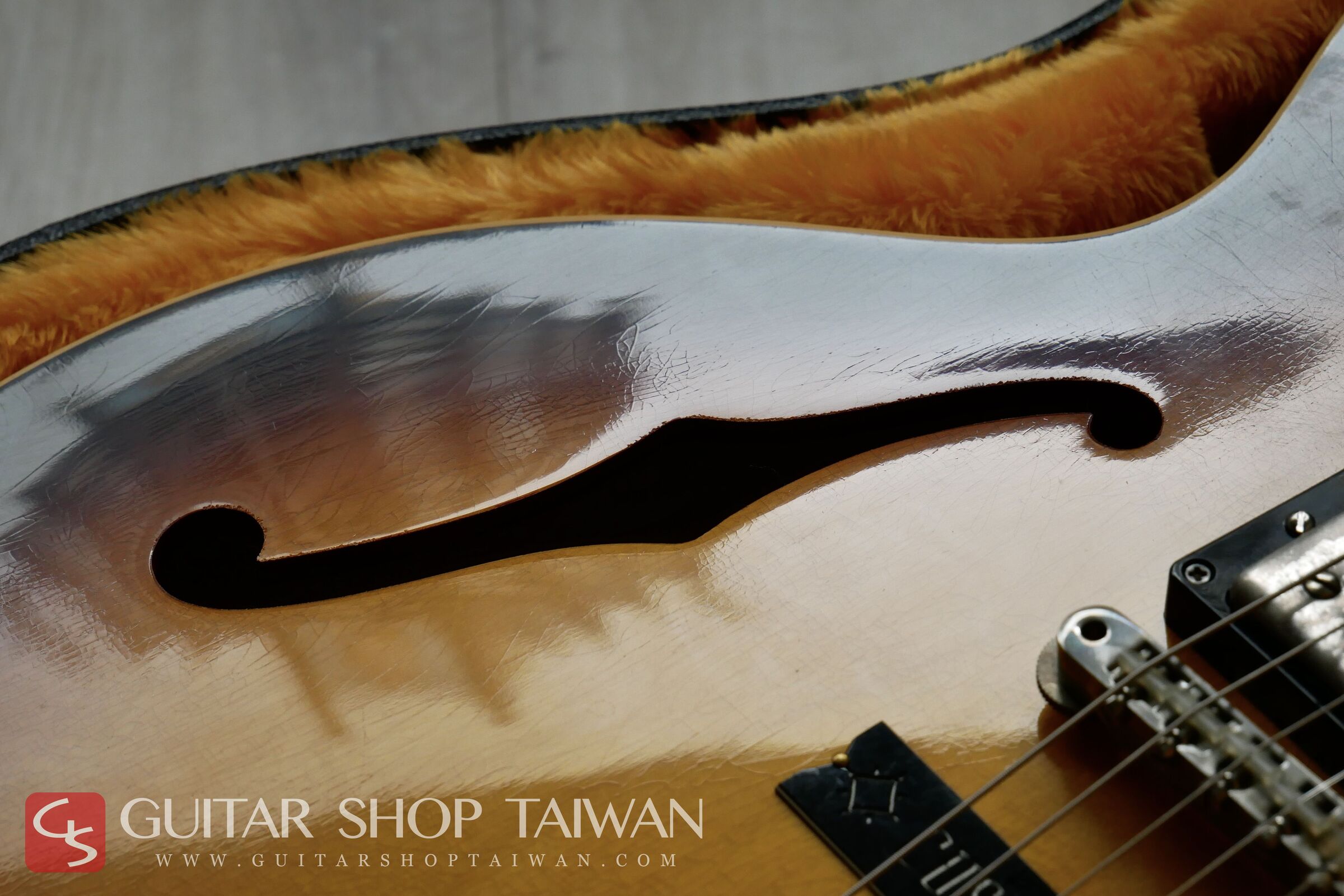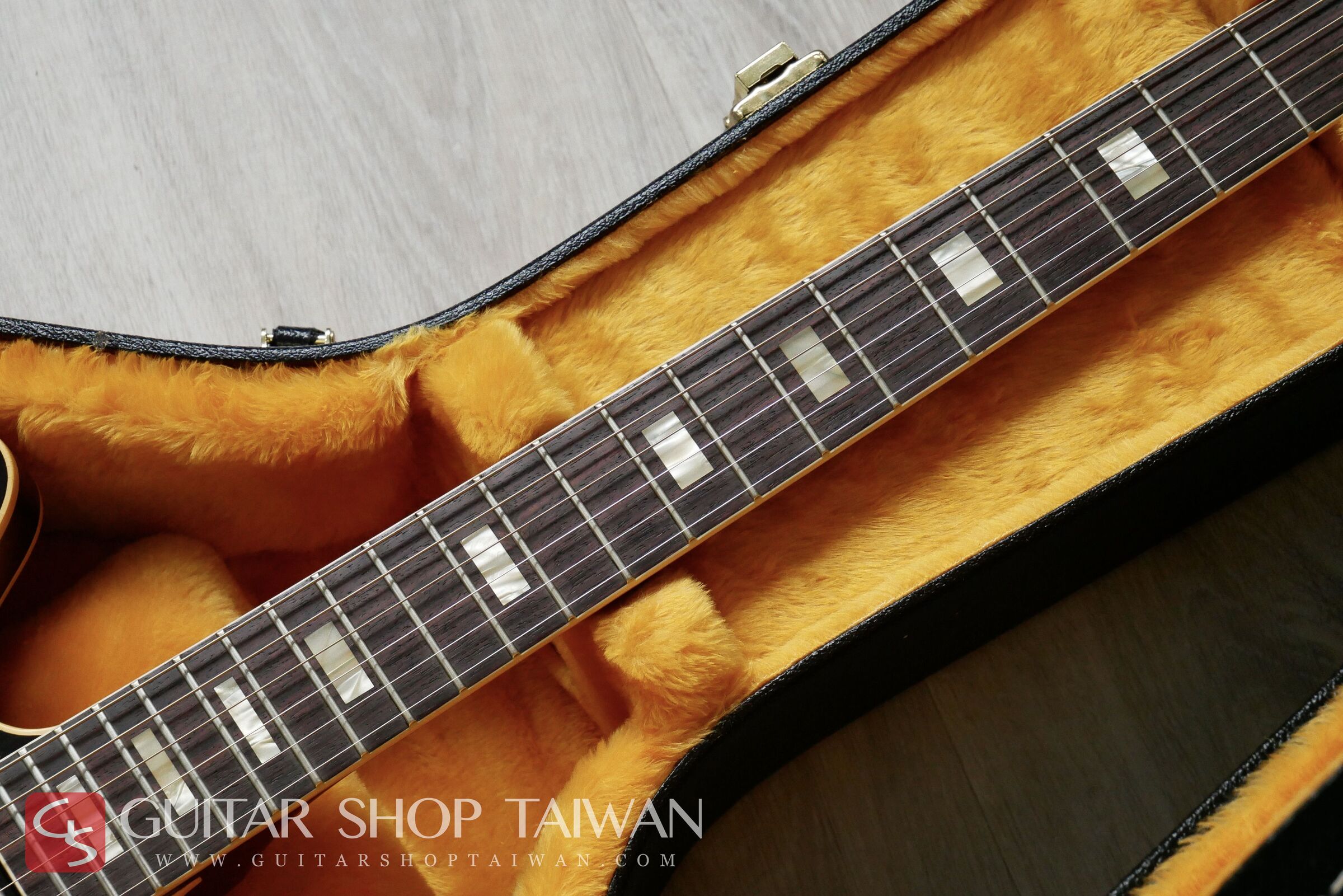 這款Slash 1963 ES-335 Collector’s Edition以Murphy Lab等級復刻,這是由Gibson傳奇技師Tom Murphy帶領的全新系列,採用獲得專利的全新化學技術所製作,利用熱破壞方式讓表面透明漆產生自然的Weather Checking裂紋,使整體舊化呈現的更加自然,更像是因為年代所自然產生,除了複製原琴的相同傷痕以外,原廠也完整了復刻了原琴規格,包括了經典的Bigsby,琴身與琴頸為桃花心木,琴頸規格為SlimTaper 60s C Neck、Indian Rosewood指板,原廠配置一組Unpotted的Custombucker Alnico 2拾音器,也包括了新版復刻琴才有的美國Luxe Bumblebee大黃蜂油質電容,與全新升級的復古線路。