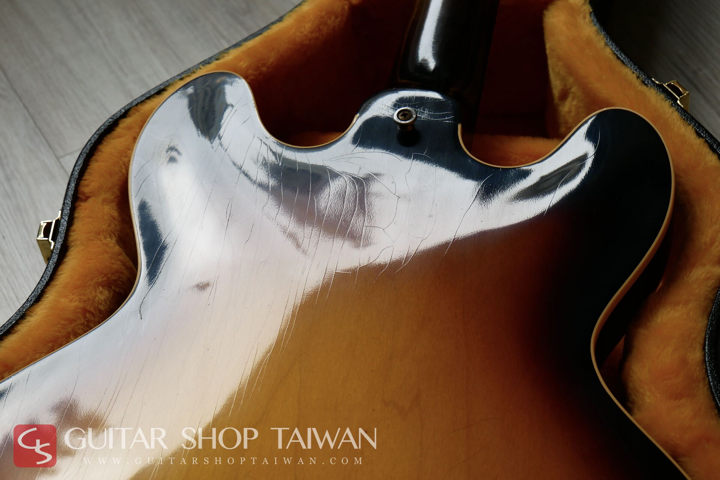 這款Slash 1963 ES-335 Collector’s Edition以Murphy Lab等級復刻,這是由Gibson傳奇技師Tom Murphy帶領的全新系列,採用獲得專利的全新化學技術所製作,利用熱破壞方式讓表面透明漆產生自然的Weather Checking裂紋,使整體舊化呈現的更加自然,更像是因為年代所自然產生,除了複製原琴的相同傷痕以外,原廠也完整了復刻了原琴規格,包括了經典的Bigsby,琴身與琴頸為桃花心木,琴頸規格為SlimTaper 60s C Neck、Indian Rosewood指板,原廠配置一組Unpotted的Custombucker Alnico 2拾音器,也包括了新版復刻琴才有的美國Luxe Bumblebee大黃蜂油質電容,與全新升級的復古線路。
