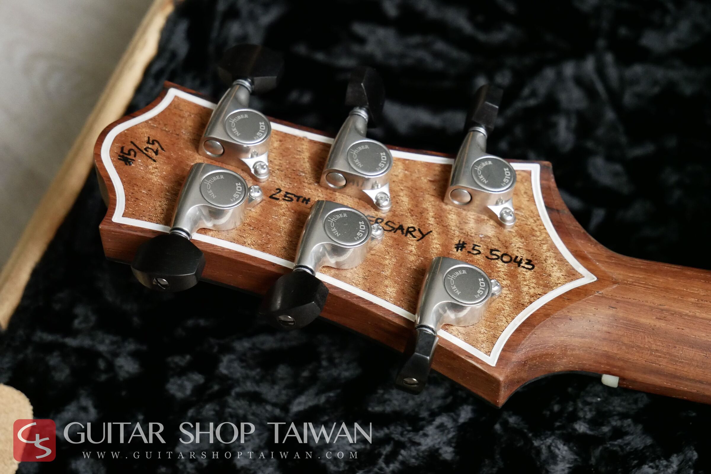 這是Nik Huber Guitars在2025年為慶祝創廠25週年所推出的Dophin '59 25th Anniversary,全球限量僅25把,本公司配額3把,是全球所有經銷商中數量最多的。這把吉他的製作集結了工廠內最頂級的木頭,搭配了一些從來沒有提供過的規格與細節,並展現了Nik Huber Guitars團隊的精湛的工藝與製琴實力。