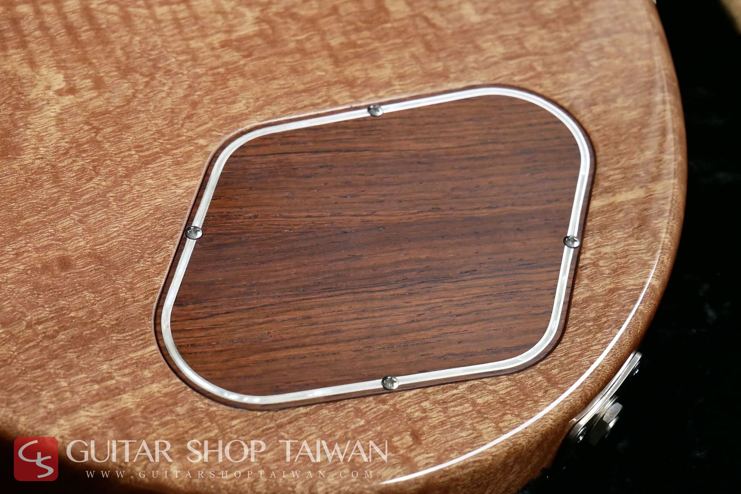 Inside the body, both the back and top feature Nik Huber’s proprietary Honeycomb Routing—a design developed over years by Nik himself and his team. The pattern, depth, and resonance characteristics of this routing have been meticulously calculated to significantly enhance resonance while reducing the overall weight typically associated with high-quality mahogany.