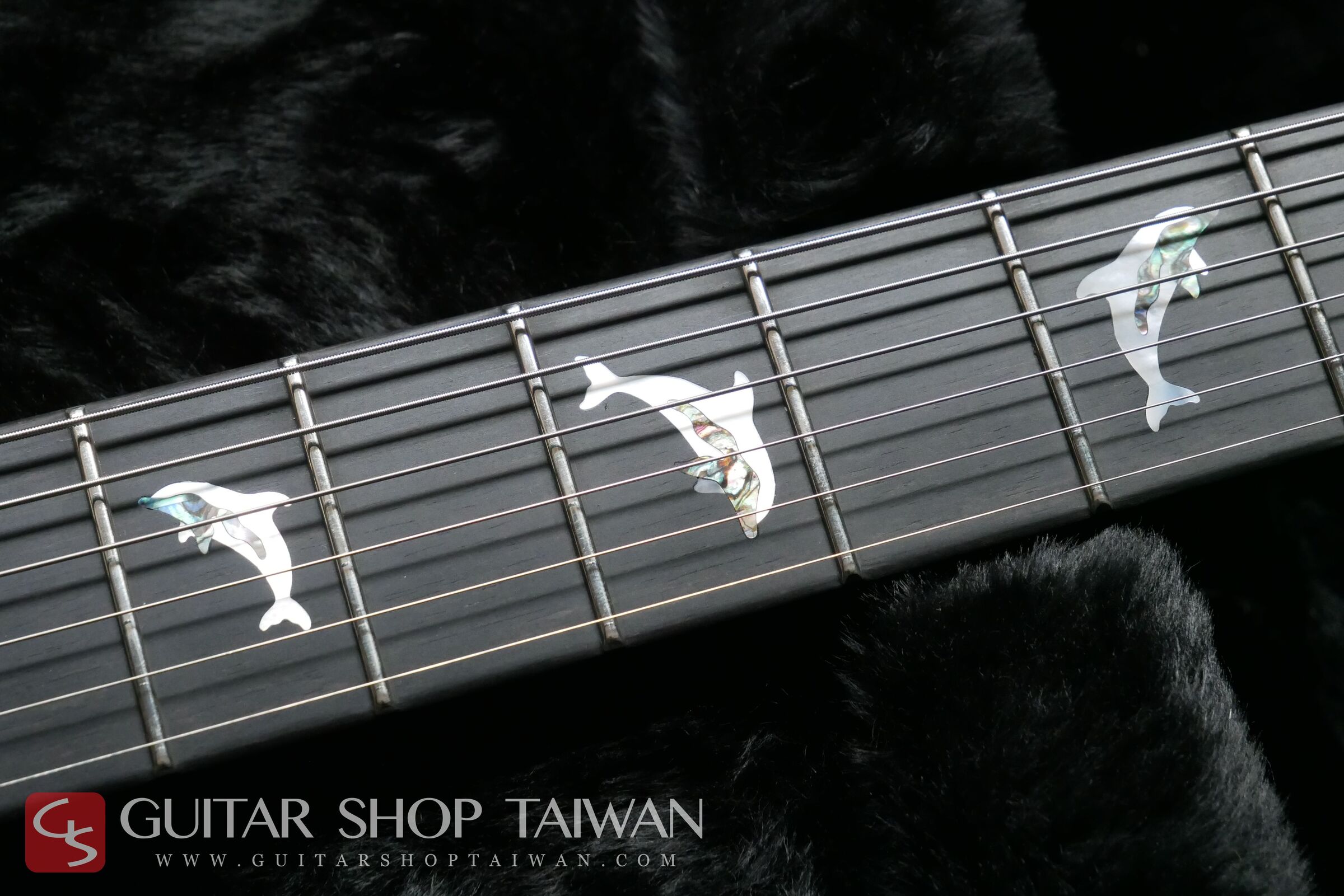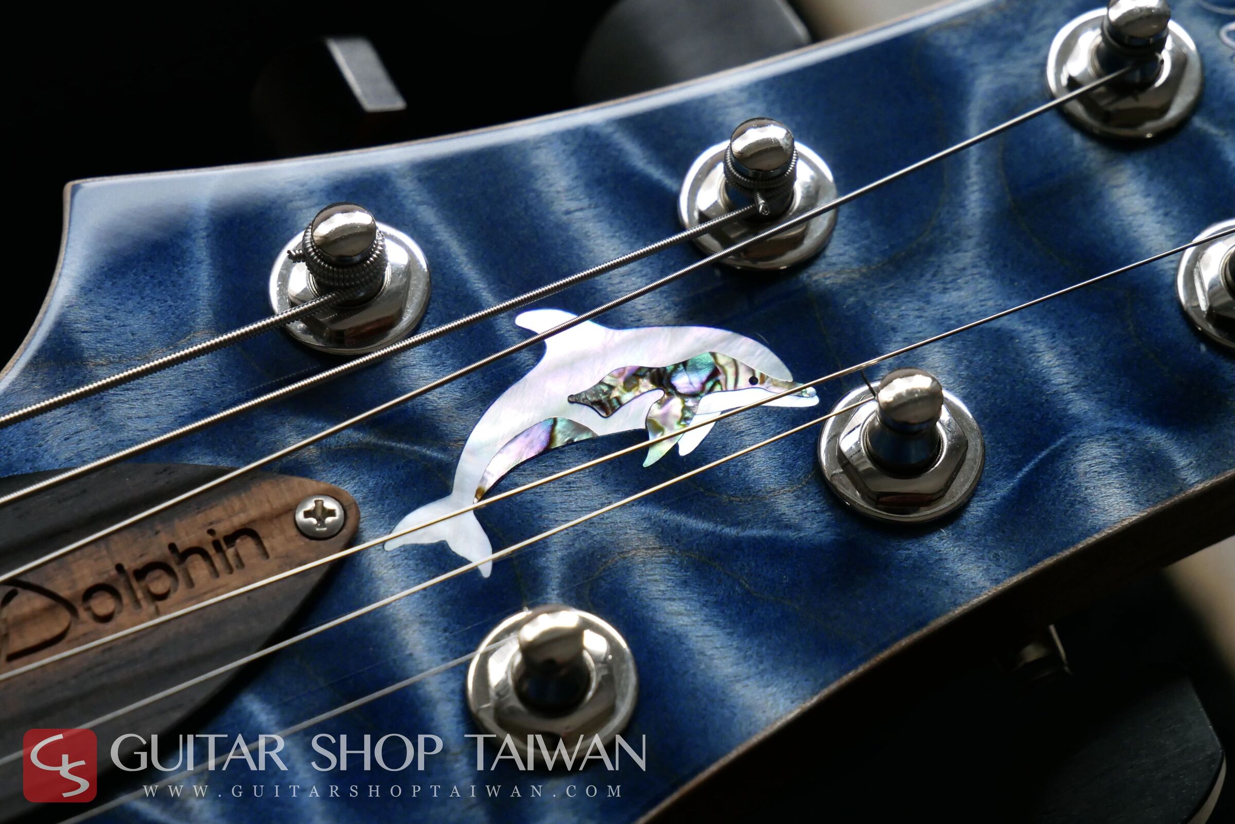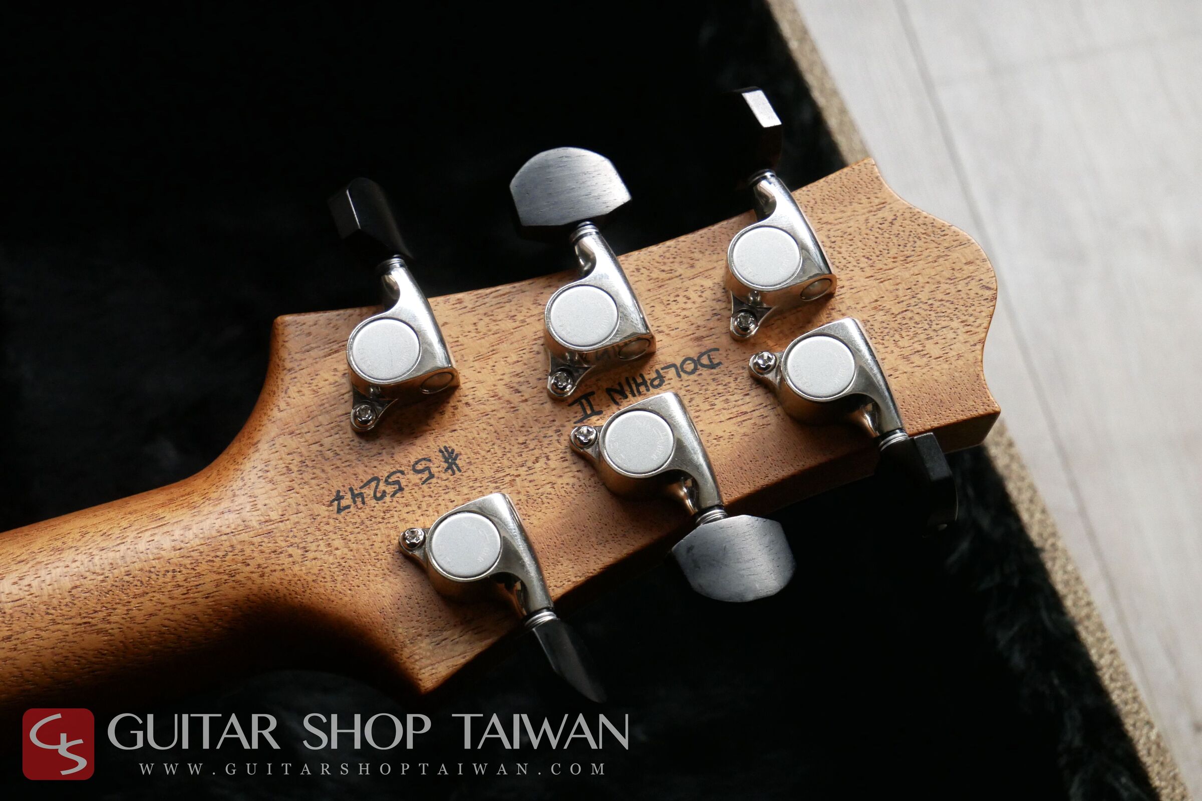 Dolphin II是Nik Huber Guitars非常經典且熱門的型號之一,它延續了原始Dolphin的設計理念,但在琴面弧度與音色表現上進行了改良。嚴選5A等級雲狀楓木面板與琴頭面板,一整塊輕量桃花心木琴身,並以Atlantic Blue作為配色。指板採用高品質黑檀木製作,拾音器框與旋鈕亦選用黑檀木,相互呼應。指板與琴頭上選配了Nik Huber最經典的Dolphin Inlay,採用珍珠母貝與鮑魚貝手工鑲嵌,完美展現了Nik Huber團隊卓越的手工水準,使整把吉他如同藝術品一樣。前後拾音器配置為Häussel Vin Pickups,音色溫暖且清晰,也提供了靈敏的動態表現。
