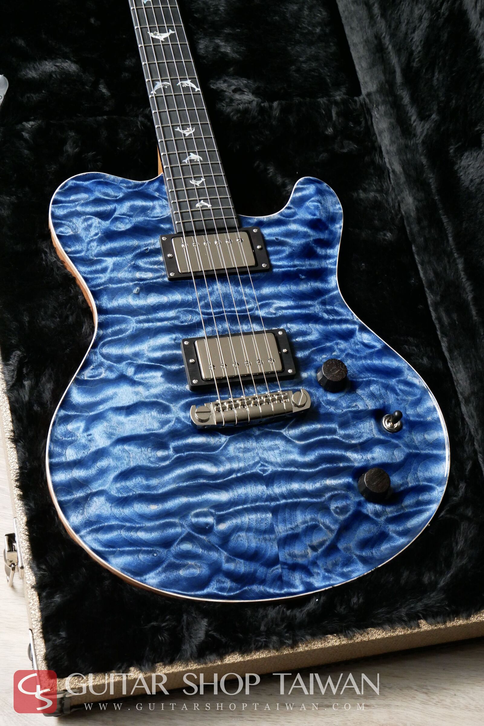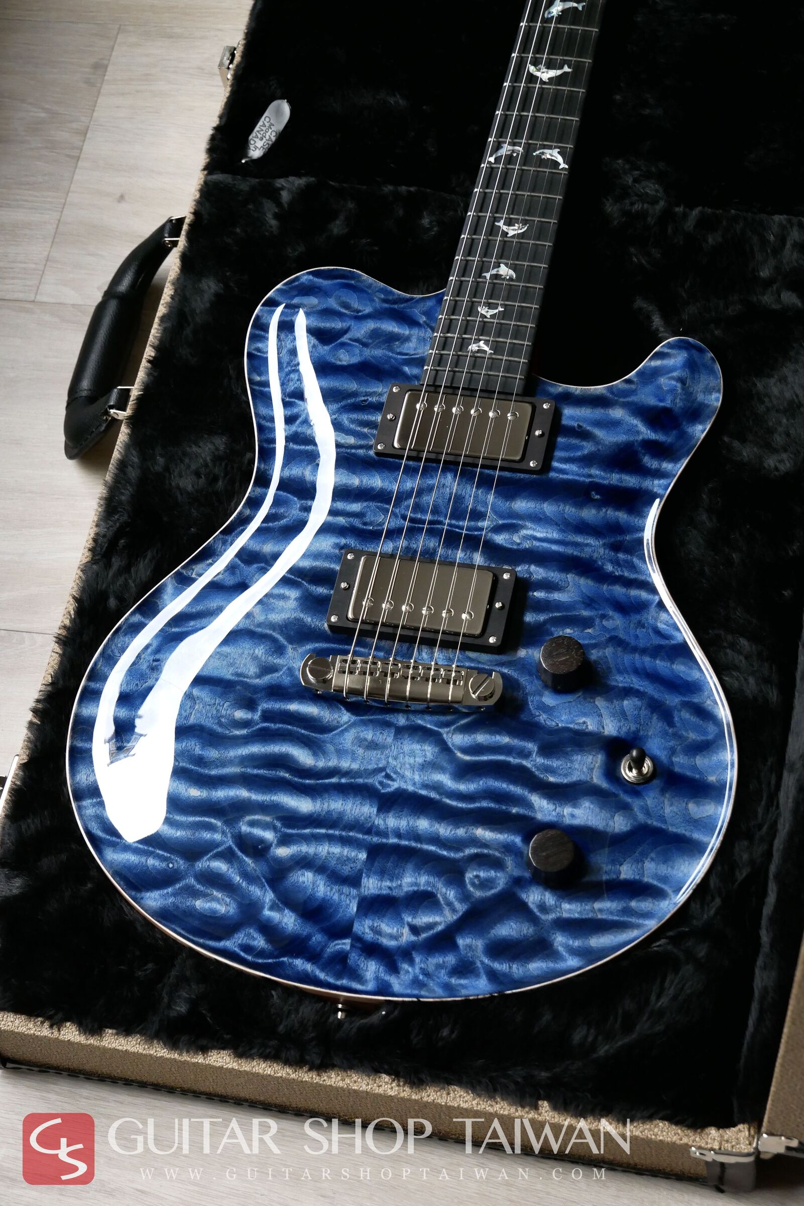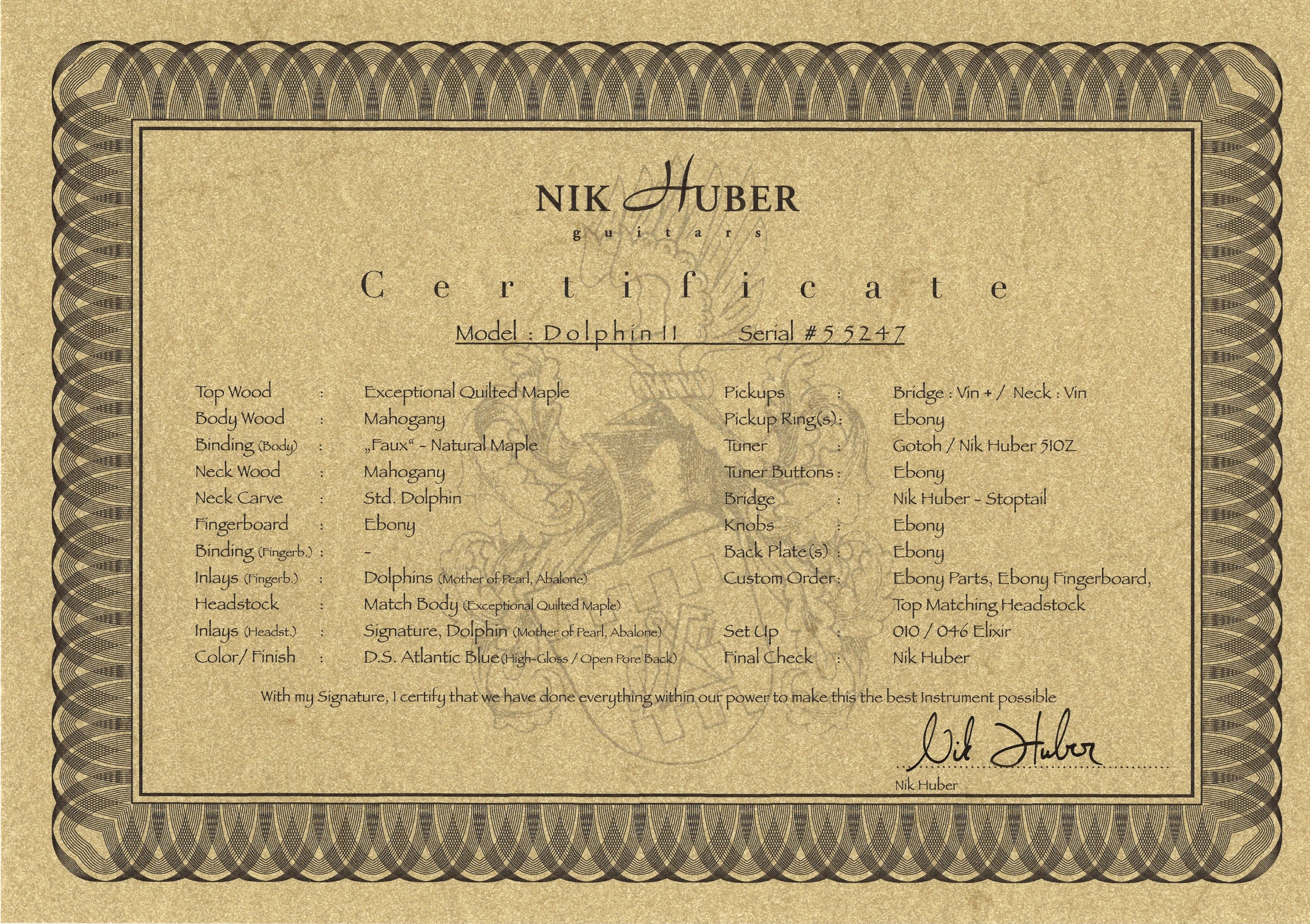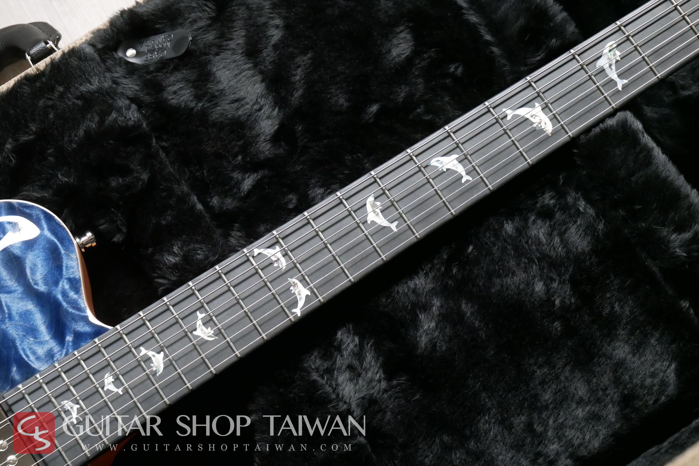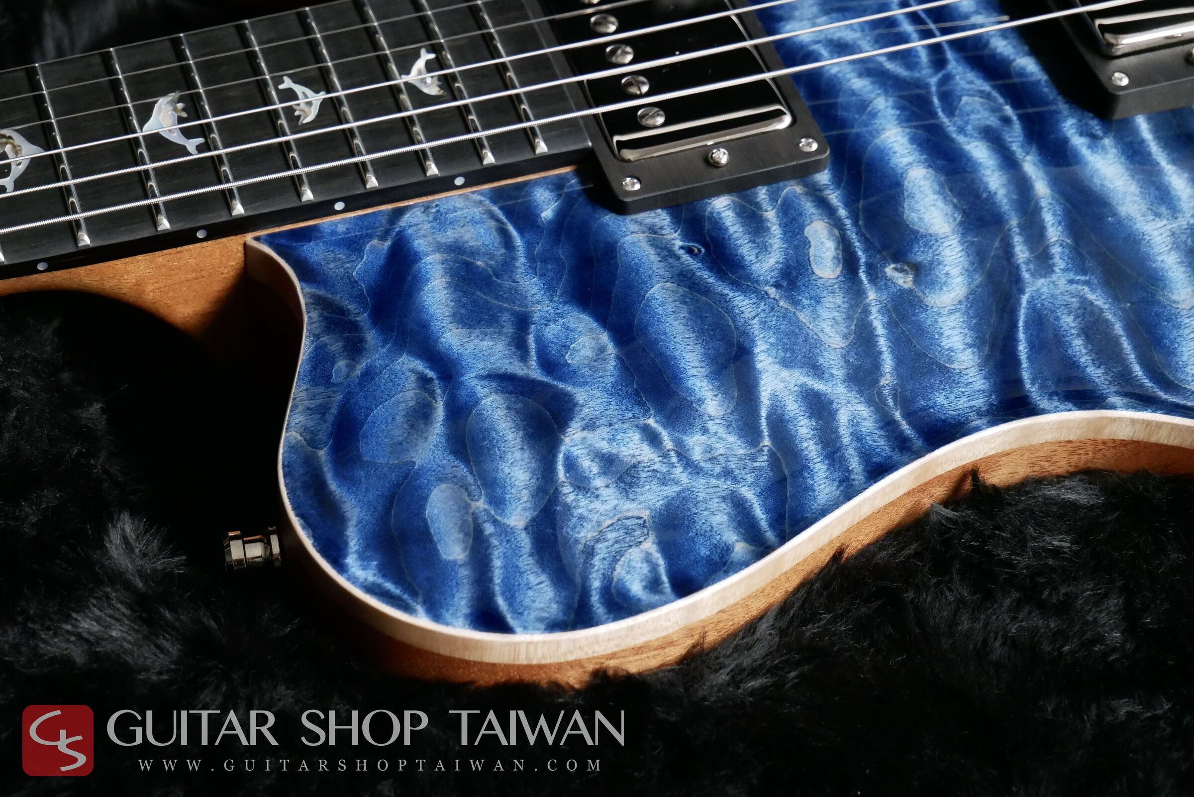 The Dolphin II is one of Nik Huber Guitars’ most classic and popular models. It continues the original Dolphin design concept while featuring refinements in the top carving and tonal performance. The 5A quilted maple top and headstock veneer are carefully selected, paired with a lightweight one-piece mahogany body, and finished in Atlantic Blue. The fingerboard is made of high-quality ebony, with the pickup frames and control knobs also crafted from ebony to complement the design. The fingerboard and headstock feature Nik Huber’s iconic Dolphin Inlay, hand-set with mother-of-pearl and abalone, perfectly demonstrating the team’s exceptional craftsmanship and making each guitar a true work of art.