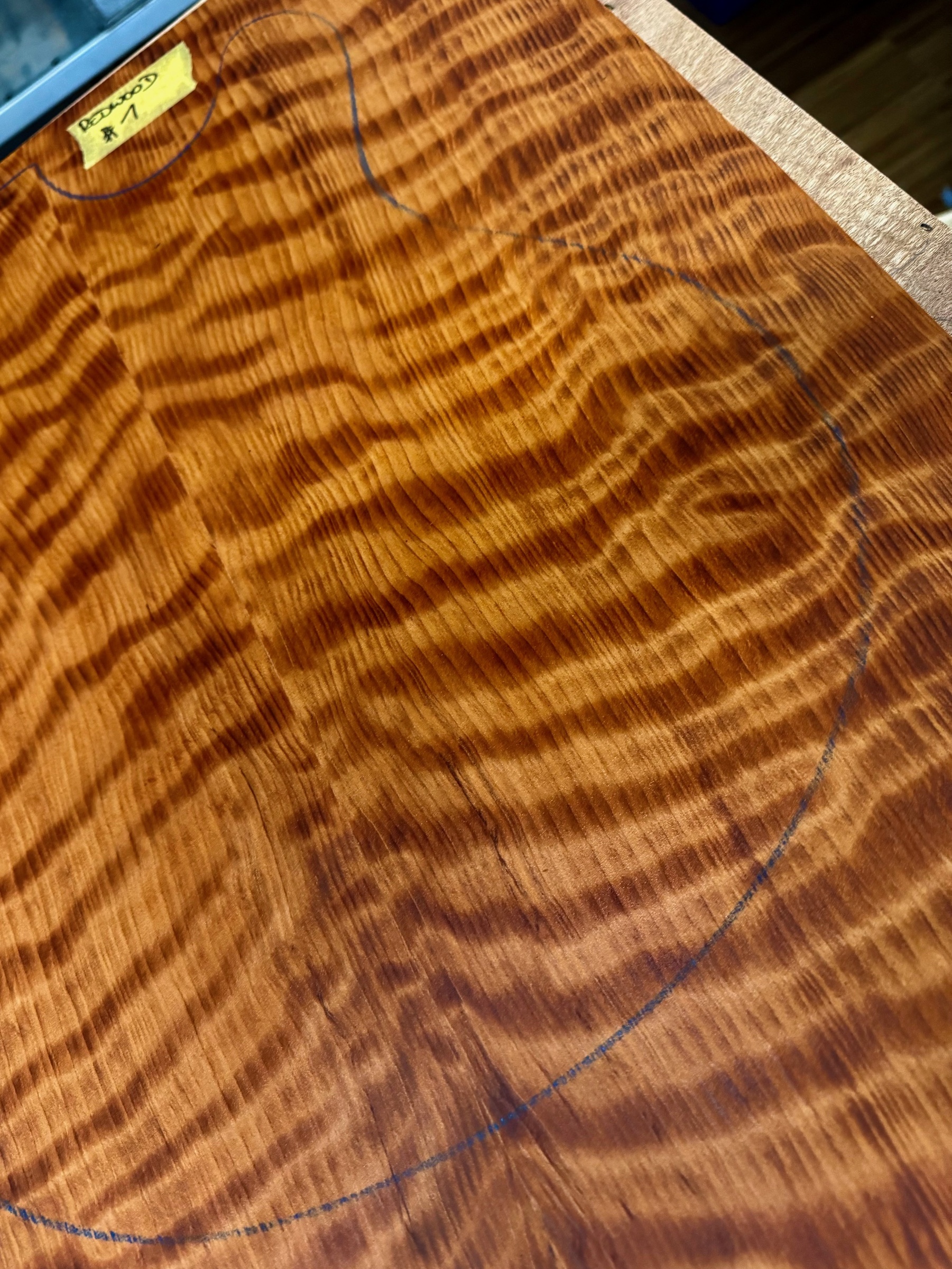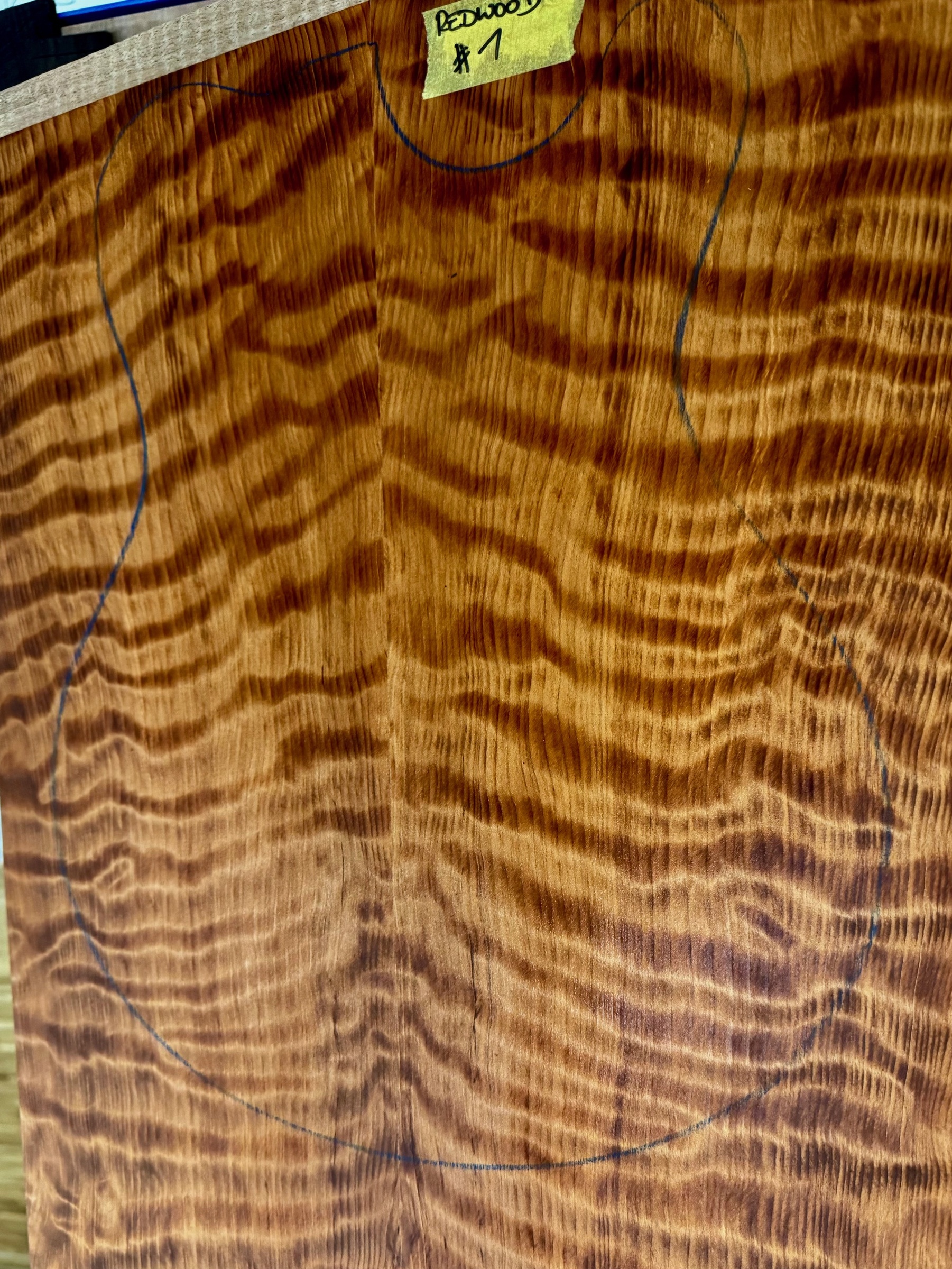 Exceptional Flame/Curly Redwood Top #1This is a premium redwood top, personally hand-selected by Nik Huber and Mason. Can be used on the Redwood series guitars.*Custom order for Hao