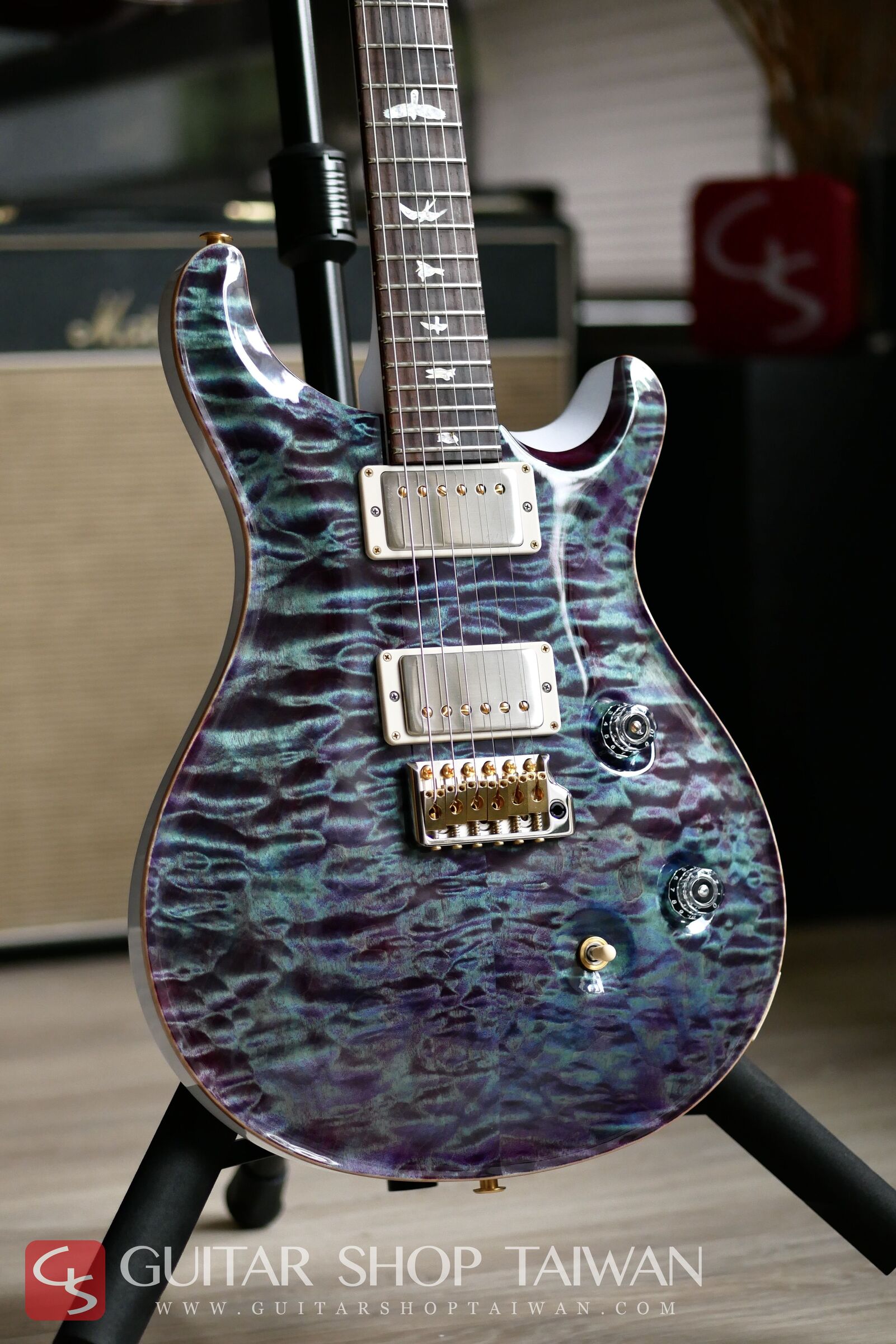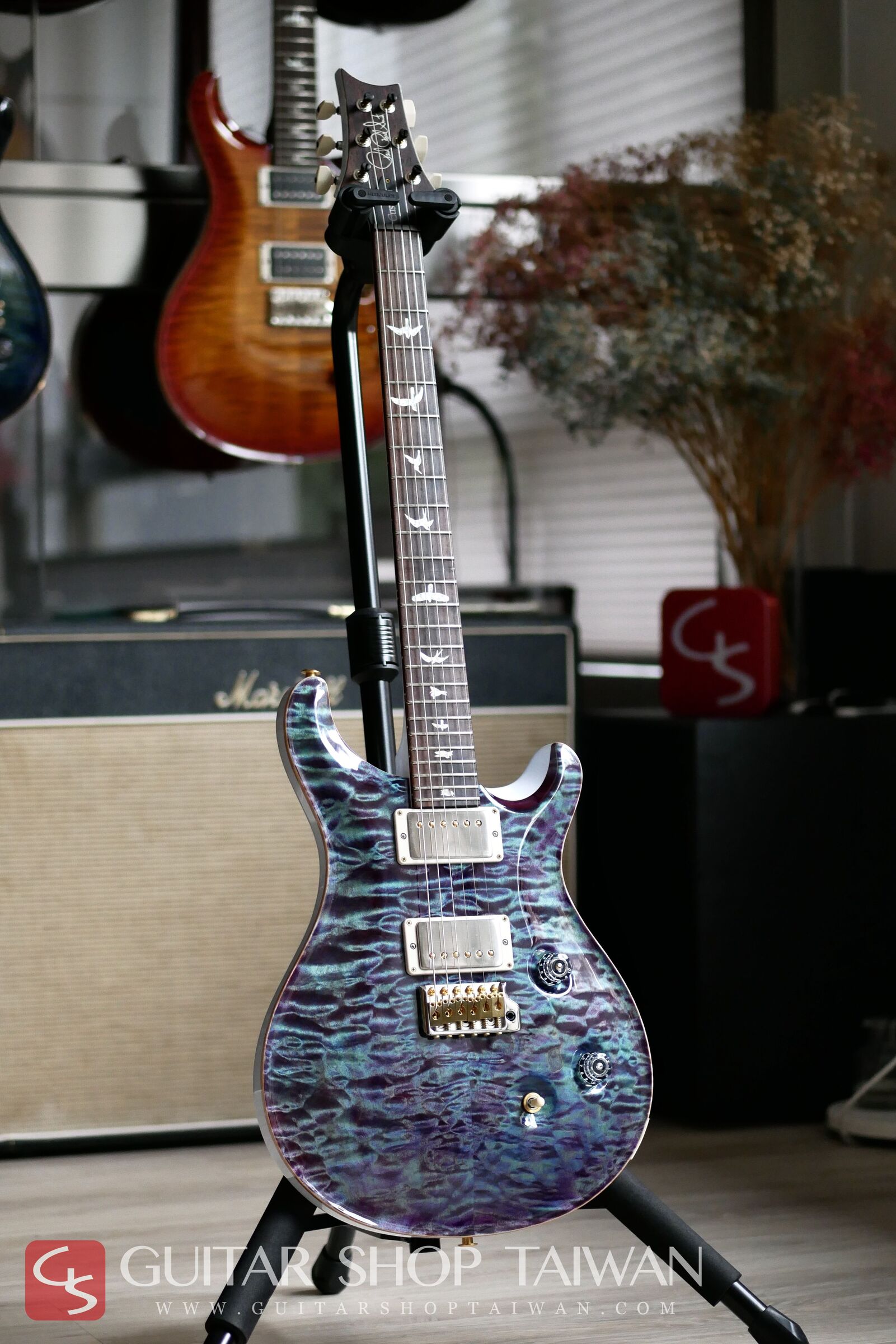Custom24是PRS一直以來最受歡迎的系列,不只音色上出眾,外觀也相當華麗,配色為市場上稀有的Violet,搭配少見的雲狀楓木,琴身背後選配全白色烤漆,相當特別。琴身為桃花心木,指板為巴西玫瑰木,琴頸規格為Pattern Thin Neck。原廠配置一組擁有全新TCI技術的PRS 85/15 Pickups拾音器,TCI系統能使高低頻各自擁有非常均衡、線性統一的出力,不會有傳統拾音器低頻混濁、高頻過尖的問題,也解決了傳統拾音器雙單線圈切換時造成瞬間輸出率落差問題,共五段音色,清甜顆粒感十足的單線圈音色到出力突出的雙線圈破音都能勝任,音色相當全面的一款PRS。