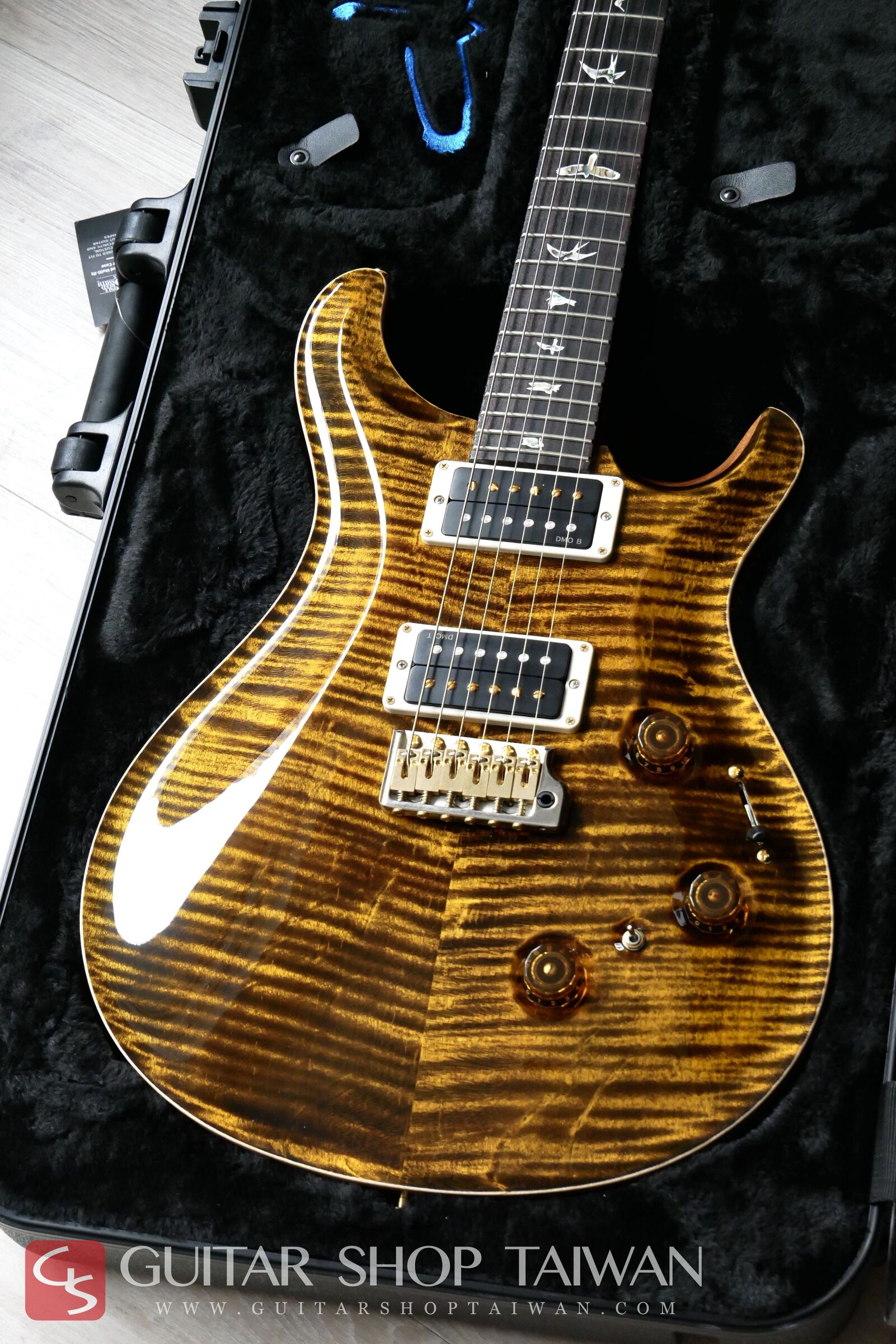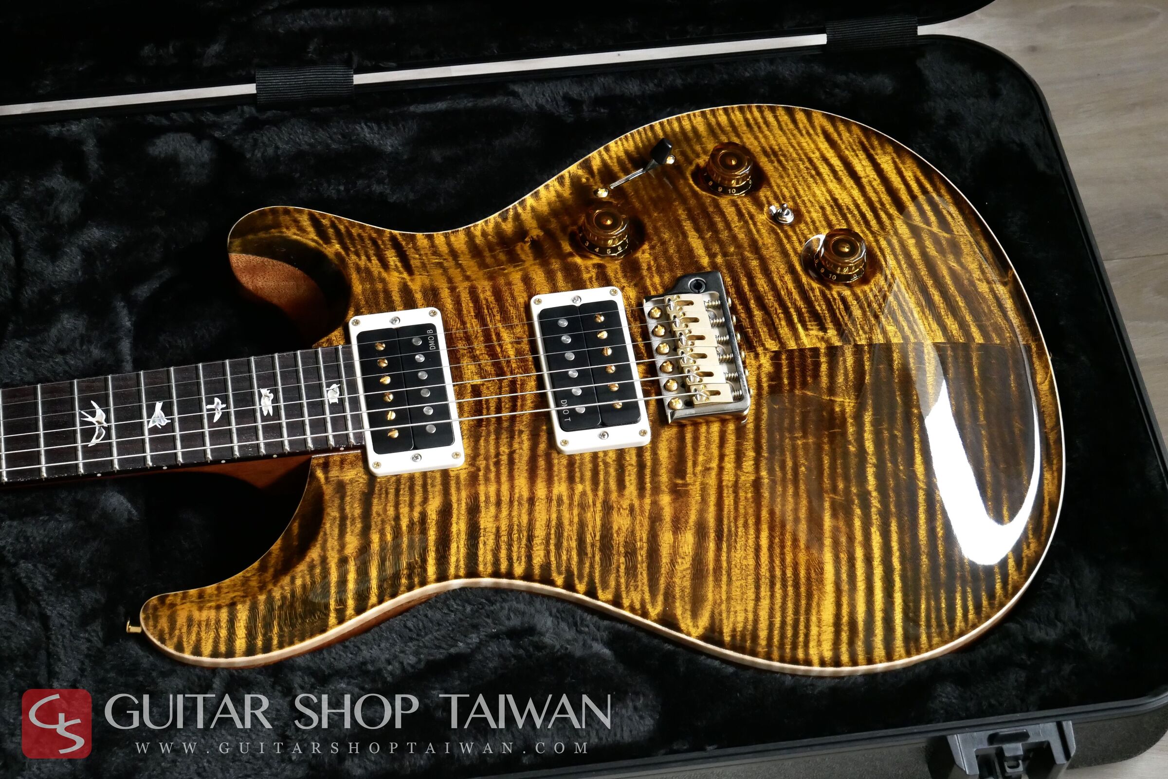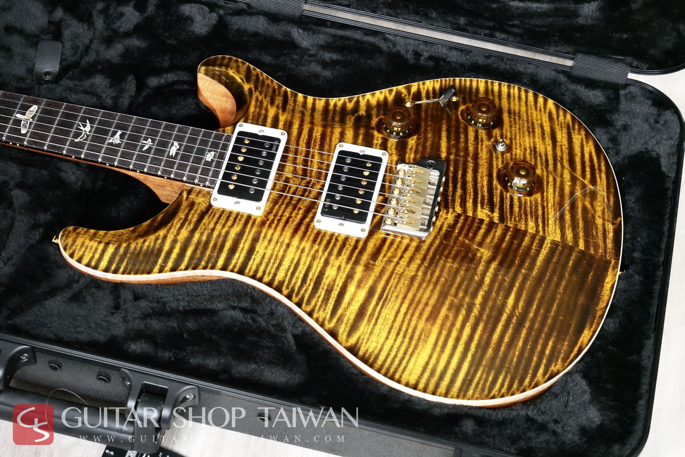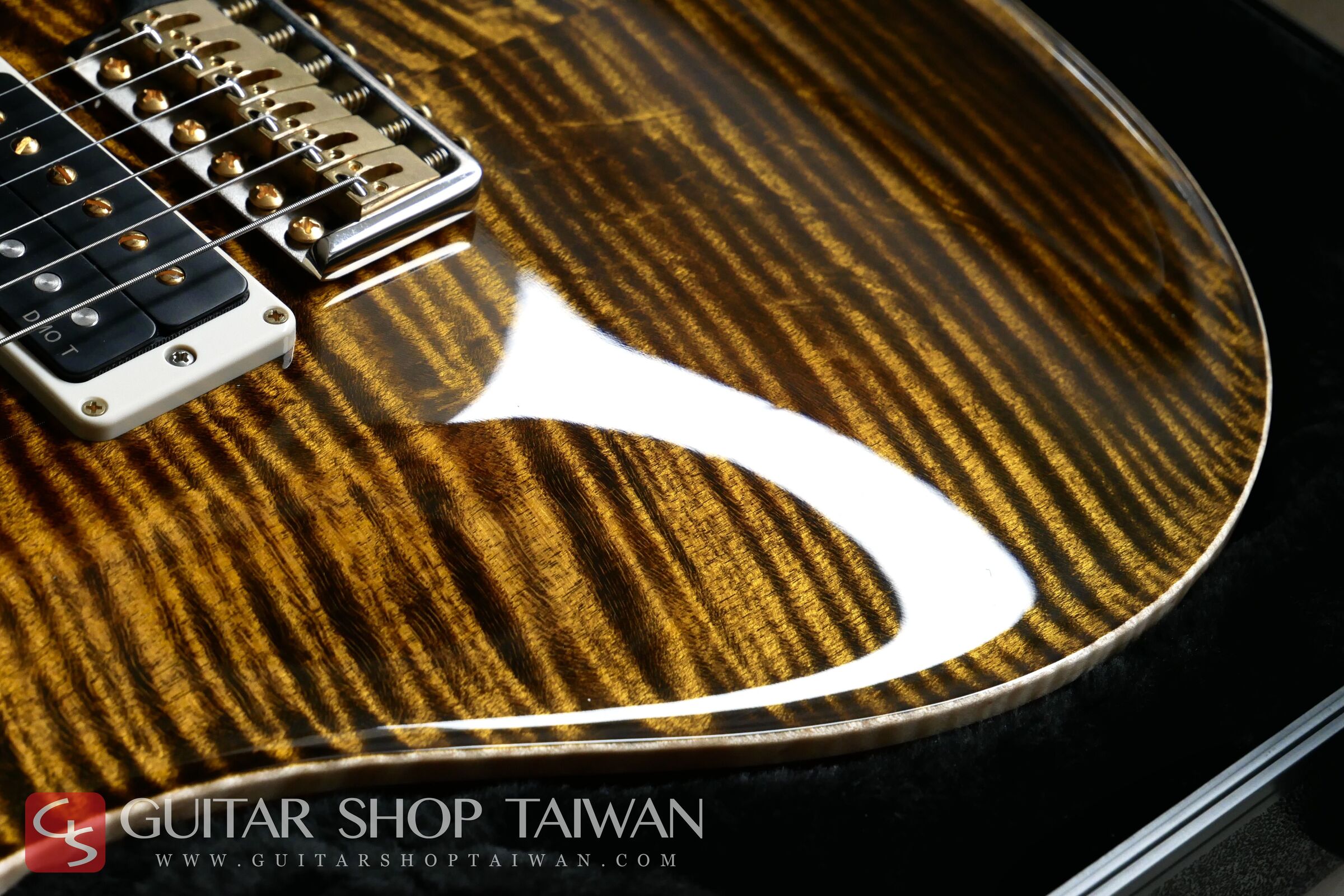 2025年製全新品,顏色為Yellow Tiger,搭配本公司嚴選的10Top虎紋楓木,非常漂亮。Custom是PRS一直以來最受歡迎的系列,不只音色上出眾,外觀也相當華麗,而這個版本為Custom24 Piezo,額外搭載了木吉他模擬系統。