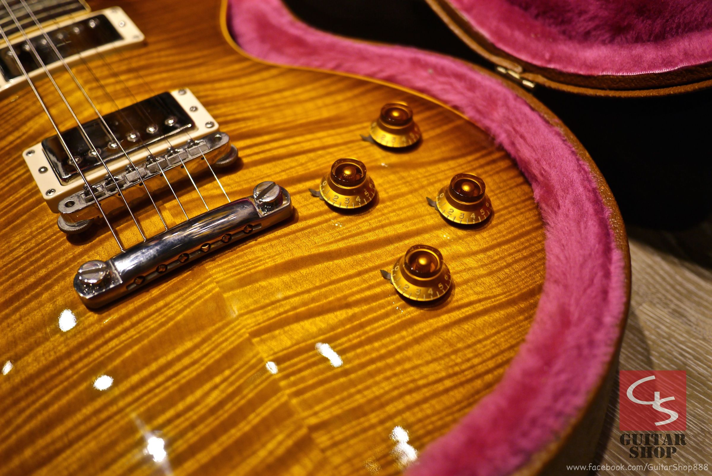 新貨入荷,嚴選紋路1992 Gibson Pre-Historic Reissue Iced Tea Burst with AAAAA Killer Top,5A級的Killer Top超級虎紋,收藏琴品項,整體狀況近新。售價NT$120,000。