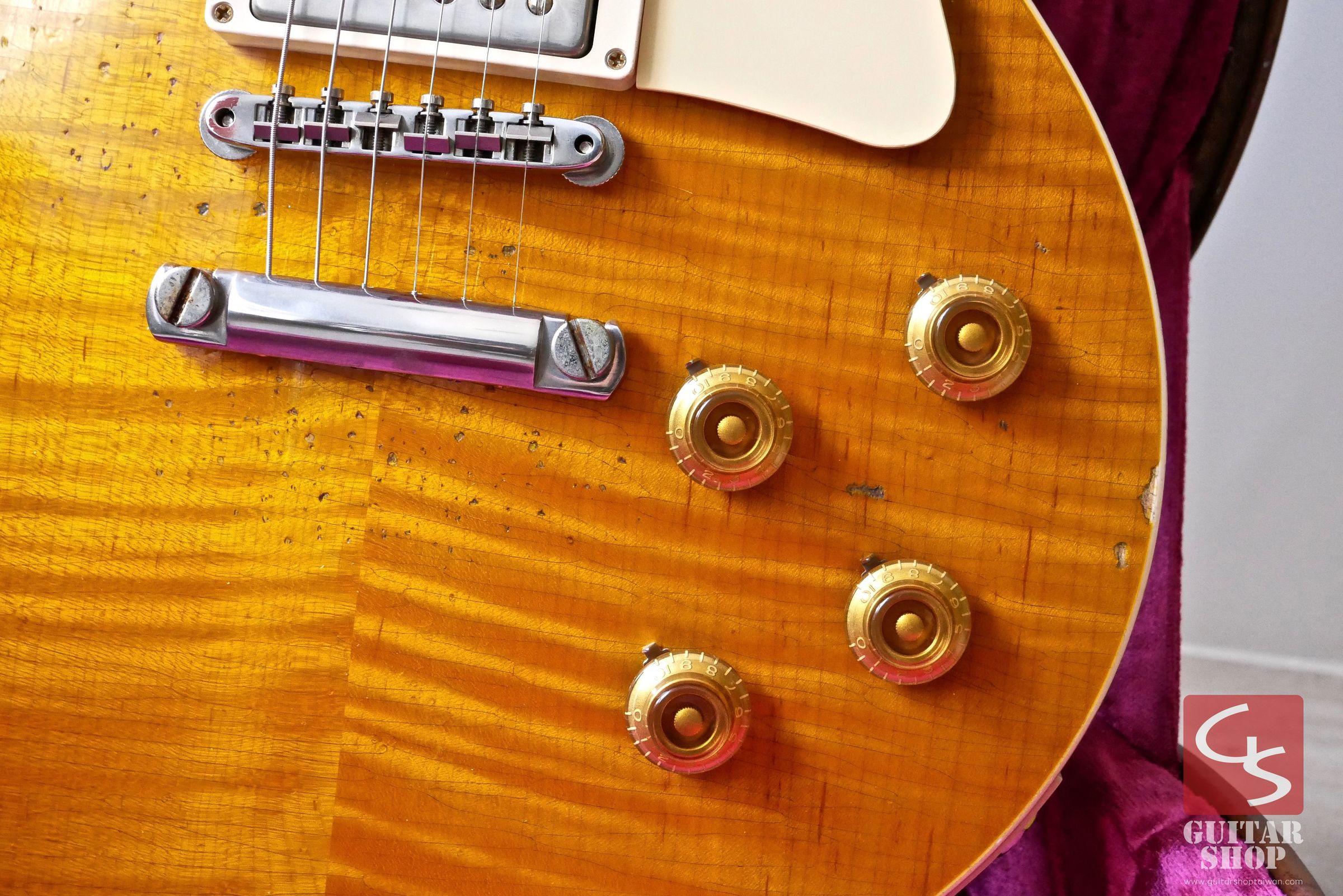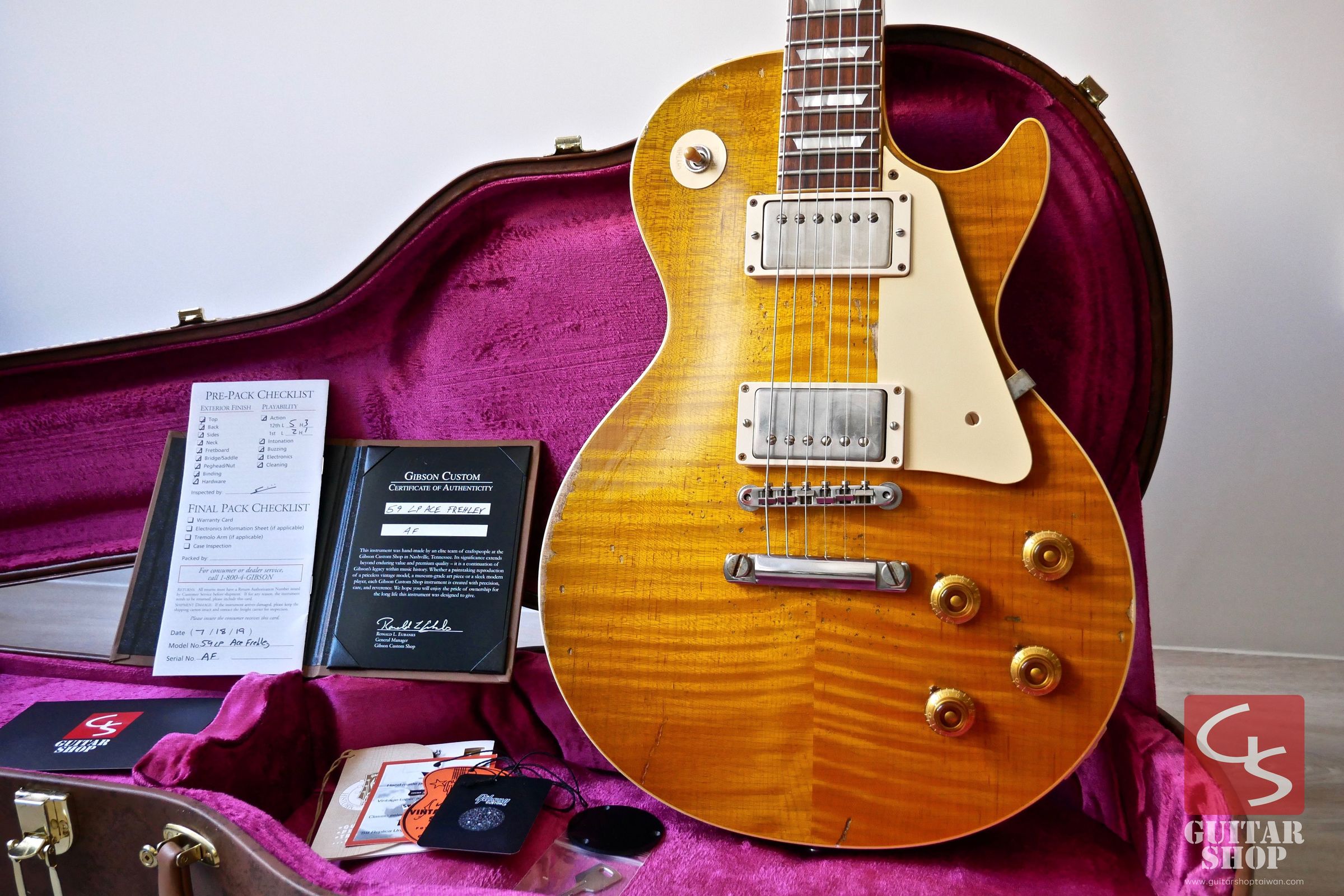 Beautiful Ace Frehley 1959 Les Paul Reissue. Aged&signed version are limited of 50 and unsigned are only limited of 18, were produced at special dealers. All aged version has true historic spec, It's looks vintage and sounds great! This is a very special version from Gibson Custom factory, which was kept in the factory and came out until this year. So the date is 2019 on the checklist.