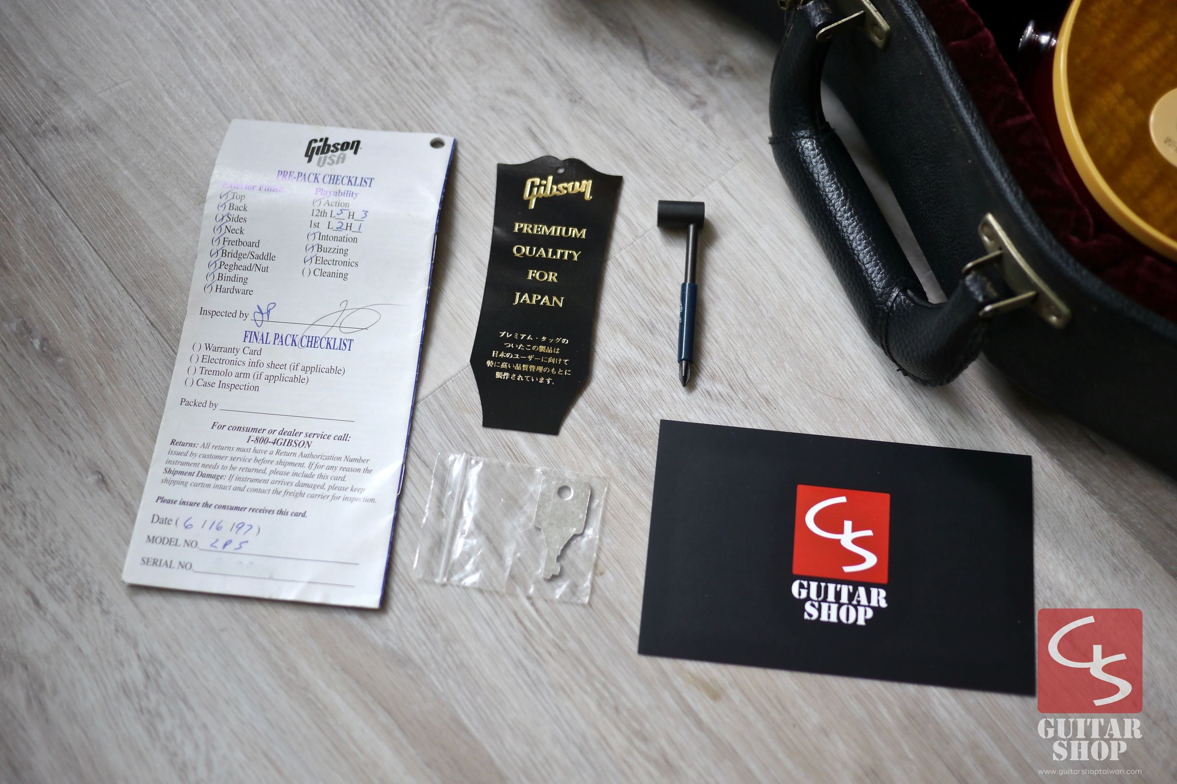 售價NT$119,000,附Gibson原廠Case、Checklist、Premium Quilty For Japan認證吊牌與Guitar Shop專屬保固卡,1997年的Reissue系列原廠無提供證書。本公司商品都經過嚴格檢驗與專業調整,一年保固、免費保養與完整的售後服務,安全有保障。歡迎刷卡、分期付款。