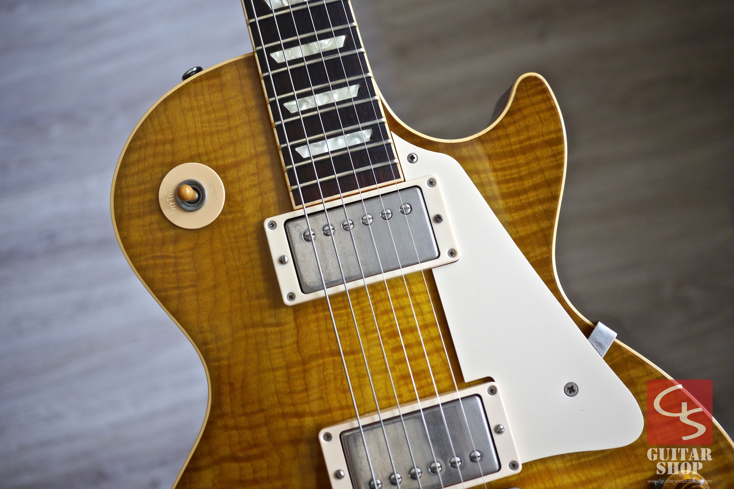 1997年YCS版本,經典且自然的Lemon Burst配色。YCS(Yamano Custom Shop)是Gibson在90年代為日本總代理山野樂器特別製作給日本的高品質版本,許多玩家認為YCS限定版的用料與品質比起當時美國發售的都來得更好,在歐美市場上相當受歡迎。桃花心木琴身、玫瑰木指版、'58 Neck Profile琴頸、57 Classic拾音器。整體九成新,正常使用痕跡,Fret約八成新,整體以二十二年的老琴來說算是保存得相當不錯。