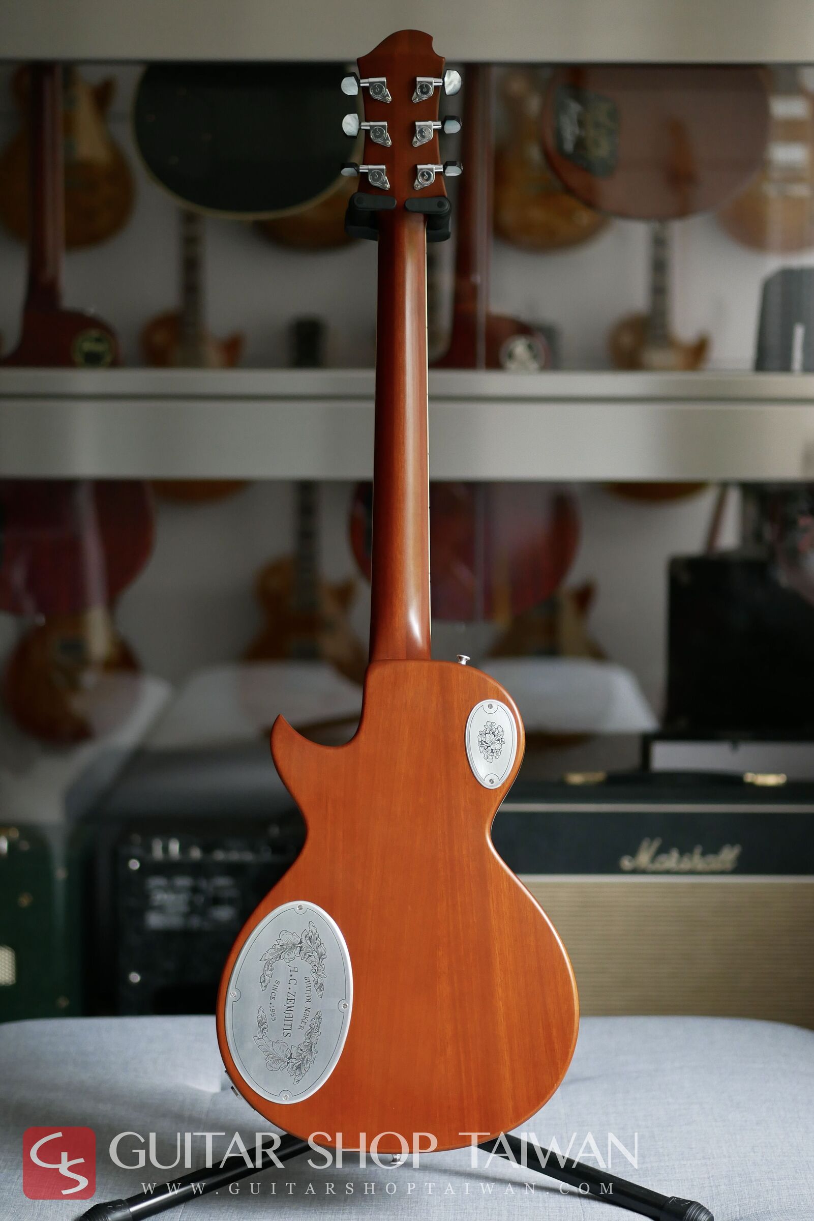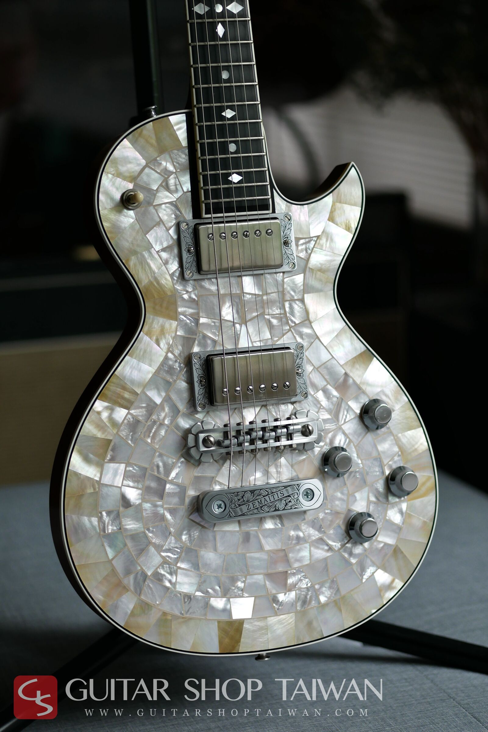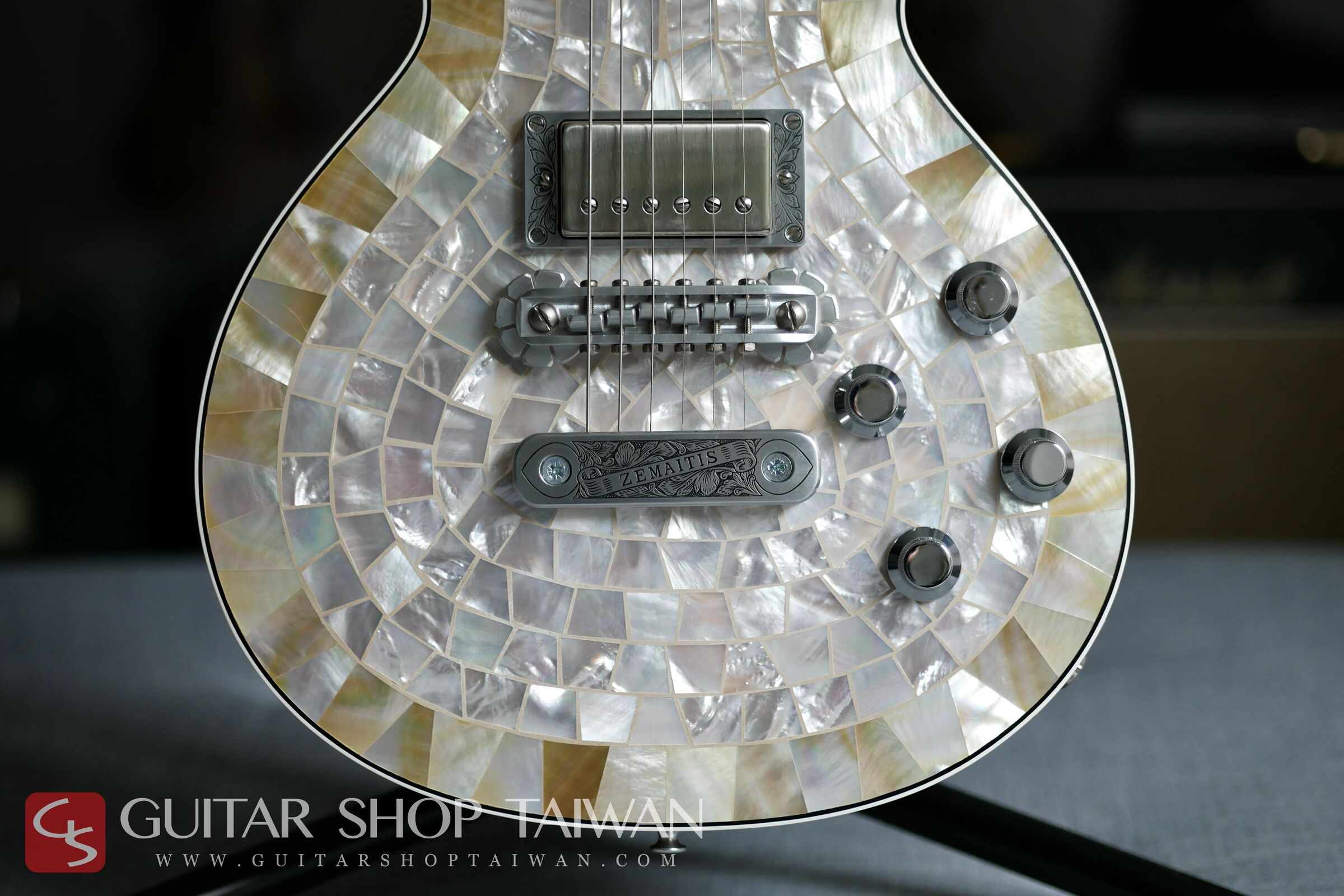 這是2000年時期日本製造的第一代Zemaitis,目前已全面停產,這是當時等級最高的型號,每一支都是完全手工製作的,琴面全採用天然的貝殼手工做鑲坎,外觀在眾多琴款中有著壓倒性的存在感,非常耀眼、華麗,包括Top上的貝殼鑲嵌,與現在新款的Zemaitis不同,當時採用了宏都拉斯玫瑰木與最高等級的黑檀木等奢華材料製作,而這時期的琴款也被稱作是最近接品牌創始人Tony Zemaitis的產品,除了選用最頂級的木料製作,琴身上配件大部分採用硬鋁材質來減輕重量與減少多餘的雜訊干擾,這樣的方式能讓音色更加清晰,對於延音也有極大的幫助。