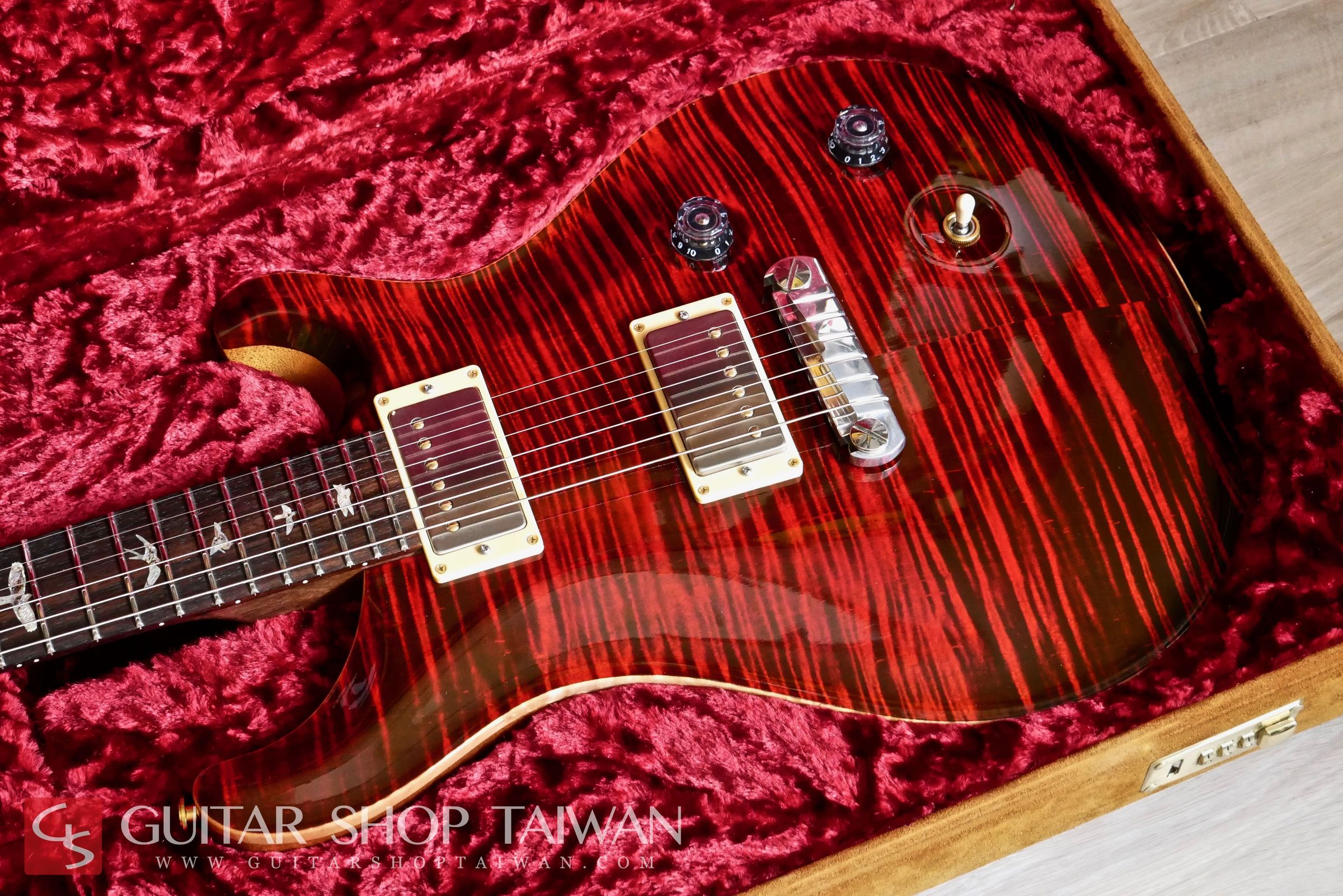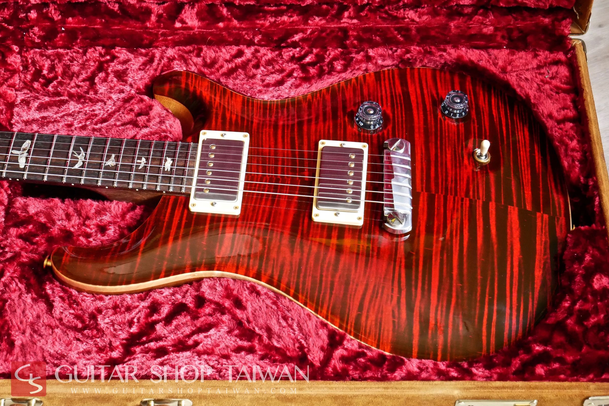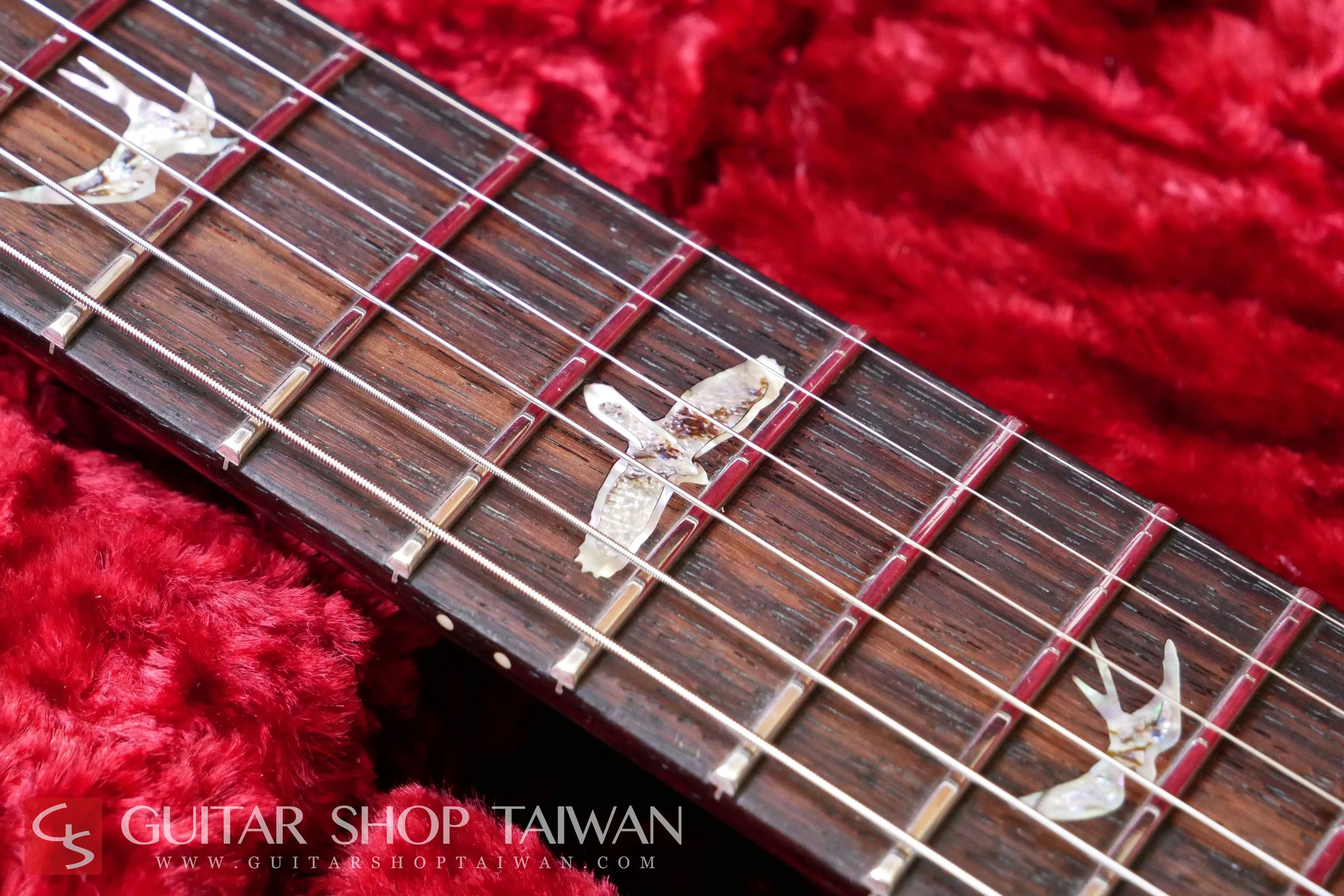 Modern Eagle是PRS生產線上評價非常高的頂級系列,結合了Private Stock系列與PRS累積多年琴款設計的優點,搭配嚴選5A等級的粗虎紋、彩色鮑貝鑲嵌的Bird Inlays、特有的Modern Eeagle Head Stock Inlay、麂皮Case等都顯現出Modern Eagle和一般PRS不同的華麗之處,有別於一代消光漆面的設計,二代採用了High Gloss Nitro Finish的亮面漆處理。25”scale的Neck尺寸介於Gibson與Fender之間,加上無上漆的印度Dalbergia Rosewood Neck讓彈奏更加舒適、順手。拾音器為PRS原廠57/08,這組拾音器是PRS一系列拾音器中評價非常高的一款,從清甜顆粒感十足的單線圈音色到厚實的經典PAF復古經典的破音都能勝任,音色除了飽滿以外也保有清晰度。收藏品項,無傷痕,整體近新,目前市場上要找到狀況這麼新的Modern Eagle是相當少見的,全新品當年約台幣二十四萬,目前普通的Custom售價已經高達台幣十四萬,考慮購買全新的Custom不妨可考慮等級更高、更完美的Modern Eagle系列。Guitar Shop Taiwan團隊更嚴格挑選的品質,更划算的價格,有興趣的買家把握機會。