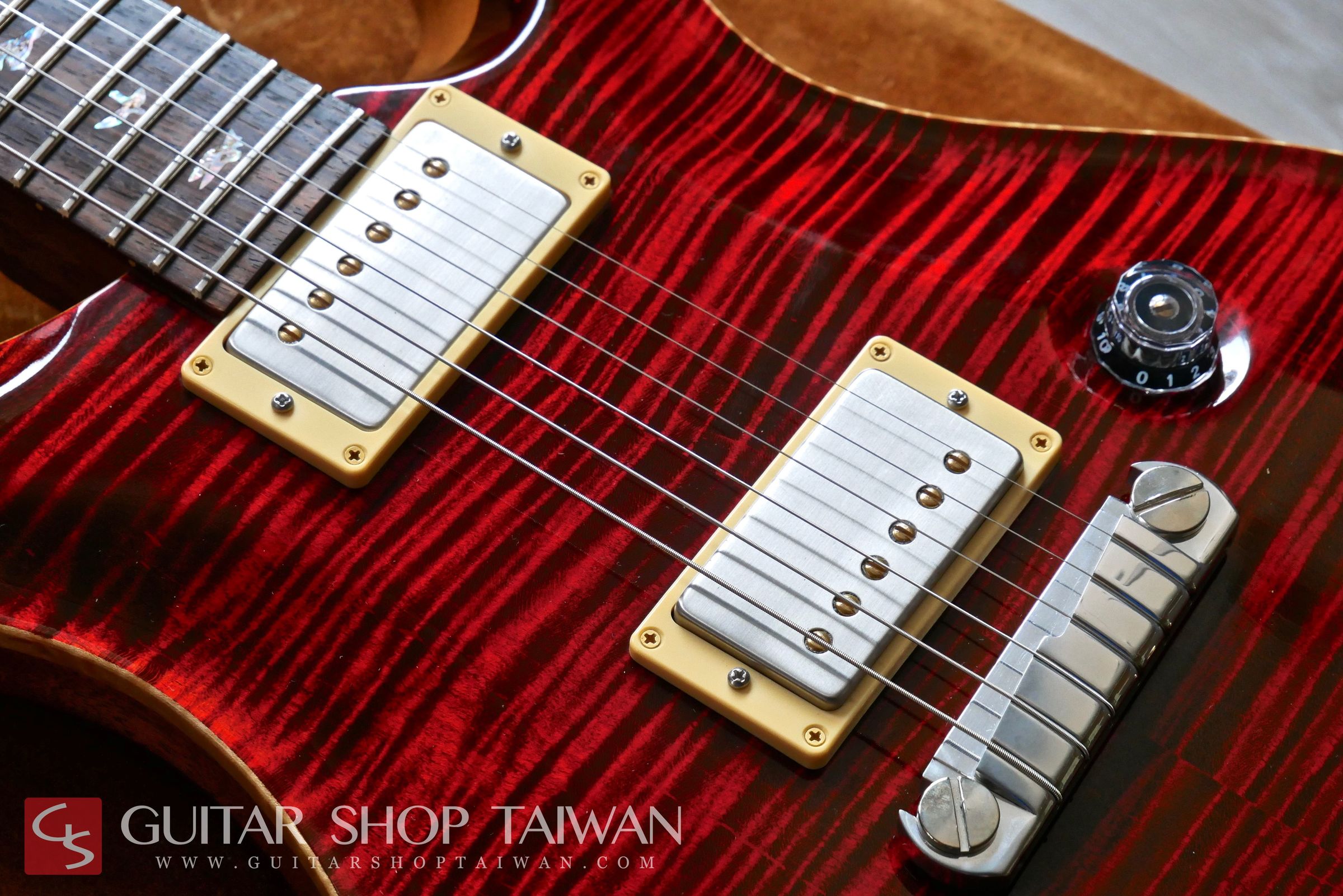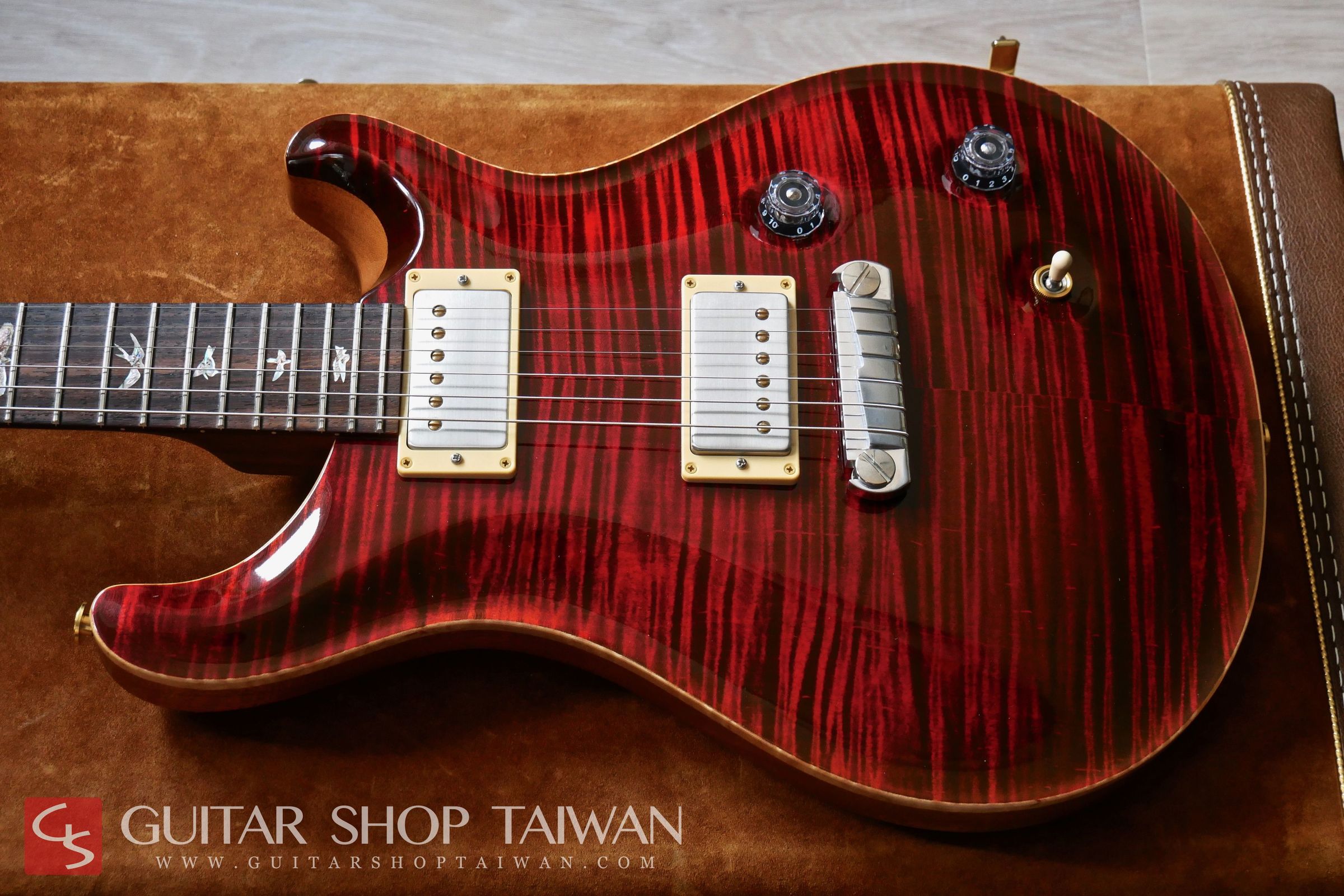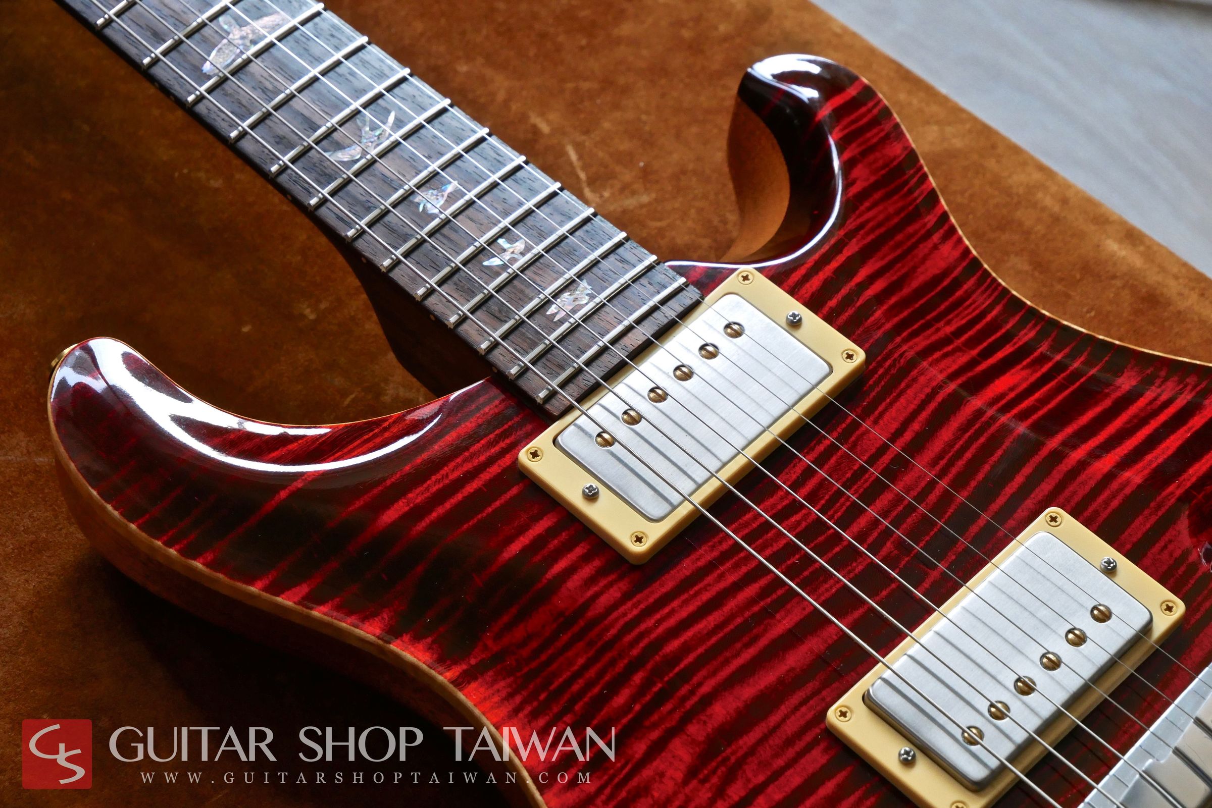 Modern Eagle是PRS生產線上評價非常高的頂級系列,結合了Private Stock系列與PRS累積多年琴款設計的優點,搭配嚴選5A等級的粗虎紋、彩色鮑貝鑲嵌的Bird Inlays、特有的Modern Eeagle Head Stock Inlay、麂皮Case等都顯現出Modern Eagle和一般PRS不同的華麗之處,有別於一代消光漆面的設計,二代採用了High Gloss Nitro Finish的亮面漆處理。25”scale的Neck尺寸介於Gibson與Fender之間,加上無上漆的印度Dalbergia Rosewood Neck讓彈奏更加舒適、順手。拾音器為PRS原廠57/08,這組拾音器是PRS一系列拾音器中評價非常高的一款,從清甜顆粒感十足的單線圈音色到厚實的經典PAF復古經典的破音都能勝任,音色除了飽滿以外也保有清晰度。收藏品項,無傷痕,整體近新,目前市場上要找到狀況這麼新的Modern Eagle是相當少見的,全新品當年約台幣二十四萬,目前普通的Custom售價已經高達台幣十四萬,考慮購買全新的Custom不妨可考慮等級更高、更完美的Modern Eagle系列。Guitar Shop Taiwan團隊更嚴格挑選的品質,更划算的價格,有興趣的買家把握機會。