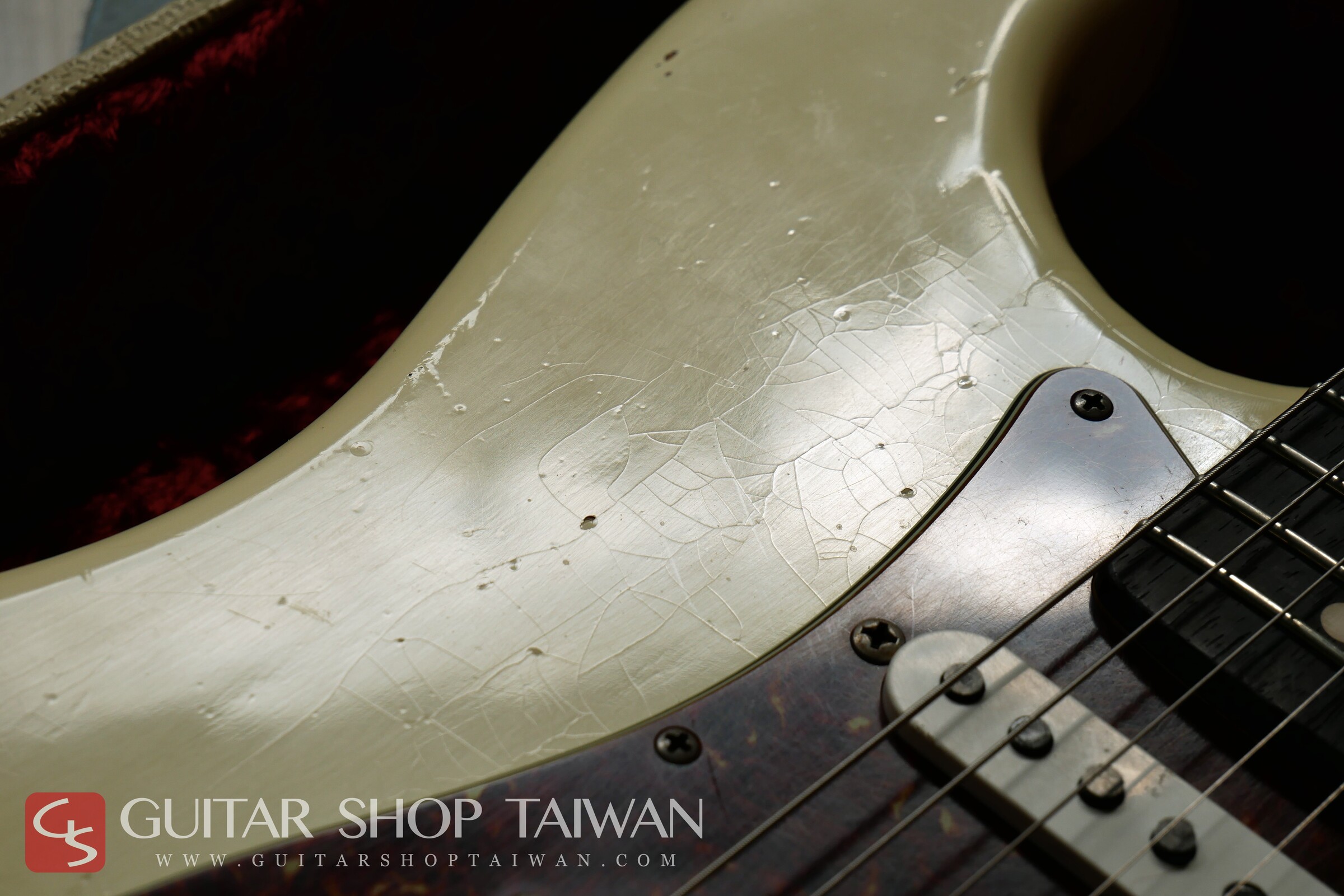 這支吉他基於1960年早期的Stratocaster並進行了些微優化設計,旨在結合極致的復古音色與氛圍,但同時保持了更好的手感與演奏體驗。經典的Vintage White搭配Paul Waller的Journeyman Relic舊化處理,原廠配置Custom Mid 60's C型Quartersawn Maple Neck楓木琴頸與特選的Dark Rosewood玫瑰木指板,琴頸厚薄適中,彈奏起來非常舒適。Turss Rod於琴頭前方開孔,無需拆卸琴頸及可調整。拾音器配置為限定版手繞的Custom Shop Hand-Wound Master Design LTD Pickups,除了經典的Stratocaster音色以外,此琴的另一個亮點在音量弦鈕上的S1隱藏開關,Push Button Switch for Neck加上Bridge Pickup Combination可單獨組合前後段拾音器,創造出Jimmy Page或Ritchie Blackmore的特殊音色風格,甚至帶有Telecaster的音色。