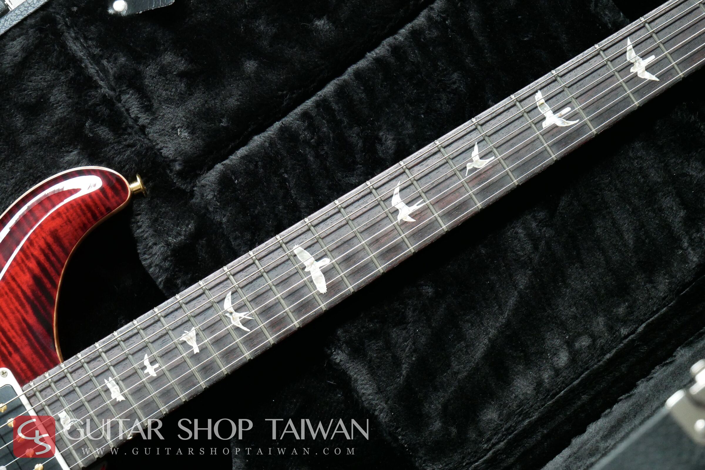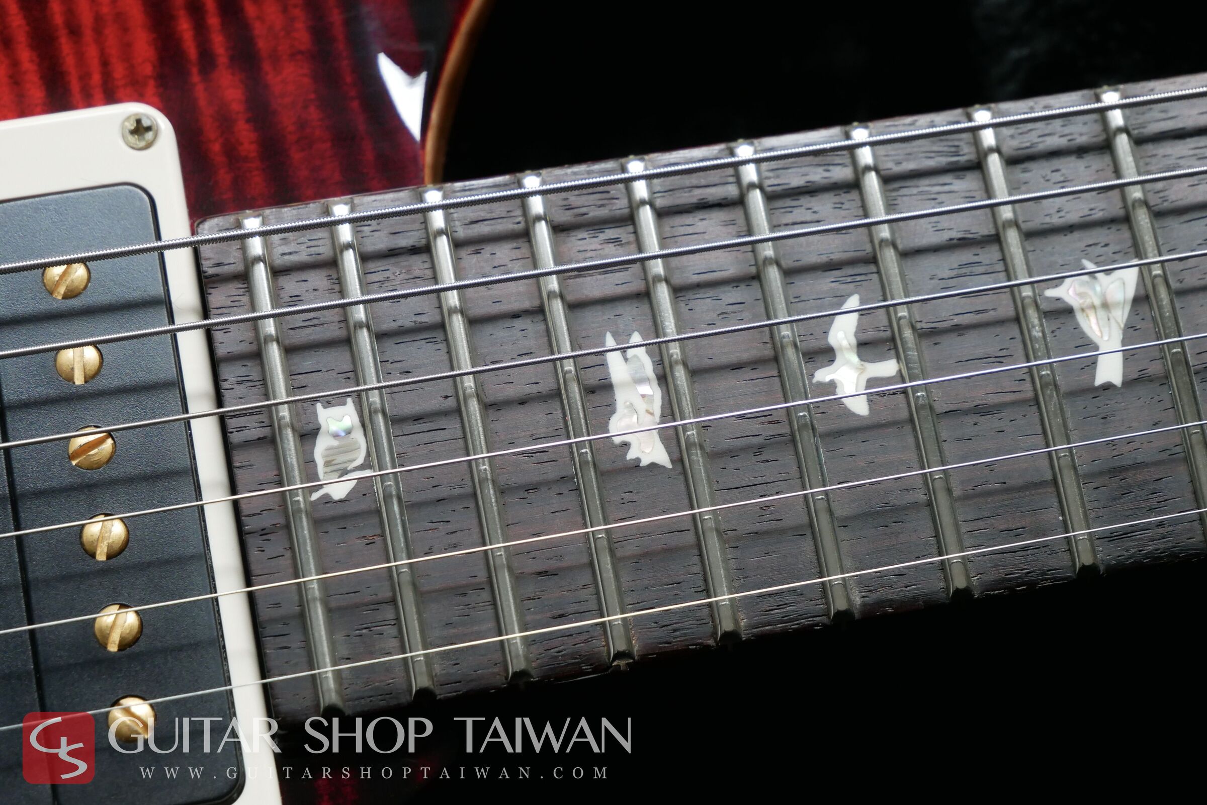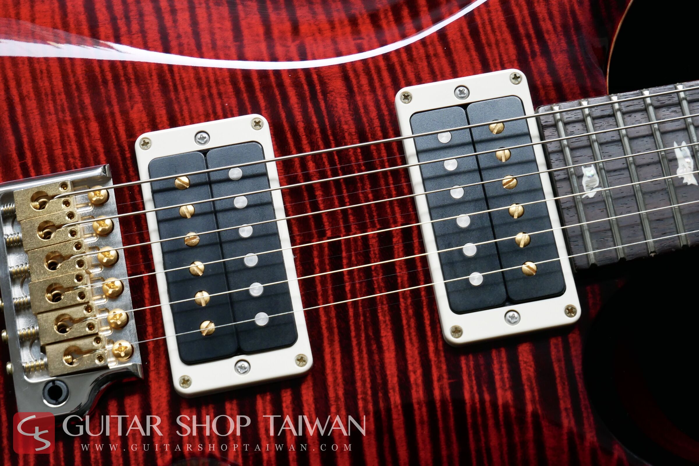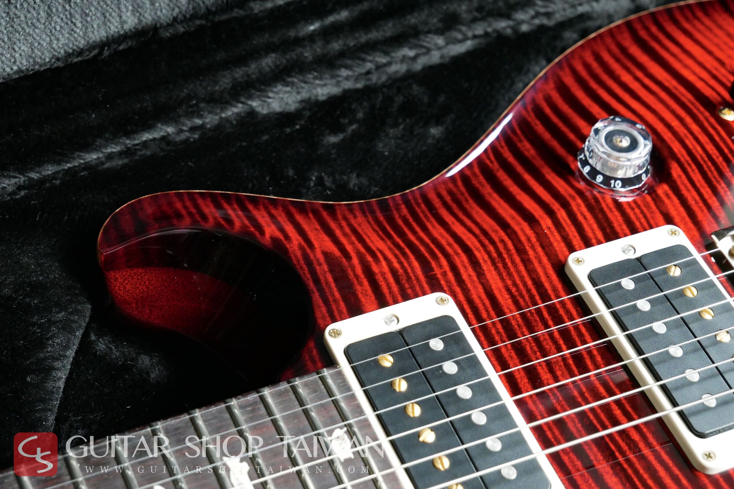 2023年製近全新展示琴。顏色為Fire Red Burst,搭配本公司嚴選的10Top超級虎紋楓木,非常狂野。Custom是PRS一直以來最受歡迎的系列,不只音色上出眾,外觀也相當華麗。琴身為桃花心木,琴頸為Pattern Thin Neck,指板為玫瑰木。原廠配置一組擁有全新TCI技術的PRS 85/15 Pickups拾音器,TCI系統能使高低頻各自擁有非常均衡、線性統一的出力,不會有傳統拾音器低頻混濁、高頻過尖的問題,也解決了傳統拾音器雙單線圈切換時造成的瞬間輸出率落差問題,共五段音色,清甜顆粒感十足的單線圈音色到出力突出的雙線圈破音都能勝任,音色相當全面的一款PRS。