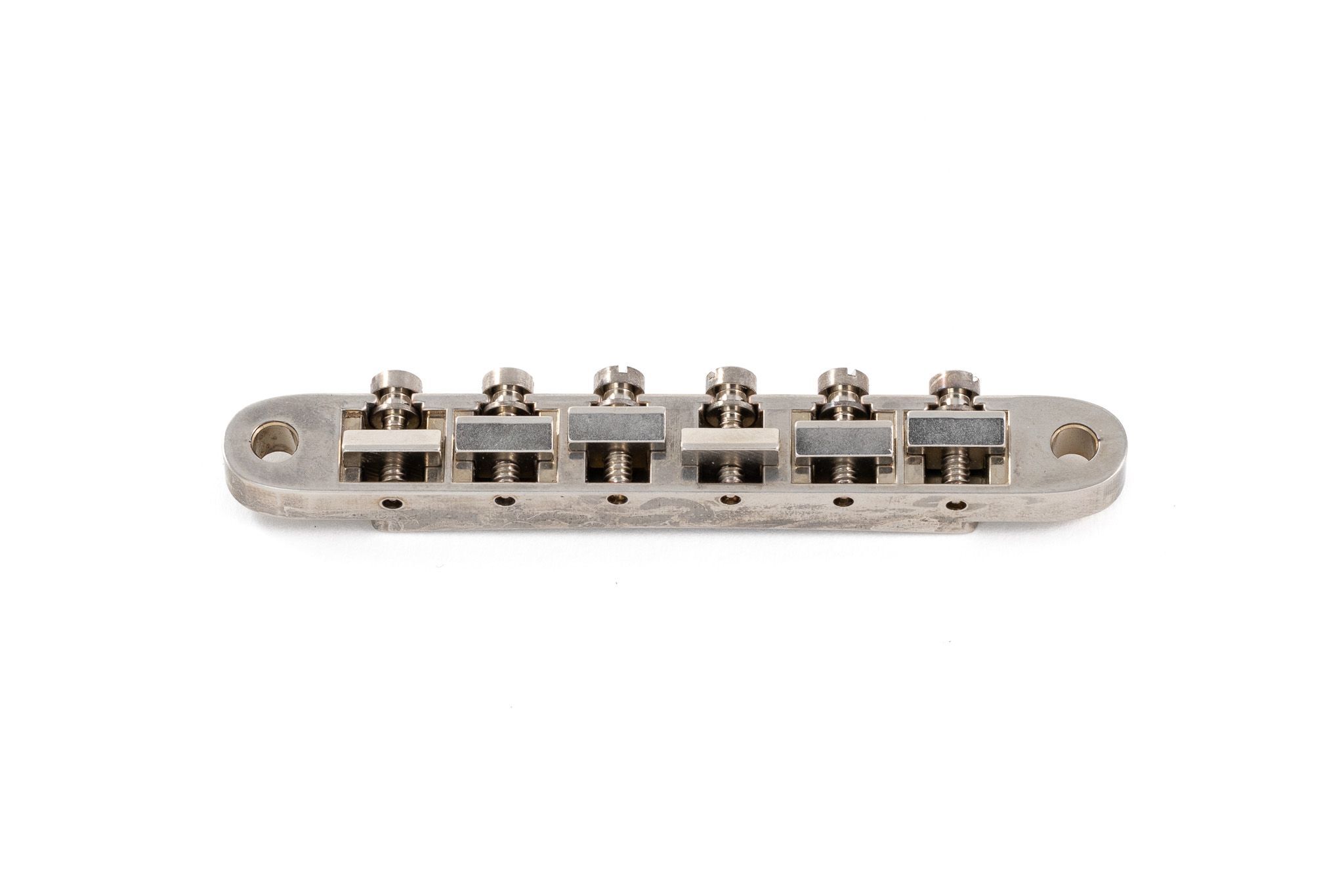The St.Helens Adjustable Bridge is made from our unique alloys, analyzed from original parts to meet vintage correct specs regarding composition and hardness to make up for a truly original and authentic sounding hardware.