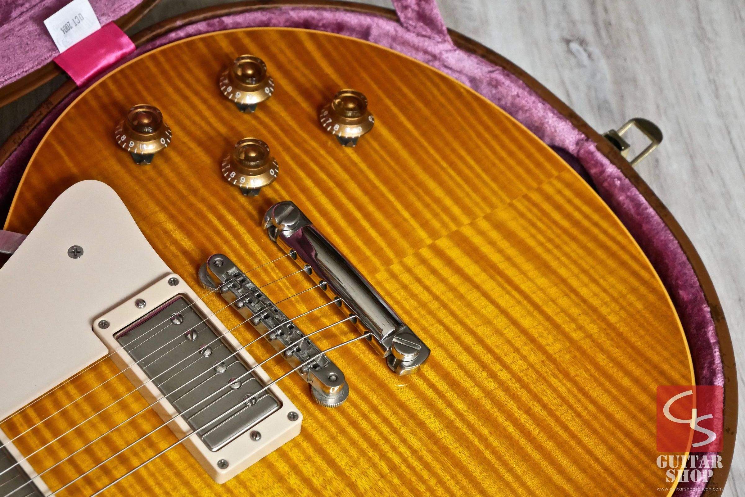 2004 Gibson Custom Shop 1959 Reissue R9 Lemon Burst with AAA Top. It has the Madagascar rosewood fingerboard, It's the original gibson '57 classic pickups and all original parts. Guitar is in 9.5/10 as excellent condition, with very little dings on the back of body but looks clean and like new, details in the photos.