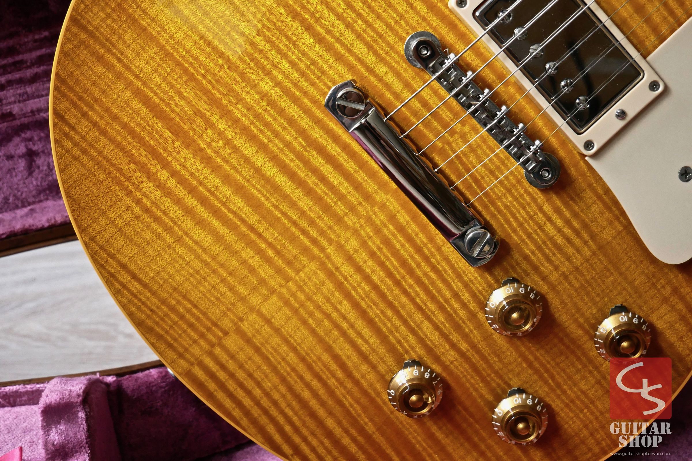 2004年製,經典的Lemon Burst配色加上3A的漂亮虎紋。指板與現今的R9不同,當年採用更接近巴西玫瑰木的馬達加斯加玫瑰木,木紋非常漂亮。琴身為桃花心木,琴頸為'59 Neck Profile。全原廠無改,原廠配置一組早期的57 Classic拾音器。除了照片上相當不明顯的漆面小敲痕以外,其餘近全新,十六年的老琴,相當難得的狀況,Fret也幾乎沒有磨損痕跡。目前全新的R9售價超過台幣二十萬,狀況好又漂亮的老琴絕對是最佳選擇,玩家們把握收藏機會。
