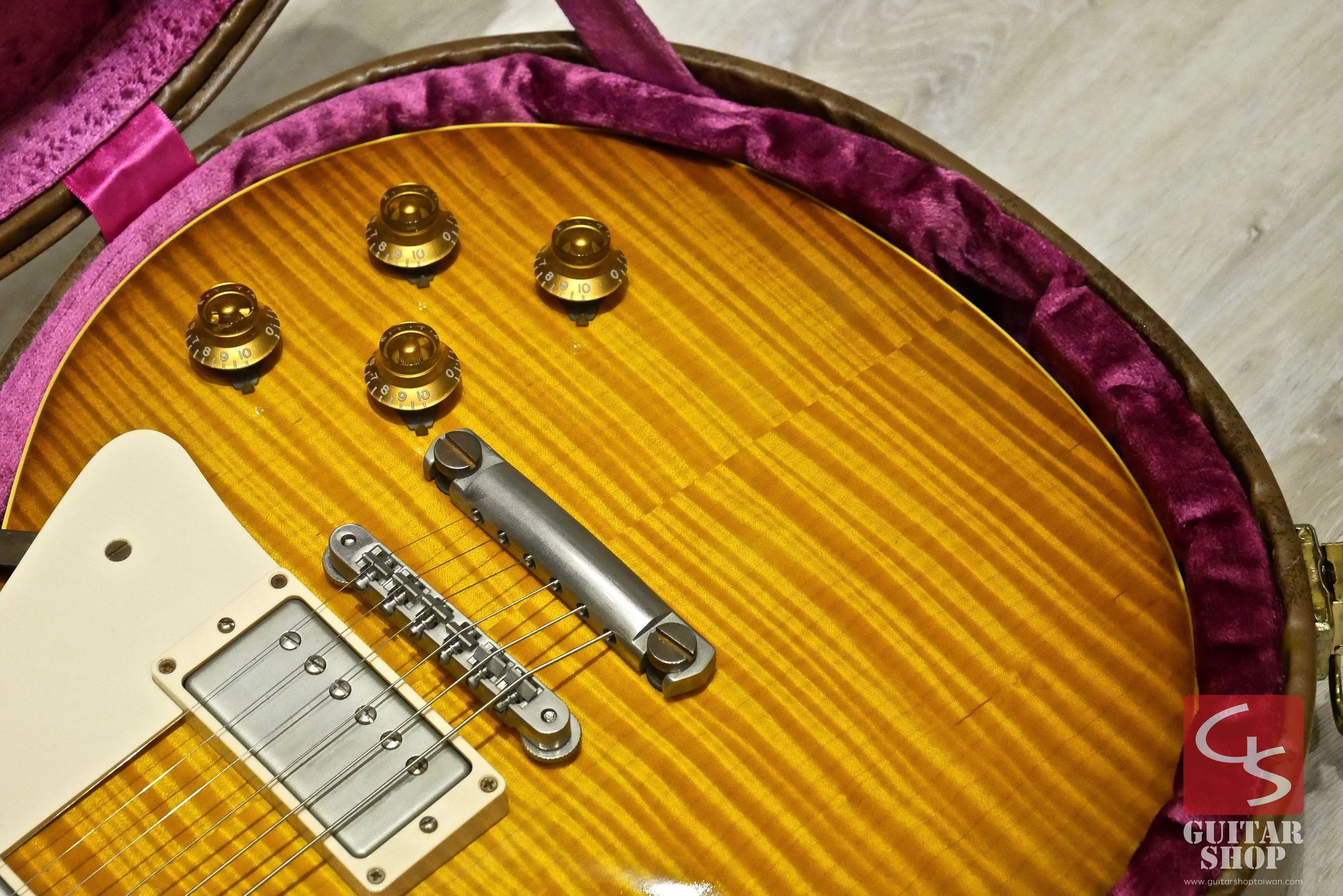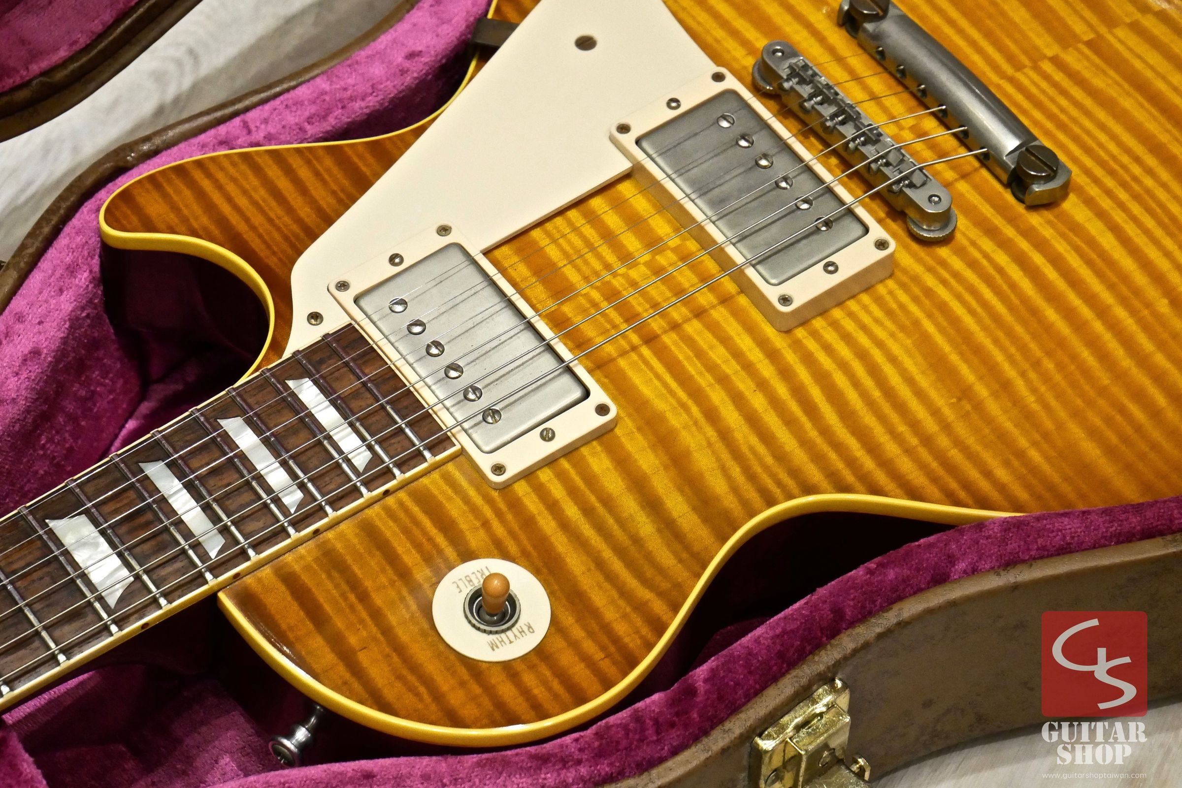 全球限量100支,Gibson Custom Shop於2013年推出的Les Paul 1959 Reissue二十週年限定版,紀念Custom Shop於1993年創廠發表R9至2013年共二十年的時間。製琴木料由Custom Shop Historic部門經理Edwin Wilson與傳奇技師Tom Murphy特選,琴面採用5A的Killer Top紋路,再由Tom Murphy親自上色,由Tom Murphy上色的色漆漸層質感和一般量產的版本大不相同,質感非常好非常漂亮且耐看。琴身為桃花心木,琴頸為'59 Neck Profile,原廠配置一組複製50s PAF的Custom Bucker Pickups拾音器、漆面與零件階為VOS處理。證書為大本相冊樣式的手繪特別版,這是唯一在這款二十週年紀念版才有的特別證書,琴盒簽名為Edwin Wilson與Tom Murphy。此外原廠也附贈了白手套與二十週年紀念版的Switchplate Cover。整體九成五新,琴背有幾道不明顯的輕微使用痕跡,其餘近全新。近年來由Tom Murphy製作的Burst/Aged全新售價都要三十萬台幣起跳,限量100支的二十週年紀念版保值性與收藏價值更高,市面上相當稀有,當年全新品售價約為台幣二十三萬,有興趣的玩家們把握機會。