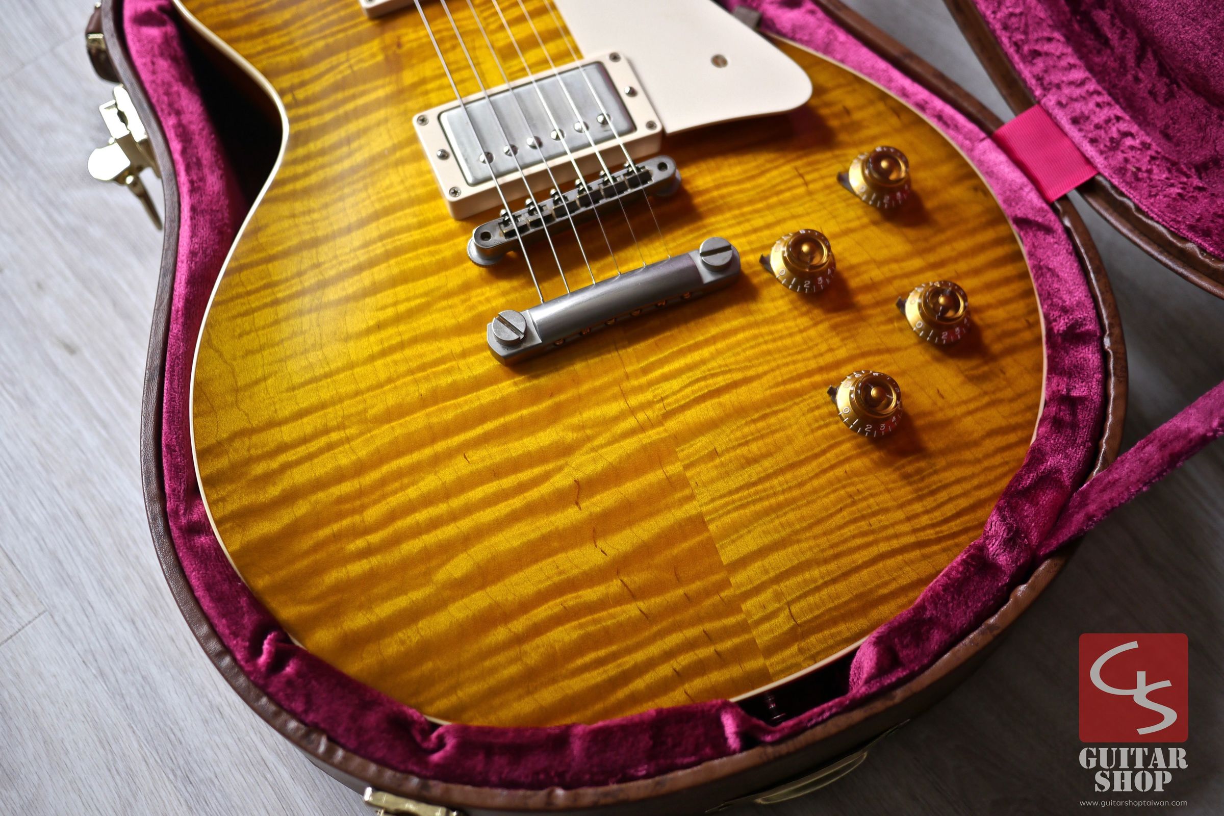 2014 Gibson Custom Shop 1959 Reissue R9 "Hand Selected" Primary Burst VOS with True Historic spec. Hand Select Japan limited edition. Hand selected solid body, carved figured maple top, hot hide-glue fit, long stud insert, historic truss rod assembly no tubing, aniline dye and new color fingerboard & body binding, all in efforts of creating the most period-correct Les Paul to date.