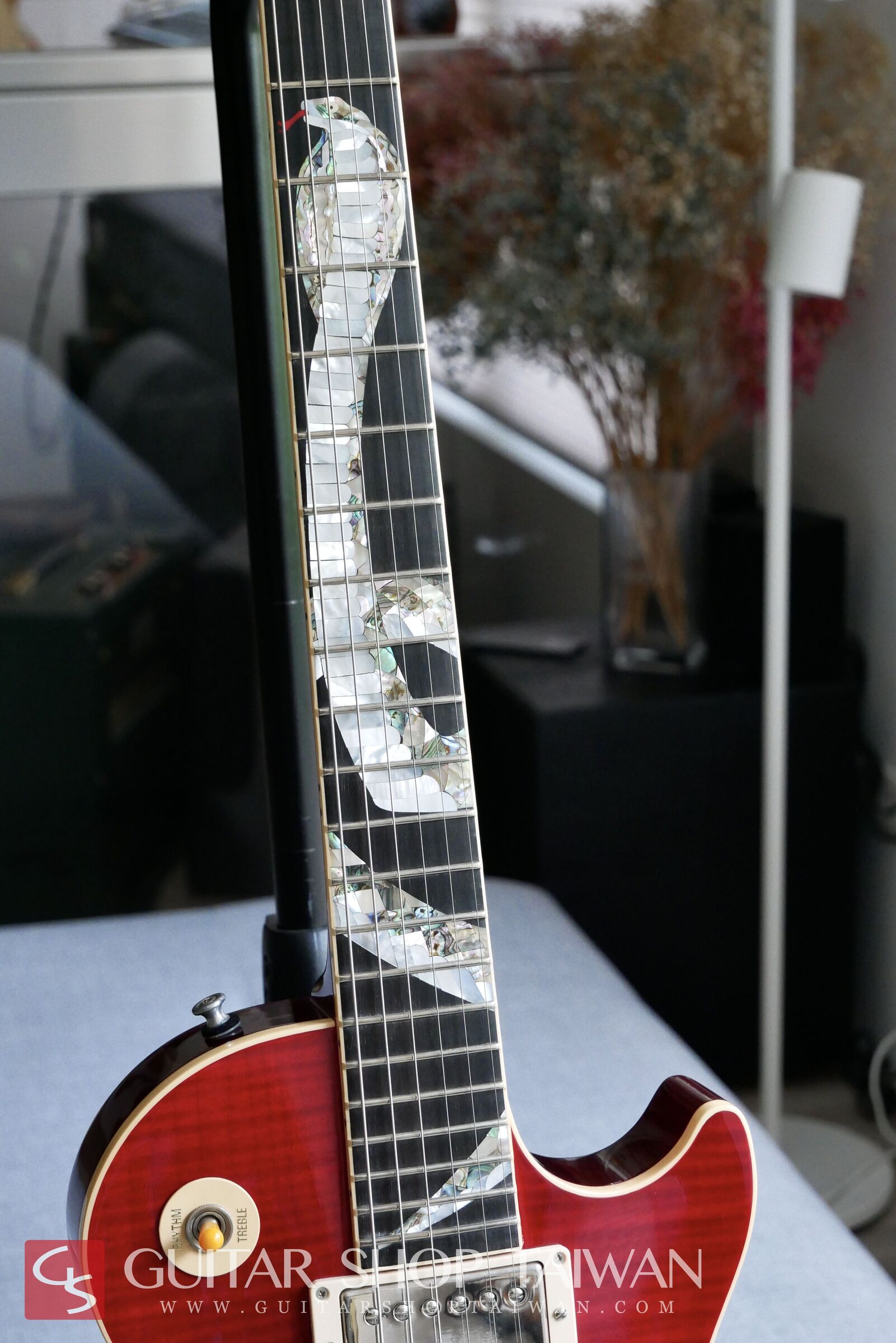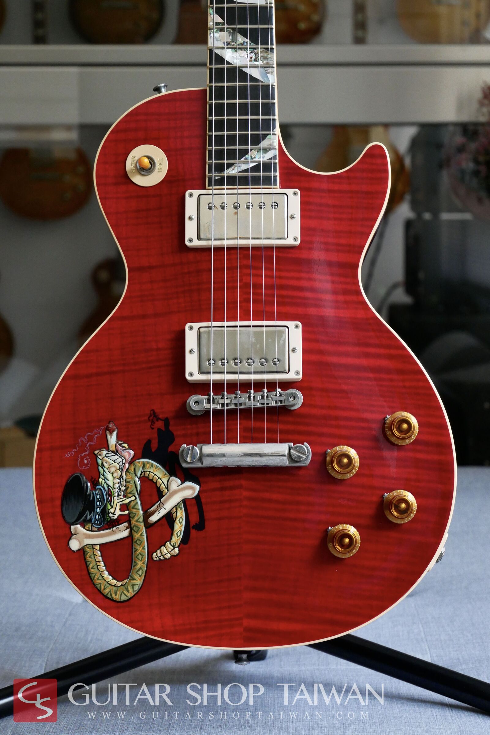 The top features hand-carved and painted "Snakepit," Slash's personal emblem. The fretboard is adorned with a cobra inlay made of seashells, representing its aggressive nature. This was the only time Gibson incorporated such elaborate craftsmanship in a production model, making it exceptionally ornate. Well-preserved Snakepit guitars are currently valued at a minimum of approximately US$100,000, and they remain the rarest and most collectible among Slash's Signature models.