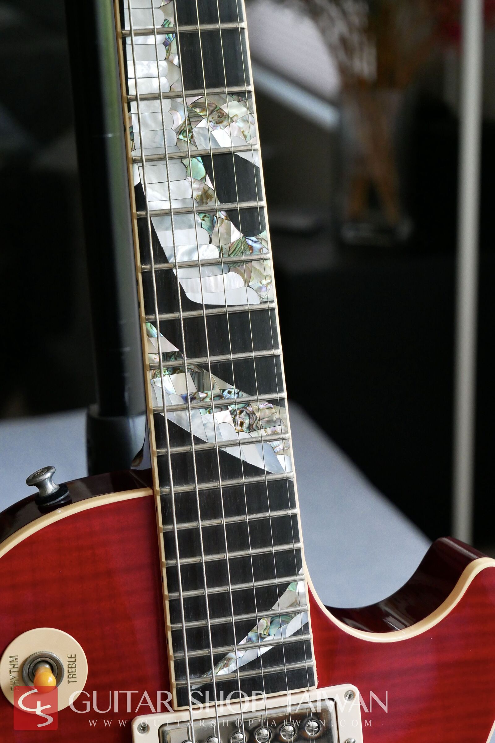 In 1996, Slash collaborated with Gibson to create this Snakepit guitar based on his own vision. Its distinctive and unique appearance garnered significant attention after Slash's collaboration with Michael Jackson during a concert. This was also Slash's first commercially produced guitar, meticulously handcrafted and inlaid with seashells by the technician T.C. Harrison. The official statement indicated a limited production of 100 units, but due to the intricate manufacturing process, fewer than 70 guitars were ultimately produced. Slash acquired four Snakepit guitars from Gibson in 1996/1997, but three of them were stolen in 1998. Currently, Slash only possesses one Snakepit guitar, which is also one of his most cherished instruments.