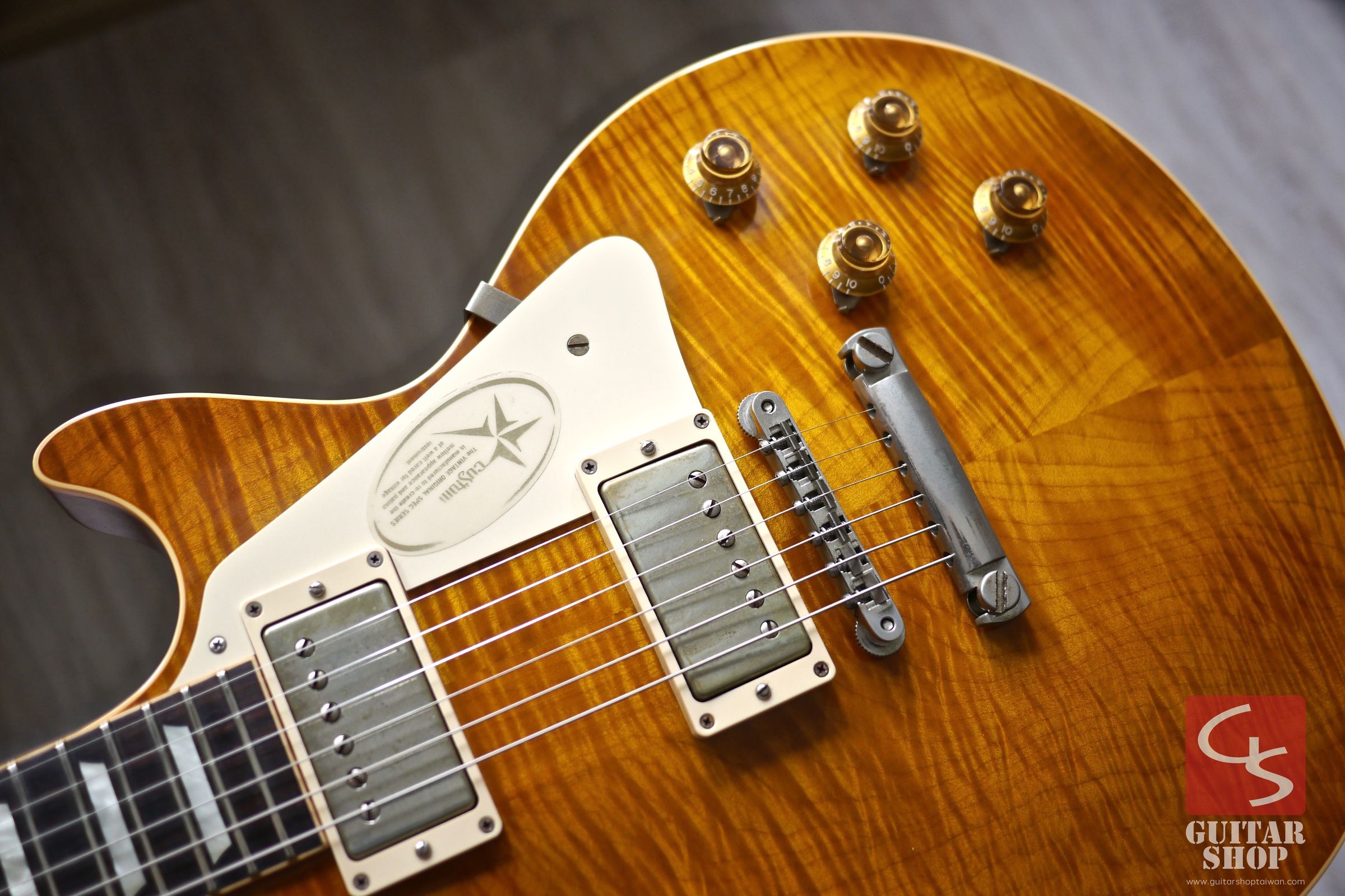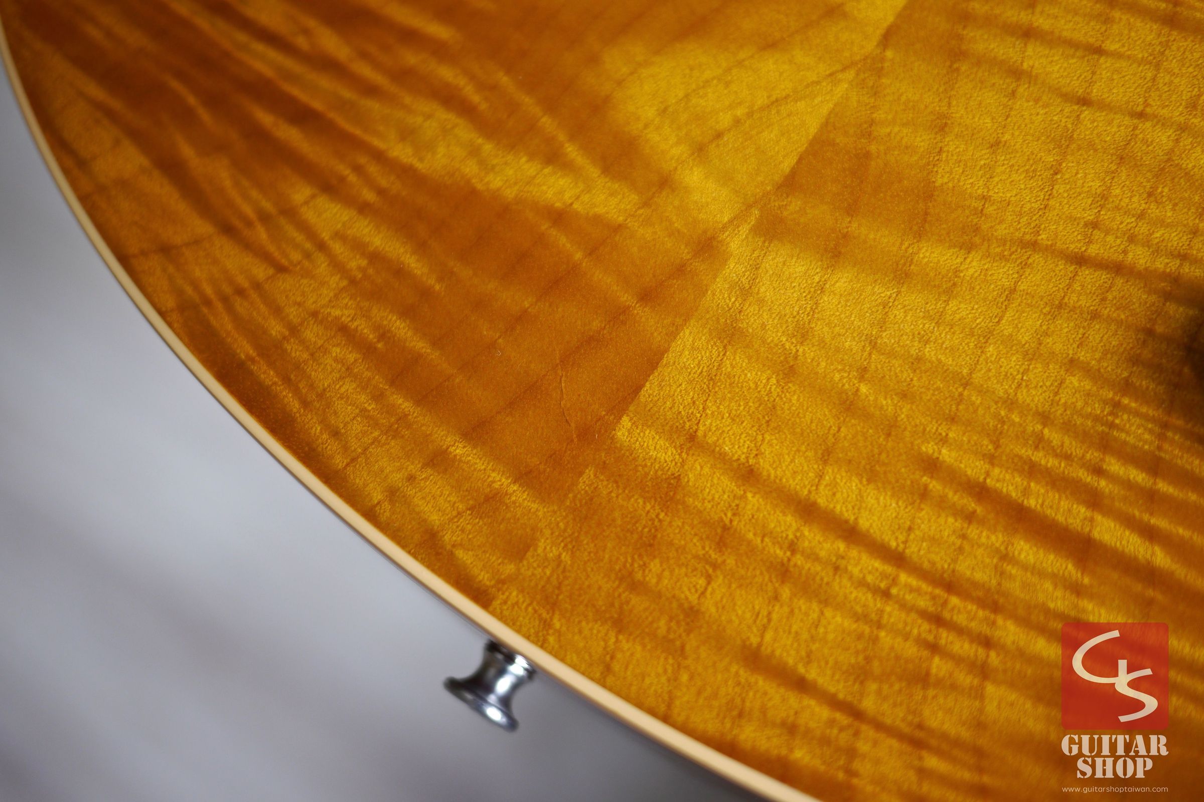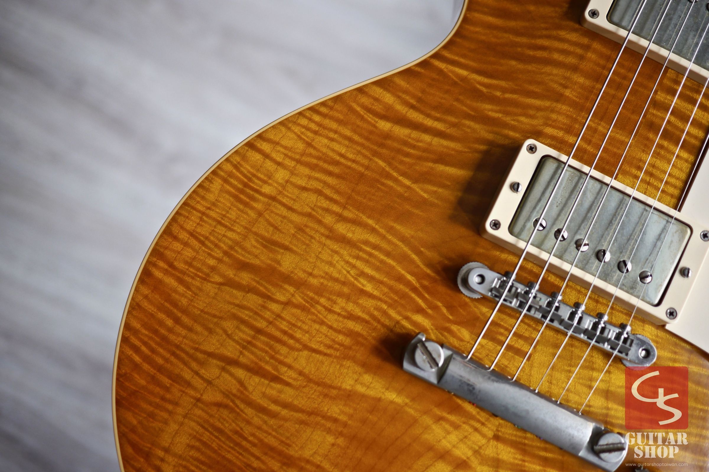 2011年製VOS版,復古的Lemon Burst加上狂野的木紋,這類的紋路在R9上並不多見,整體相當自然。桃花心木琴身、玫瑰木指版,琴頸為'59 Neck Profile,握起來相當舒適,全琴無改,原廠配置一組原廠配置Gibson Burstbucker拾音器。整體九成五新,些許正常使用痕跡,狀況相當不錯。