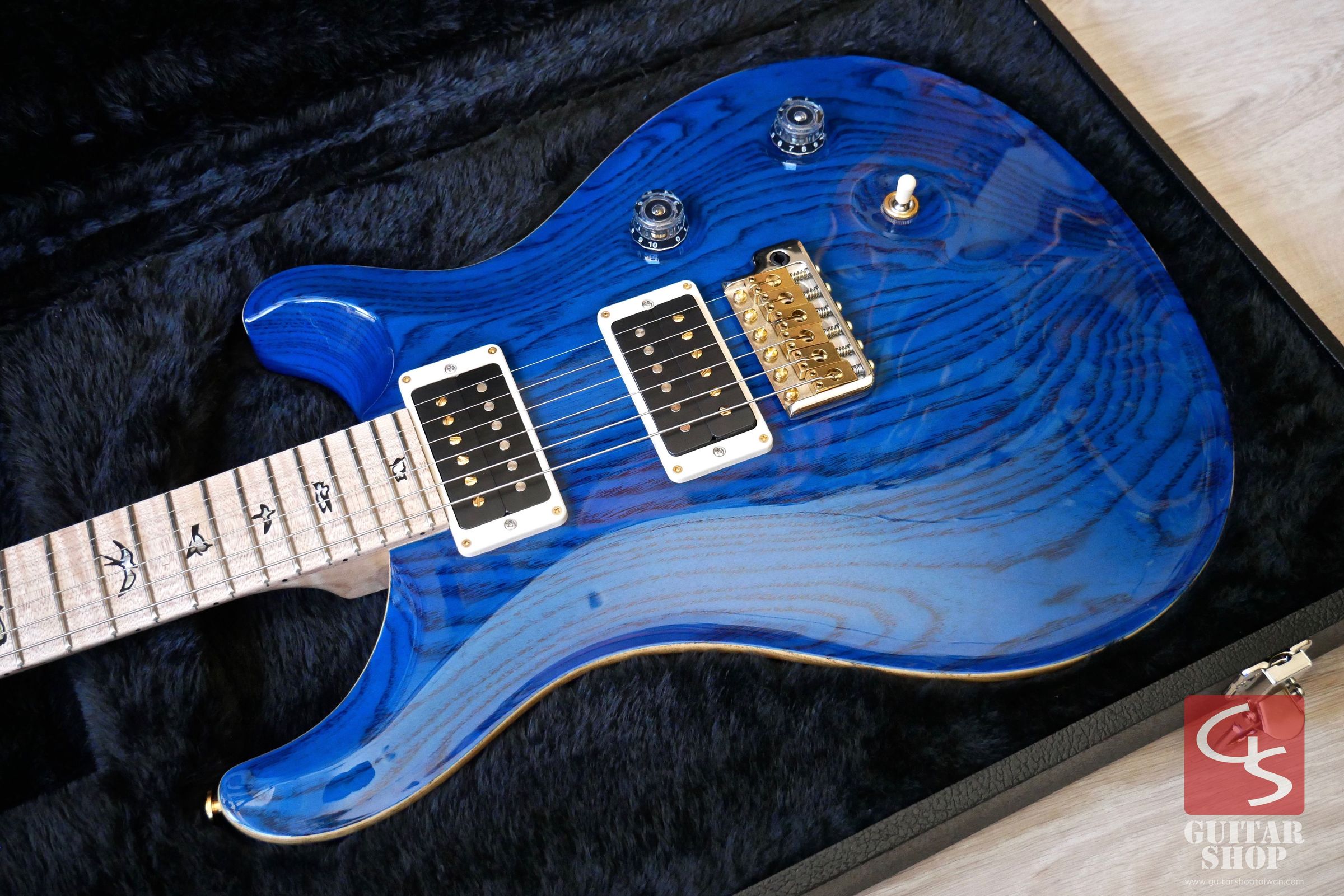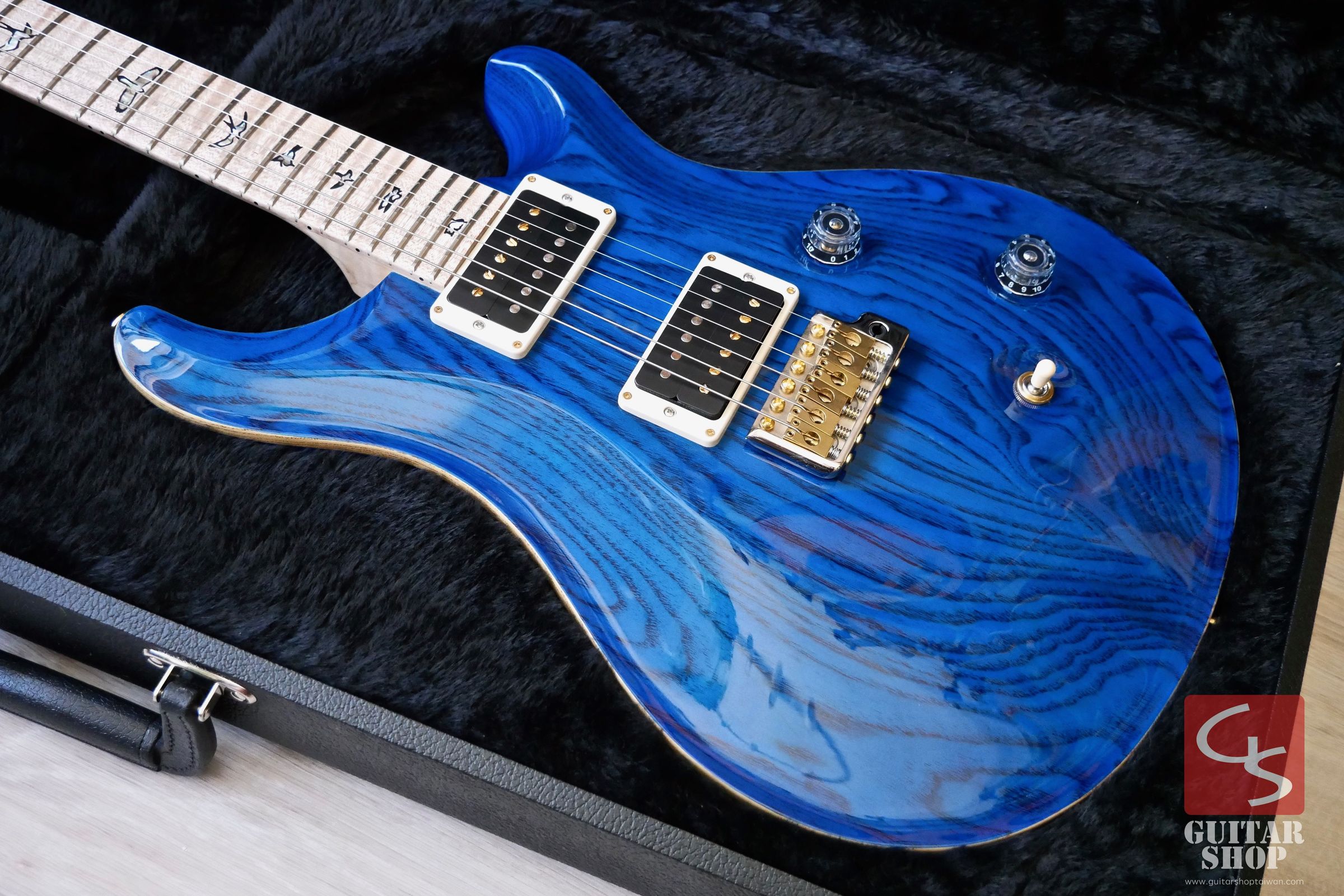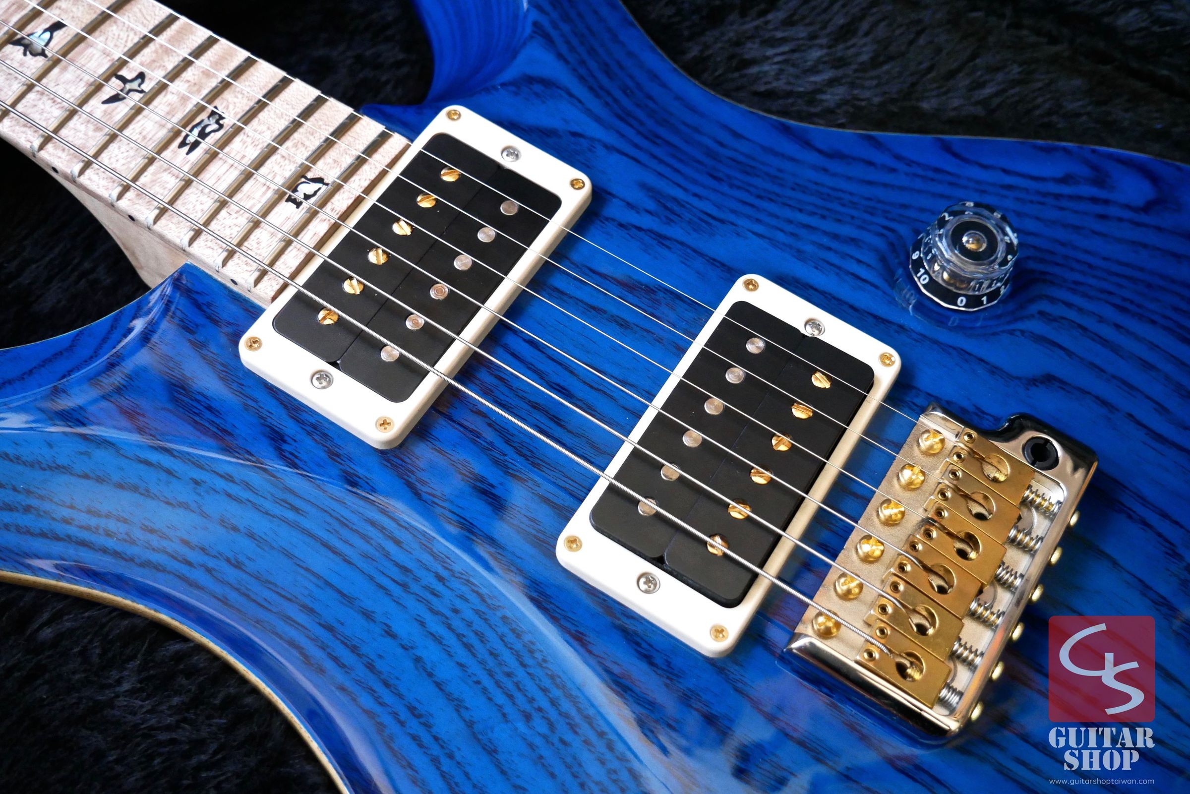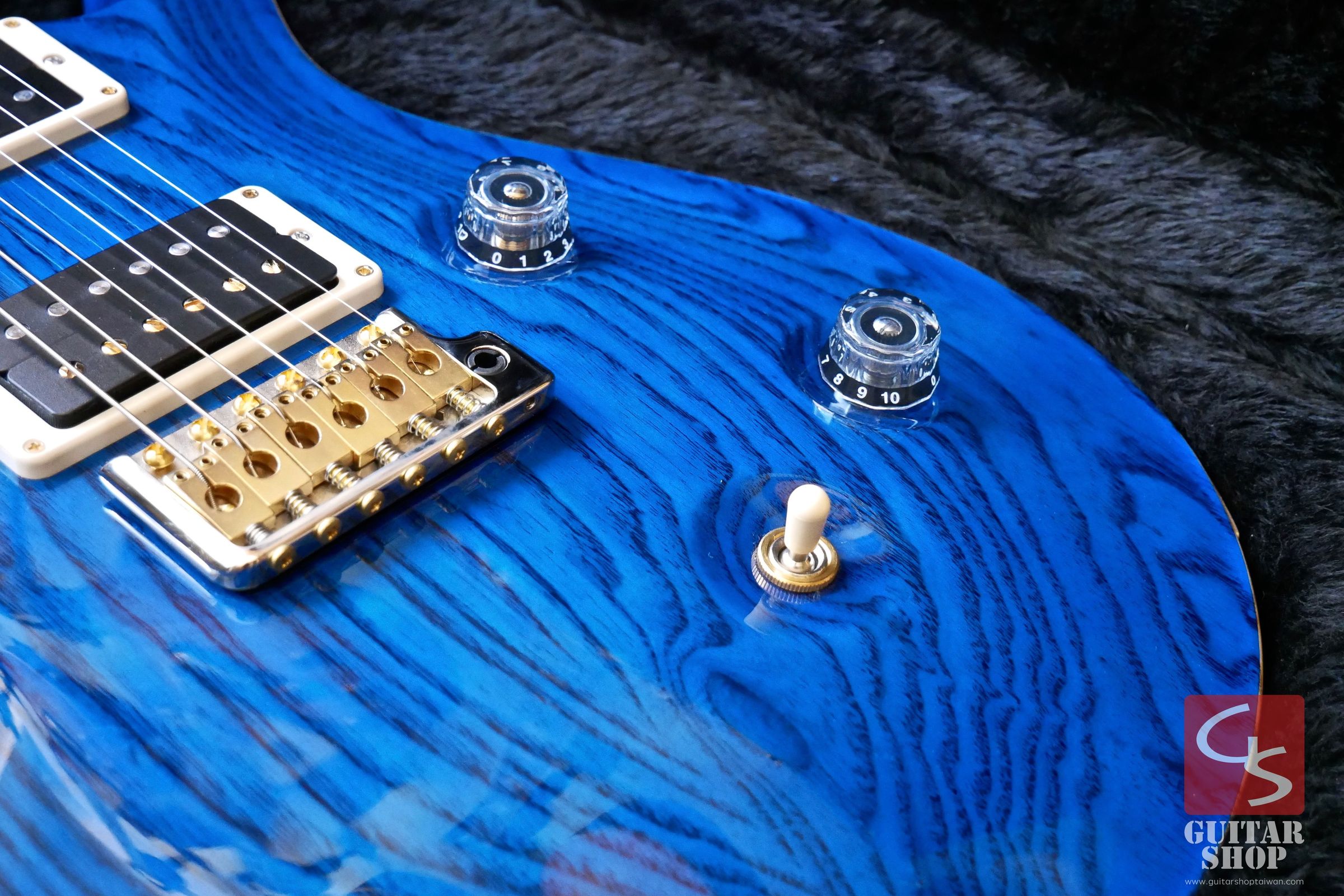 2016年製全新品,日本Ikebe限定Swamp Ash版,這是極少量的限定版,琴身搭配一般市面上Custom沒有的Ash Body,Aquamarine舒服的藍色配上流動感的木紋劃過琴身,琴頸則是整根虎紋的Figured Maple,非常漂亮。PRS的音色是出了名的細膩,Custom系列一直以來是PRS最為經典、評價也相當高的型號。原廠配置PRS 85/15拾音器,這是一款PRS於2009年推出的雙線圈拾音器,共五段音色,音色顆粒感強烈,清晰度提升,從清甜顆粒感十足的單線圈音色到出力突出的雙線圈破音都能勝任。Swamp Ash琴身提供了非常明亮且有張力的音色,中高頻顆粒清晰。琴頸規格為Pattern Thin,手感相當好,琴身與琴頸為桃花心木配上玫瑰木指板。